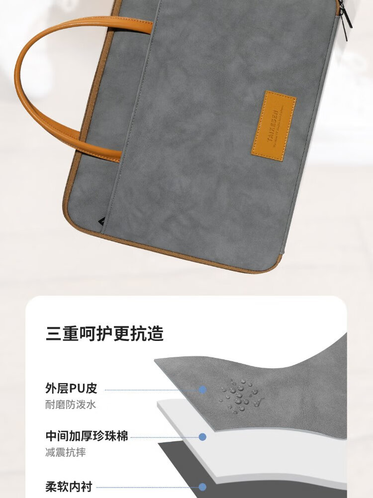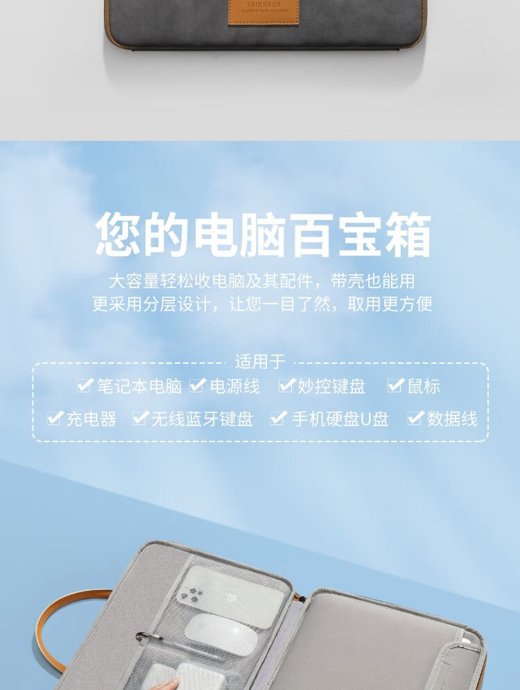 泰克森笔记本手提包适用华为14英寸苹果macbook联想电脑保护套女高颜值