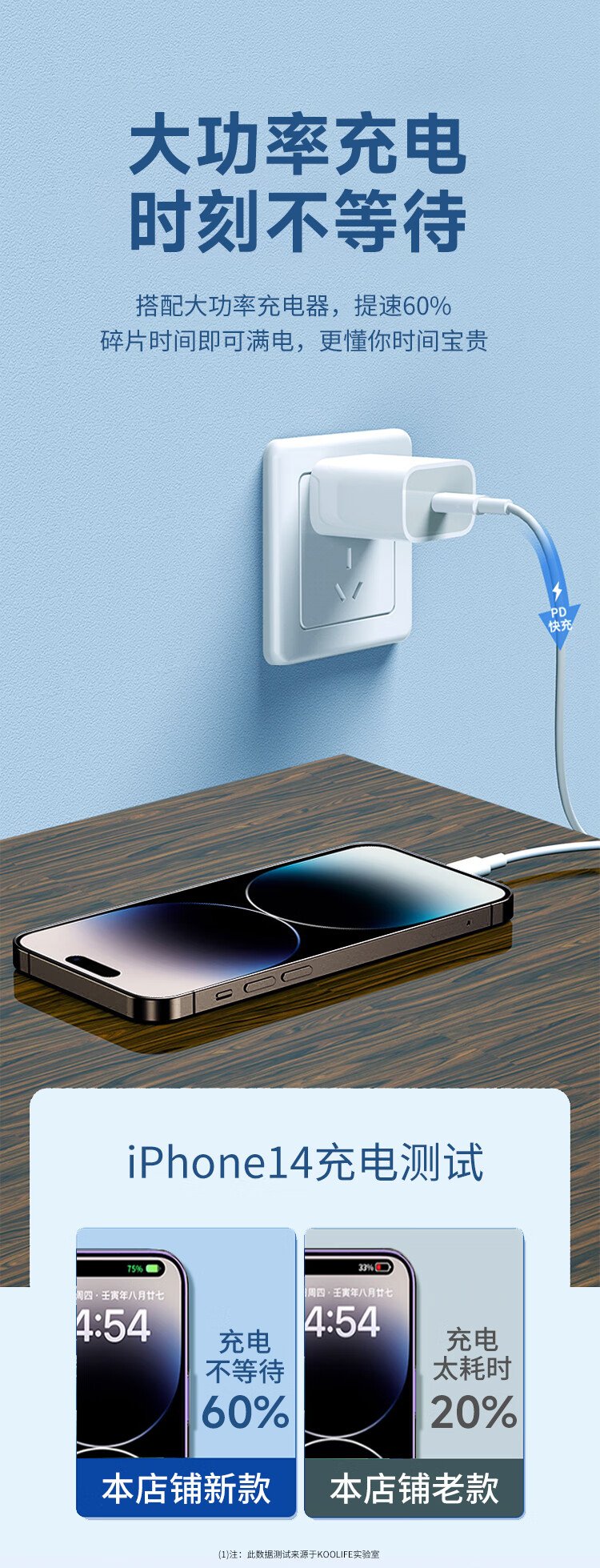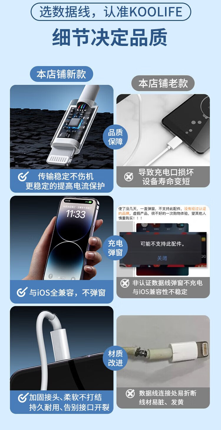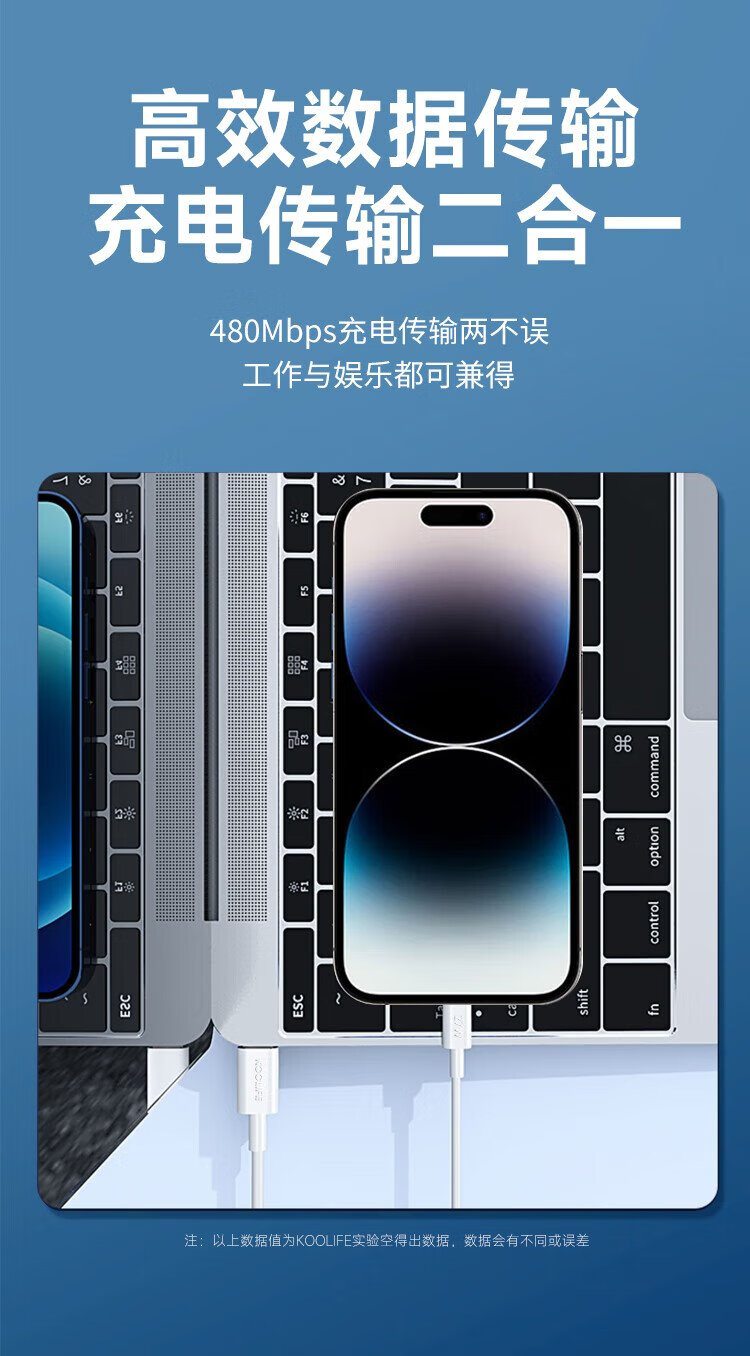 KOOLIFE is suitable for Apple data cable fast charging cable PD27W/20W mobile phone charging cable 2 meters long type-c to lightning universal iPhone14ProMax/13/12/xs