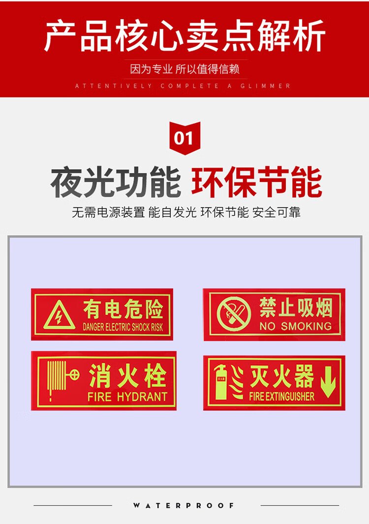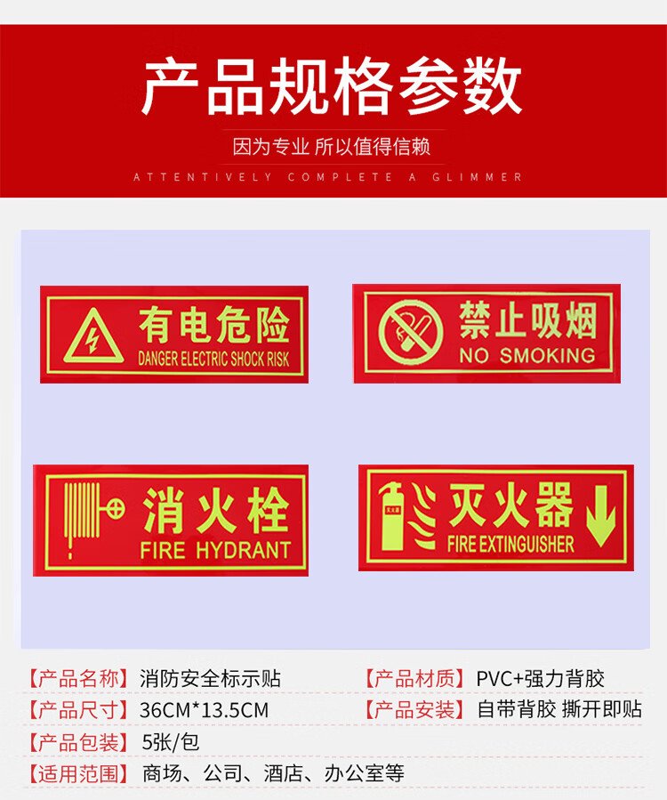 Yiju Changning luminous fire extinguisher safety sign warning sign PVC thickened foam glue 5-piece set (36*14cm)