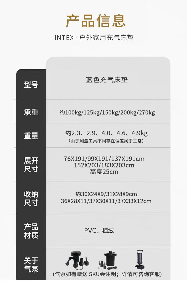 INTEX inflatable mattress home lunch break air mattress sheet single companion folding inflatable bed outdoor moisture-proof mattress new 64756