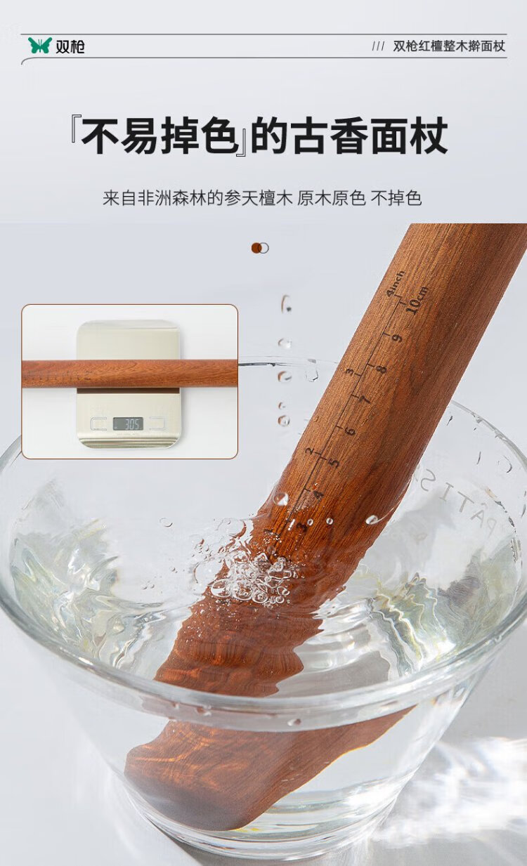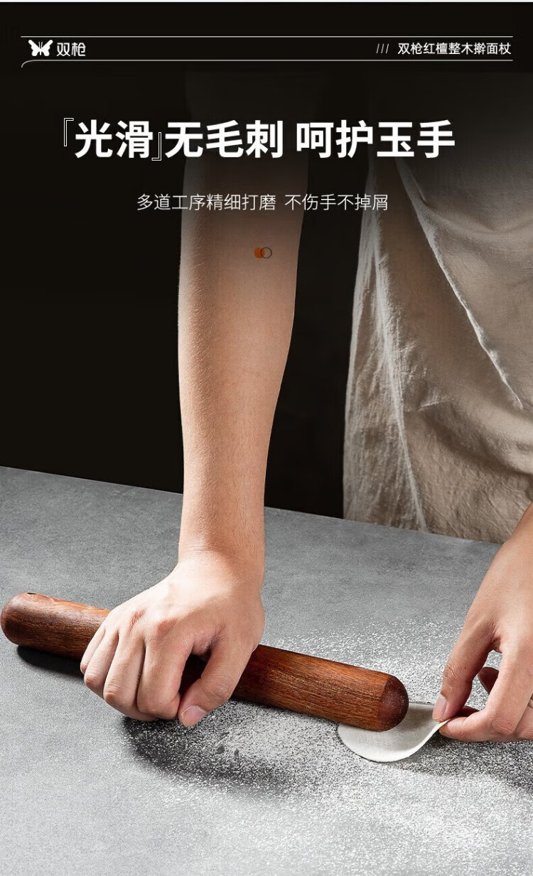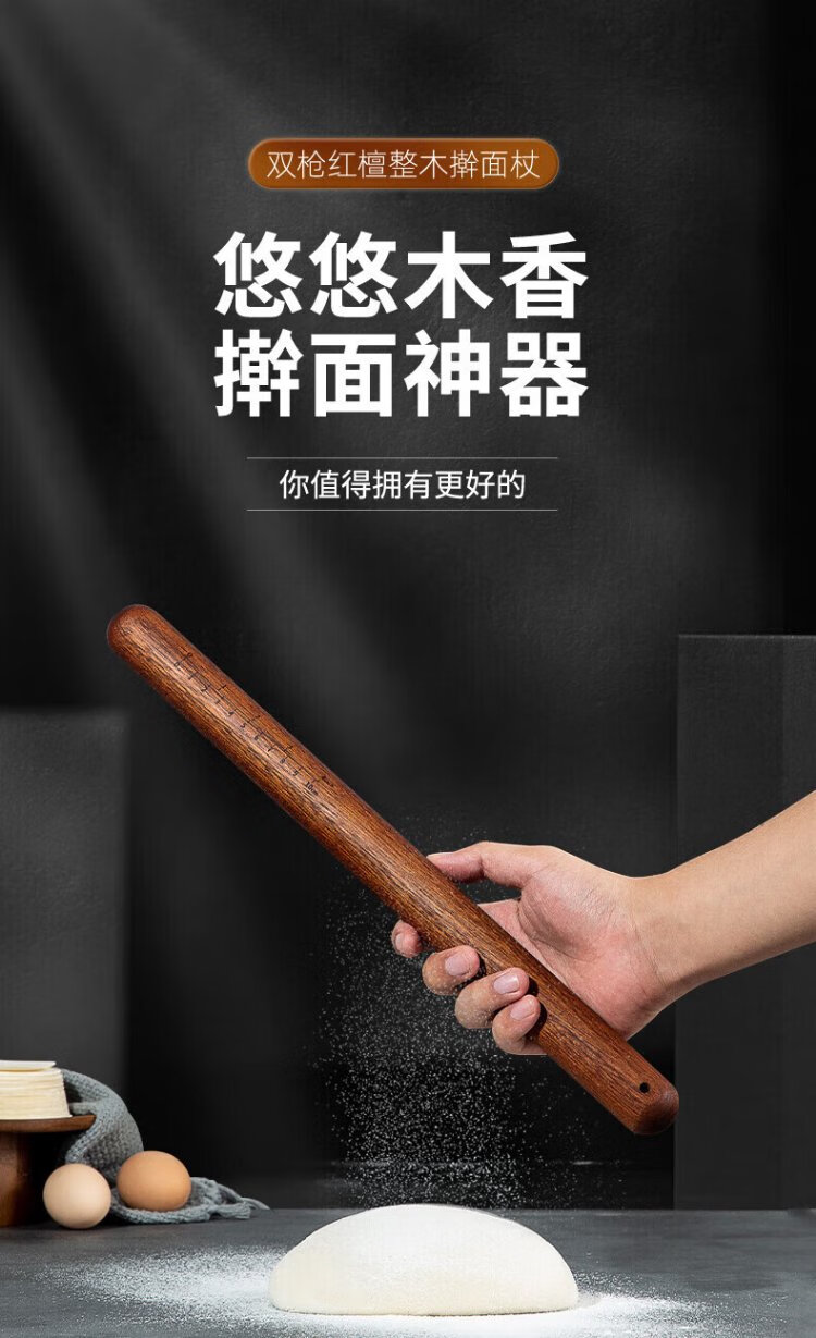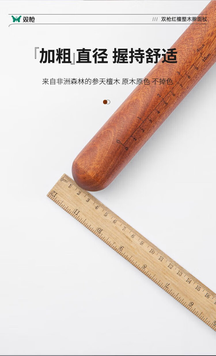 Suncha red sandalwood rolling pin household solid wood face stick rolling pin dumpling skin artifact (L60* 3.6cm)
