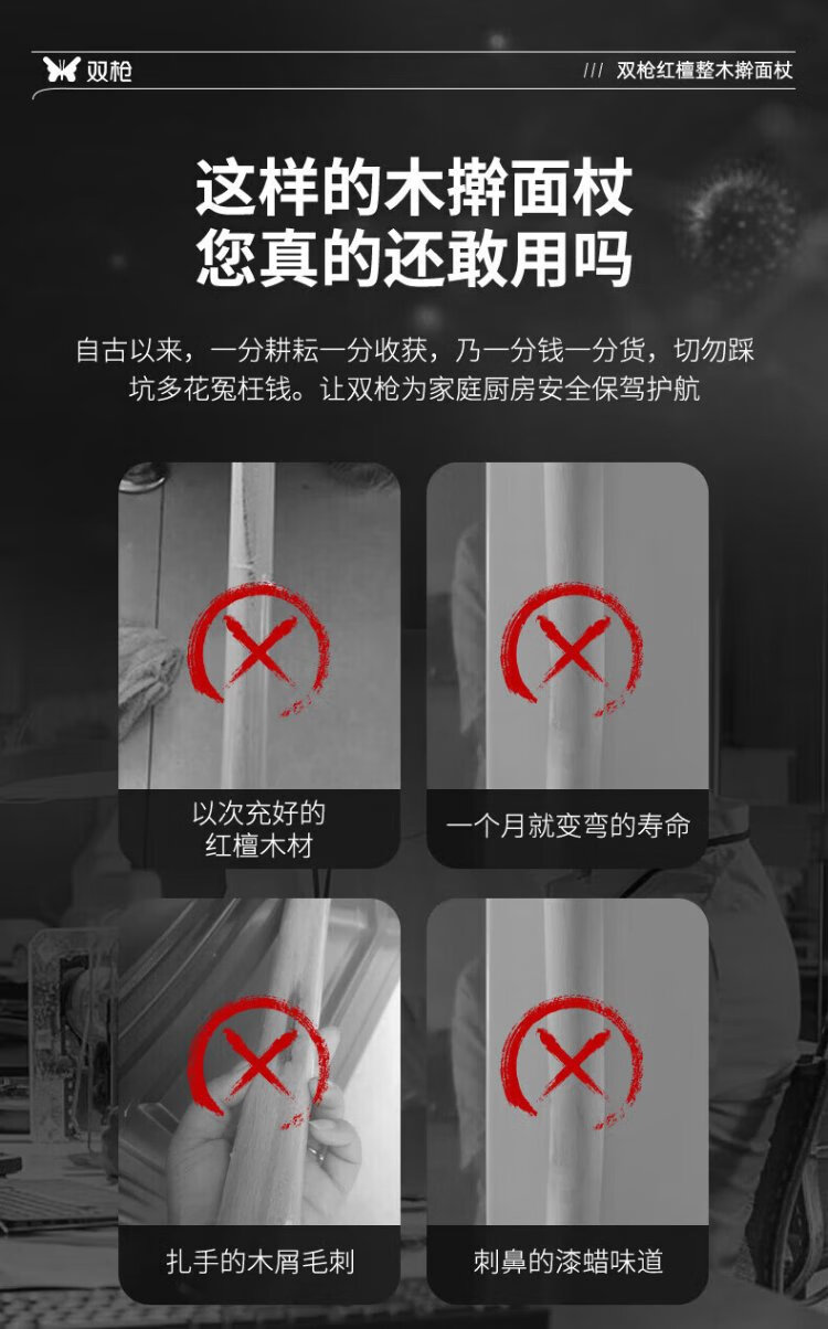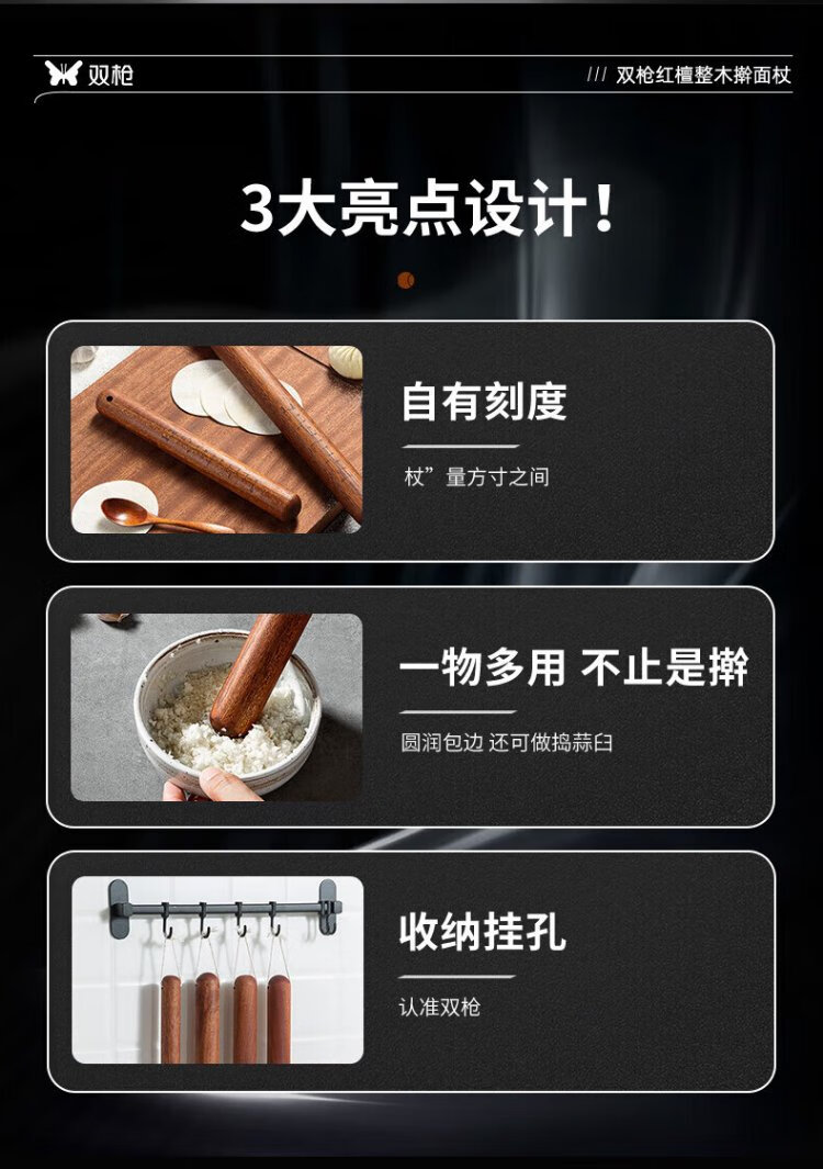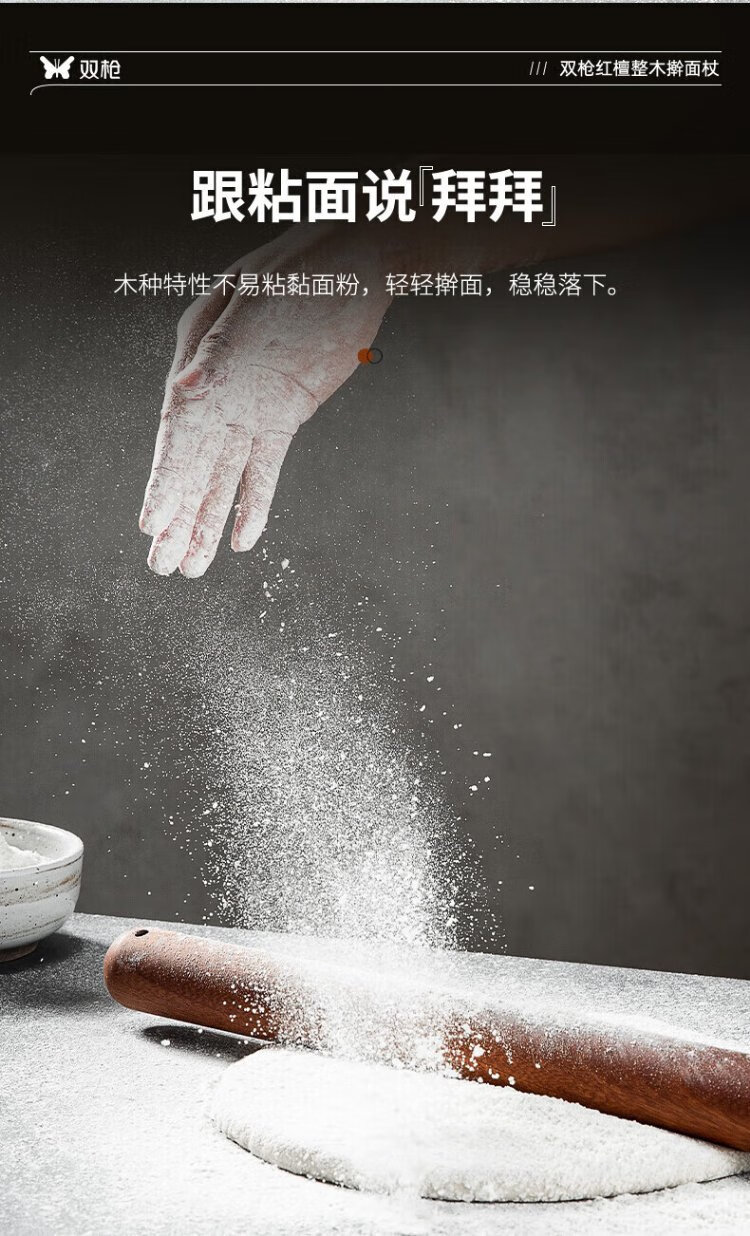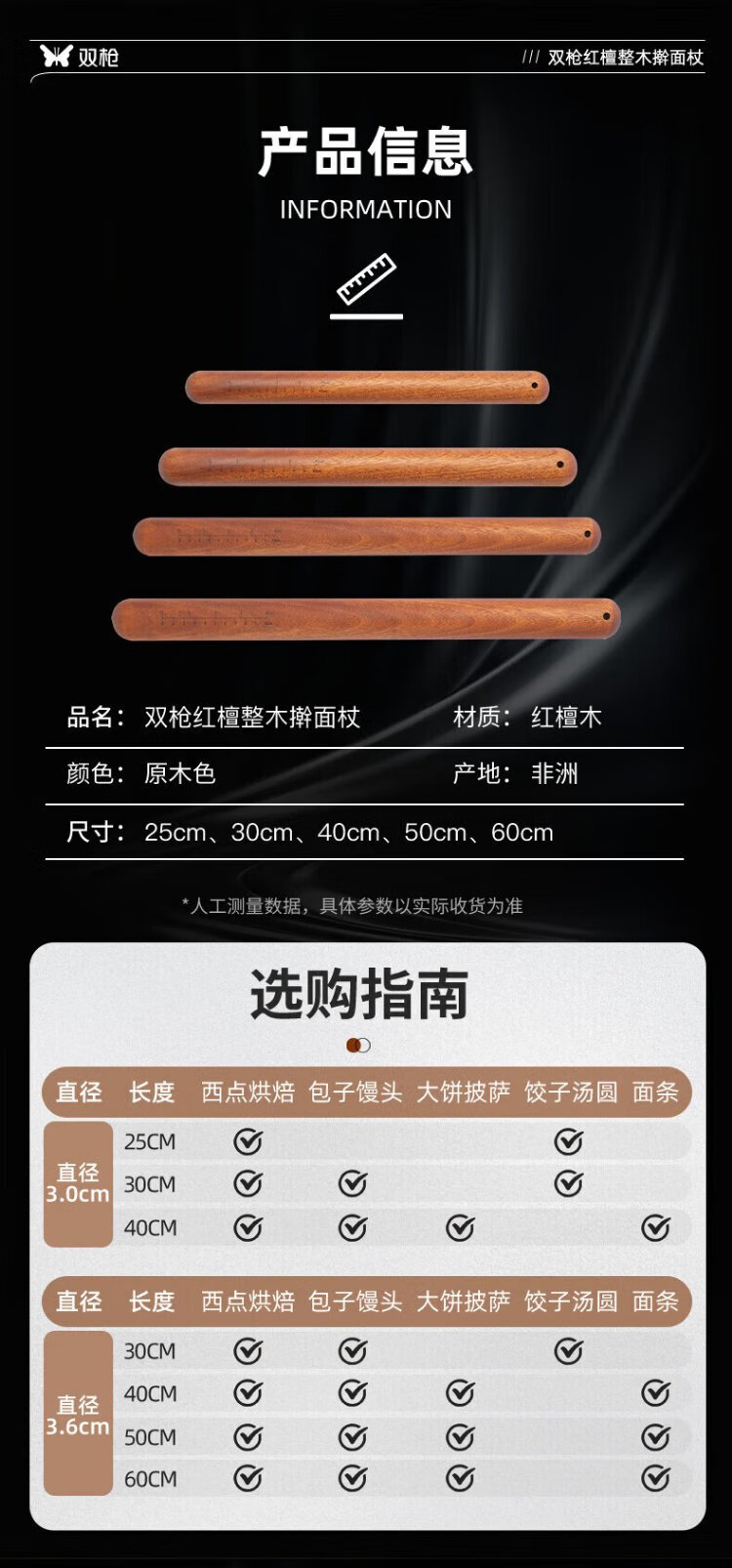Suncha red sandalwood rolling pin household solid wood face stick rolling pin dumpling skin artifact (L60* 3.6cm)