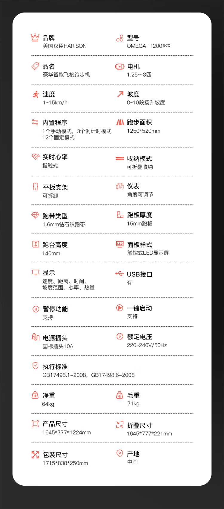 HARISON Hanchen treadmill home folding smart walking machine fitness equipment OMEGA HR-T200Seco