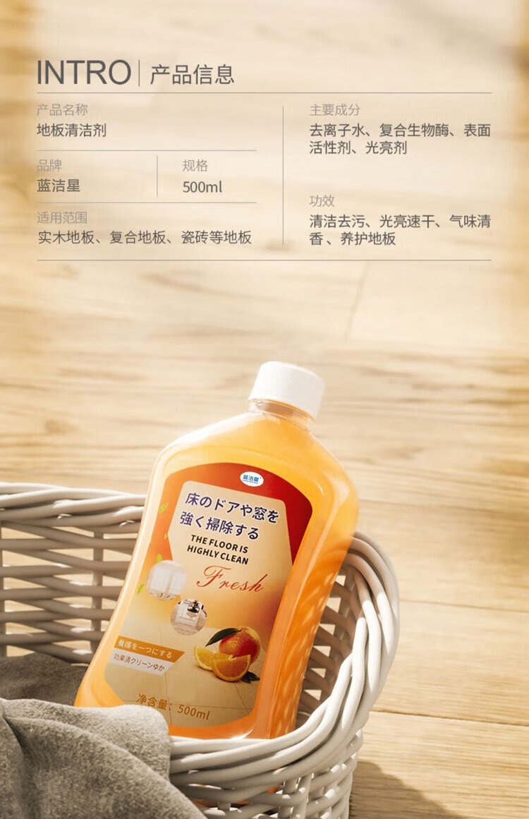 LANJIEXING mopping floor cleaner tile and wood floor cleaning liquid 500ml decontamination quick-drying no-wash cleaning agent sterilizes 99.9%