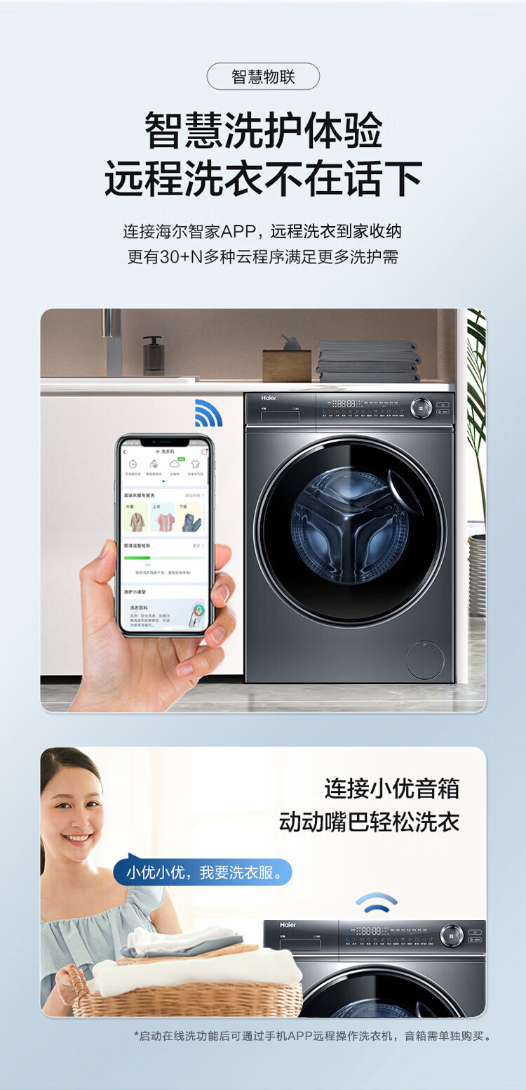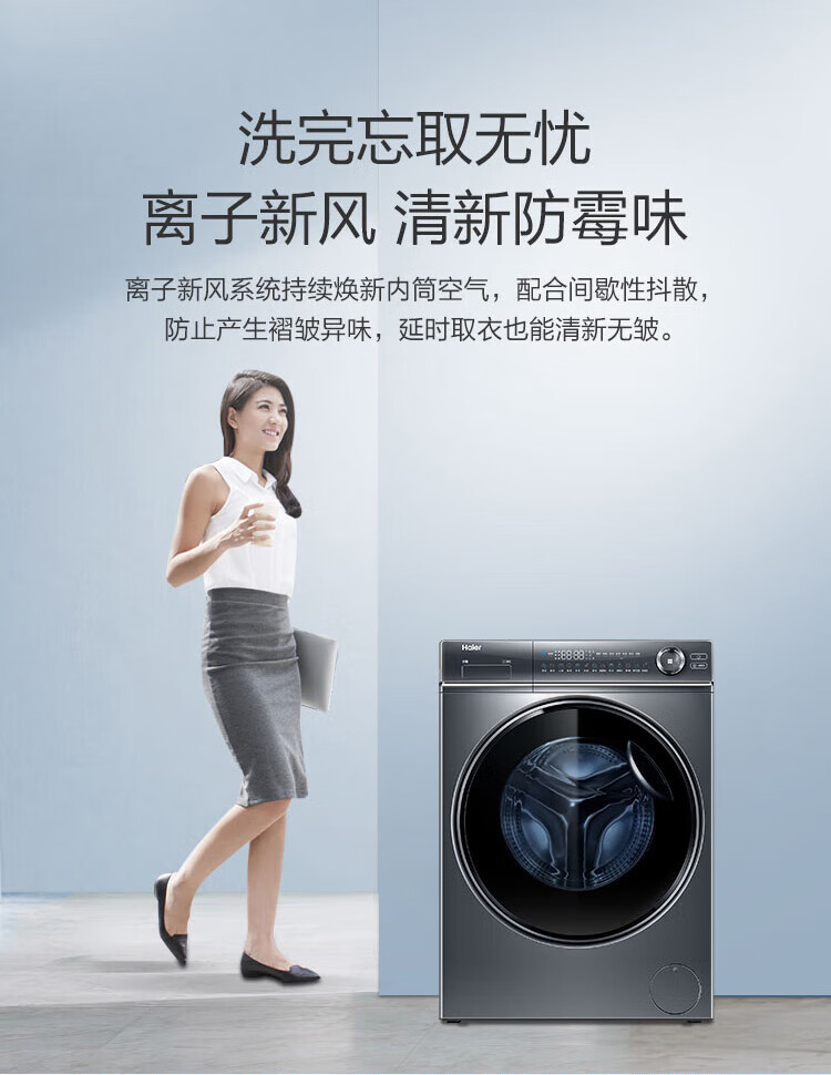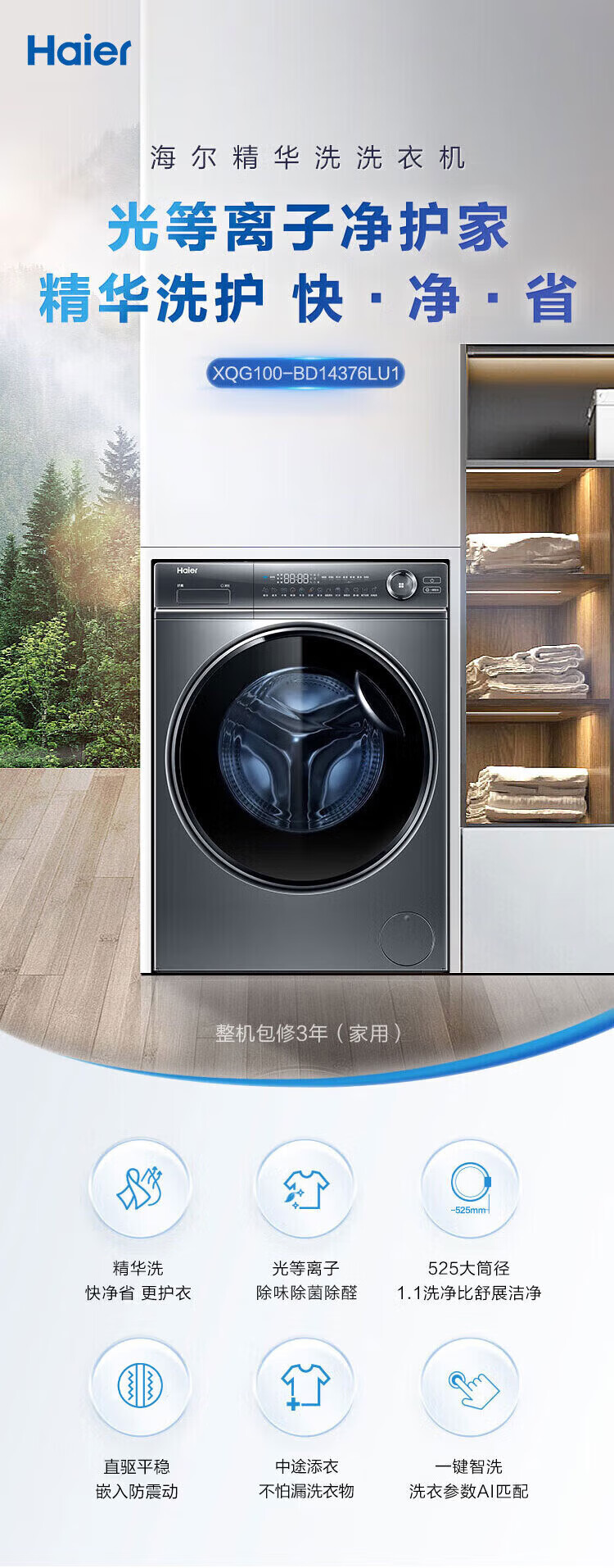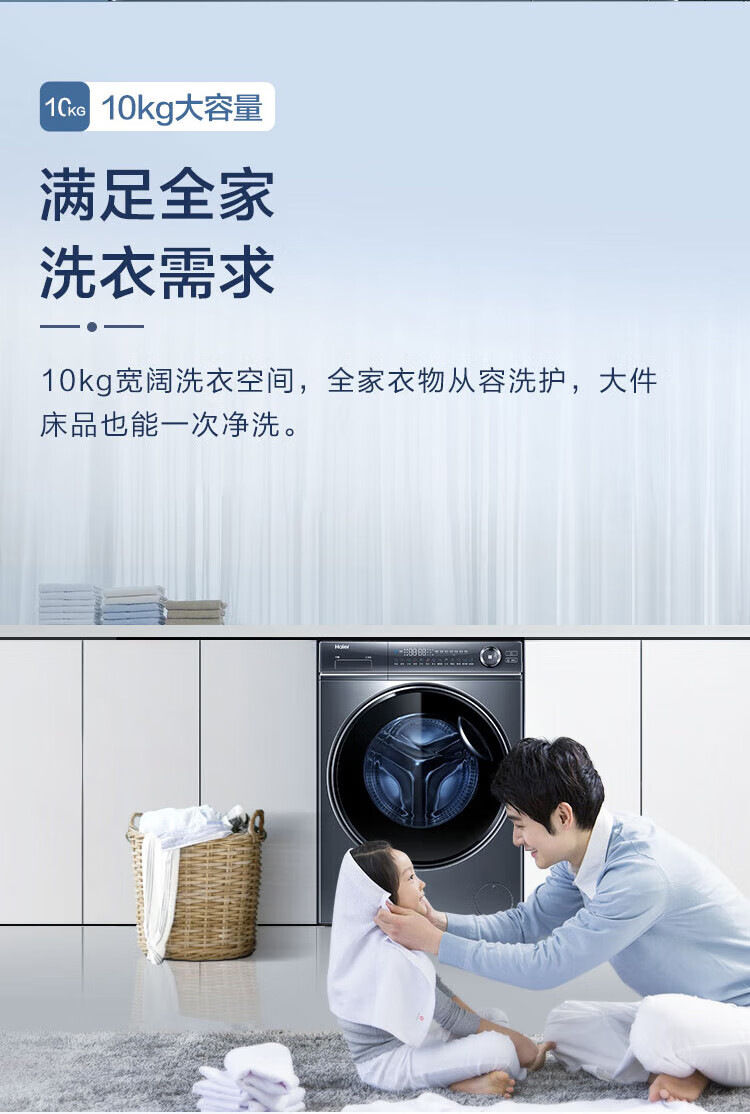Haier Yunxi 376 drum washing machine fully automatic state subsidy 10kg large capacity household direct drive frequency conversion ultra-thin OCC XQG100-BD14376LU1