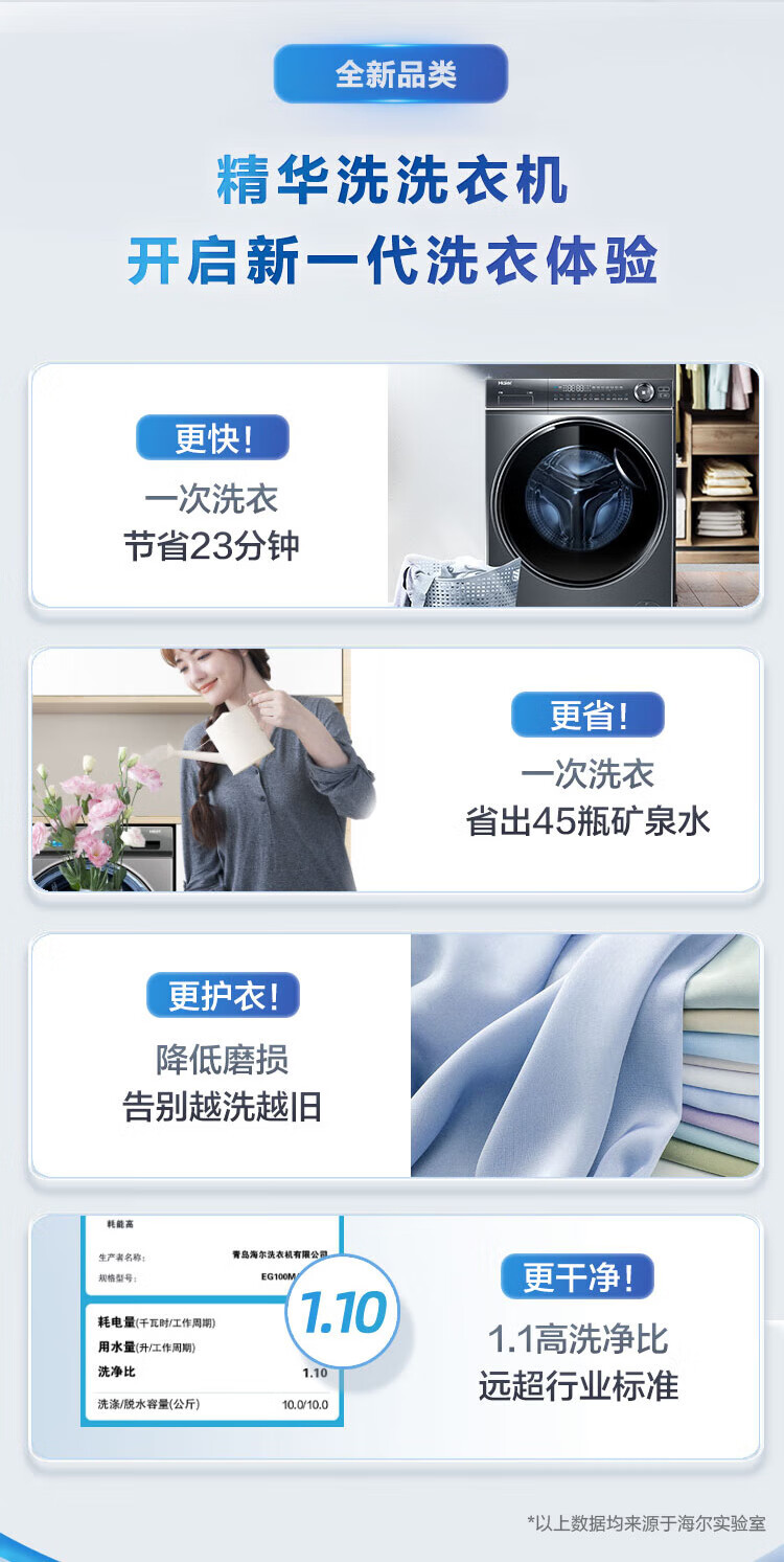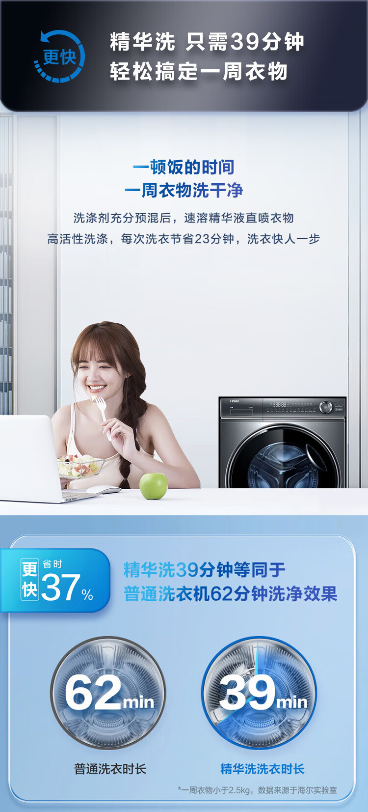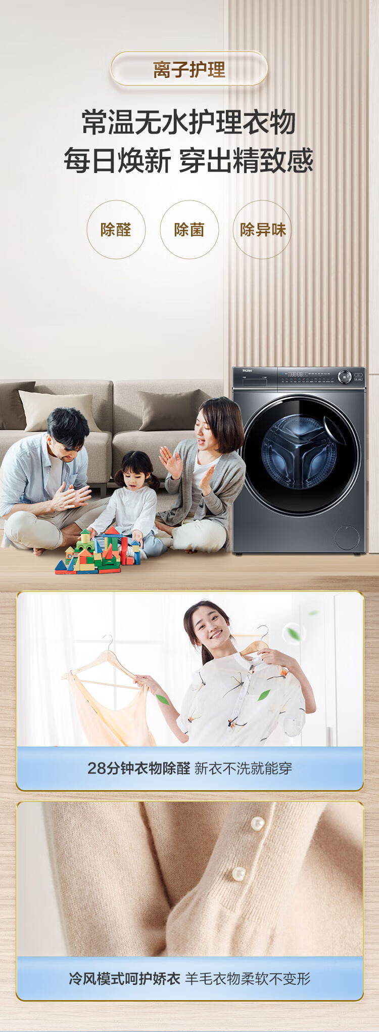 Haier Yunxi 376 drum washing machine fully automatic state subsidy 10kg large capacity household direct drive frequency conversion ultra-thin OCC XQG100-BD14376LU1