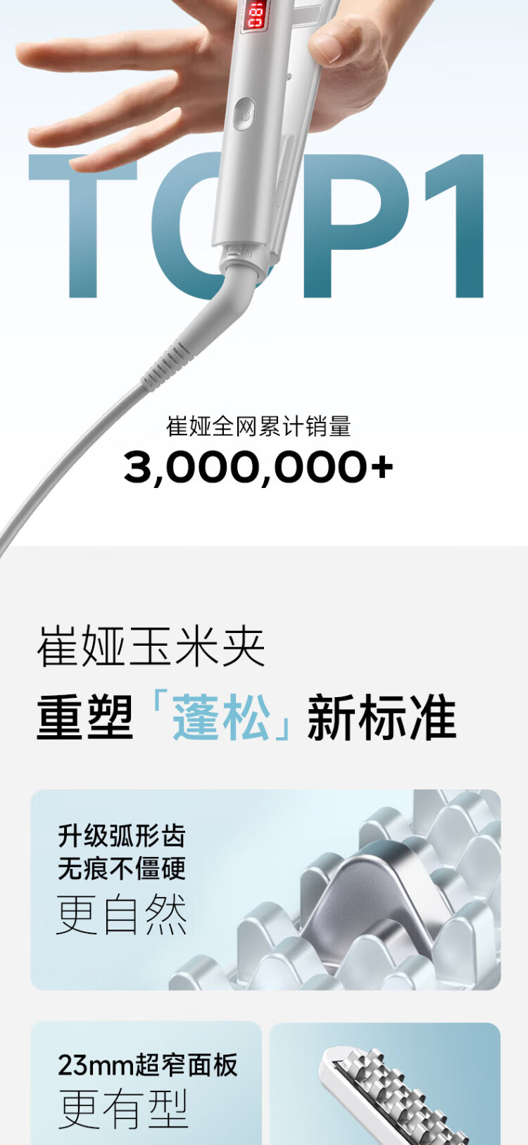 Treya corn clip fluffy splint, high cranial corn silk clip, infrared negative ion perm stick, hair root fluffy artifact girl T22 white birthday gift