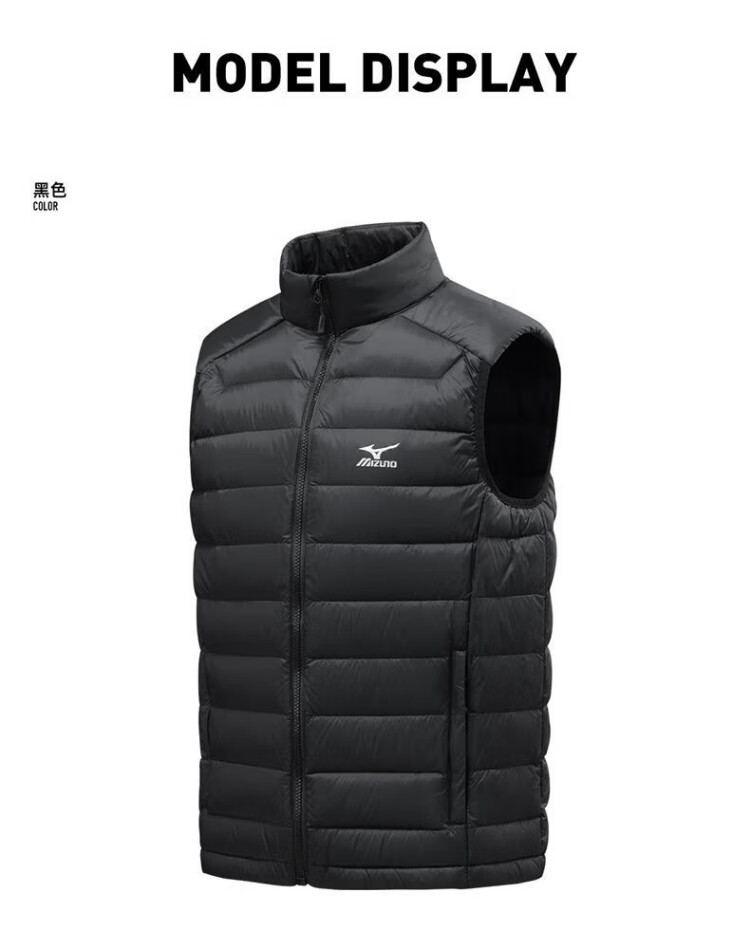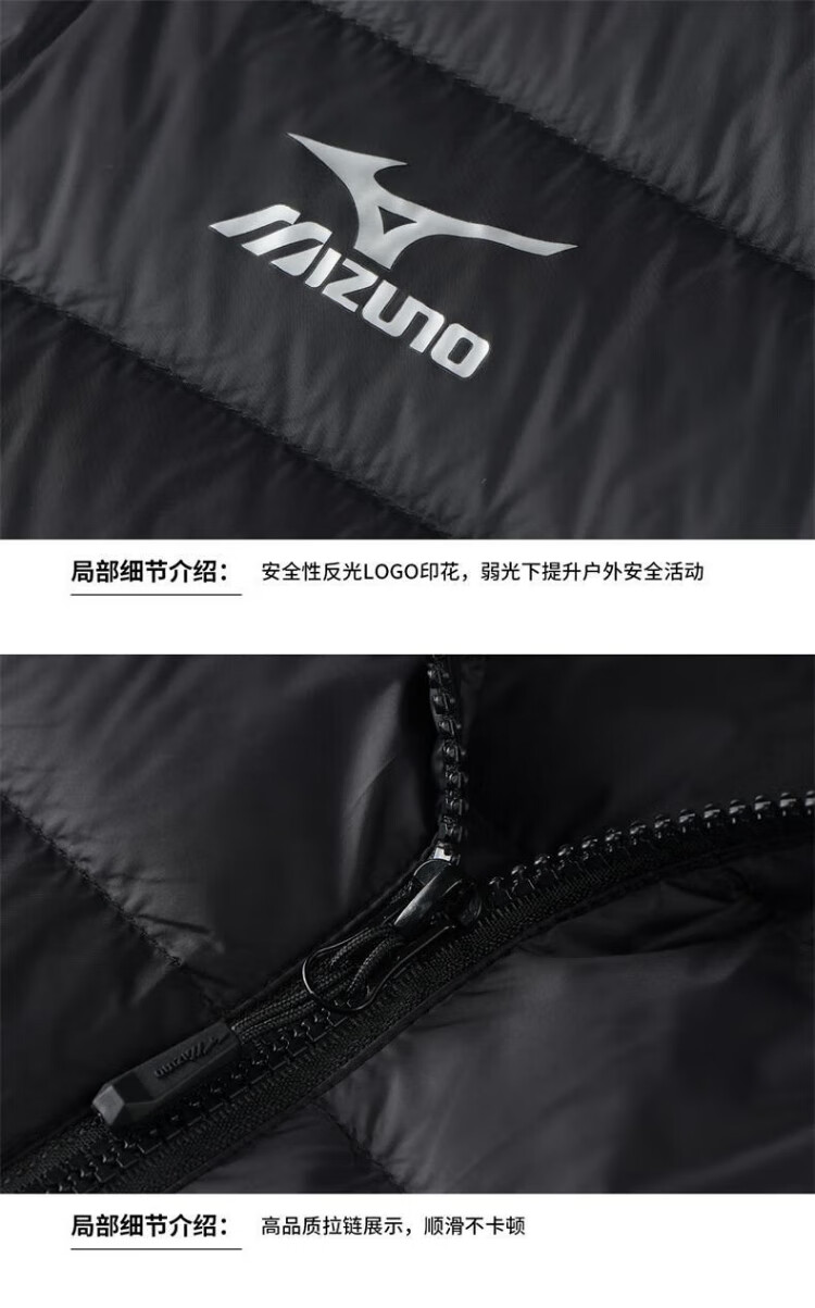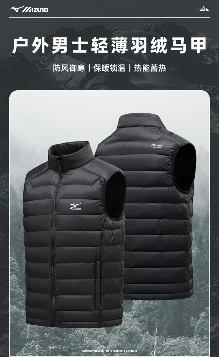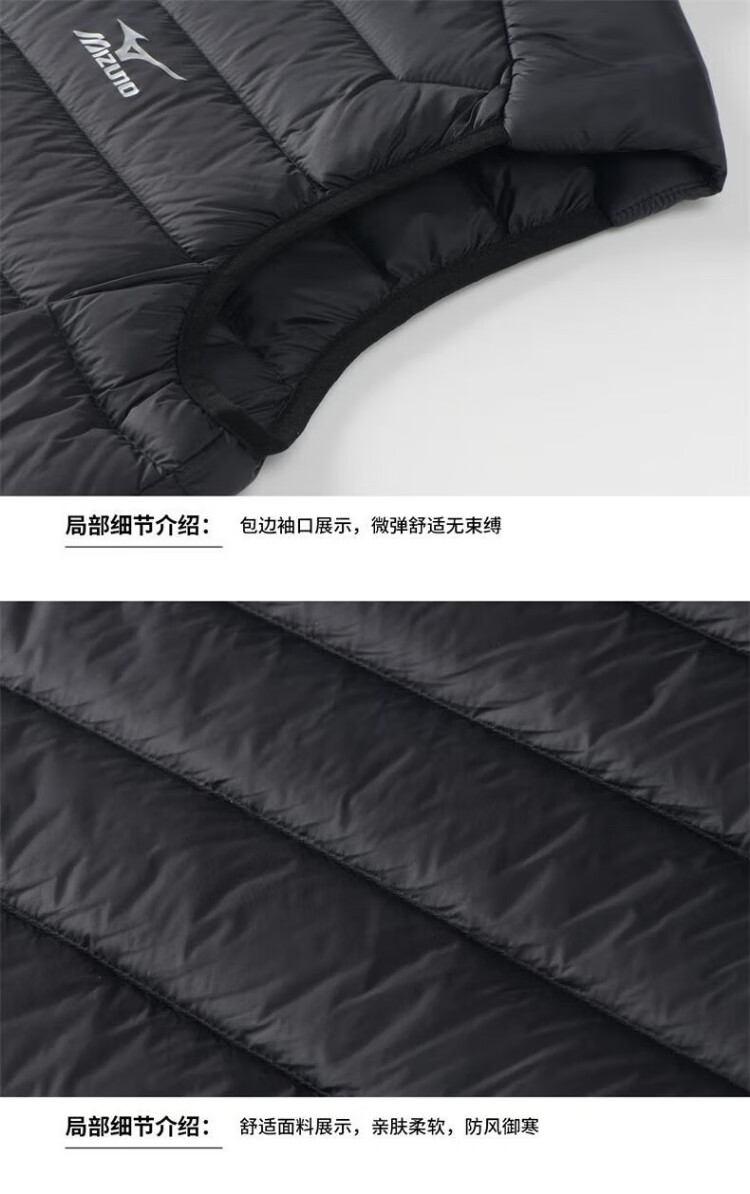 Mizuno (MIZUNO) outdoor lightweight down vest men's short autumn and winter inner and outer vest stand collar vest black 2XL