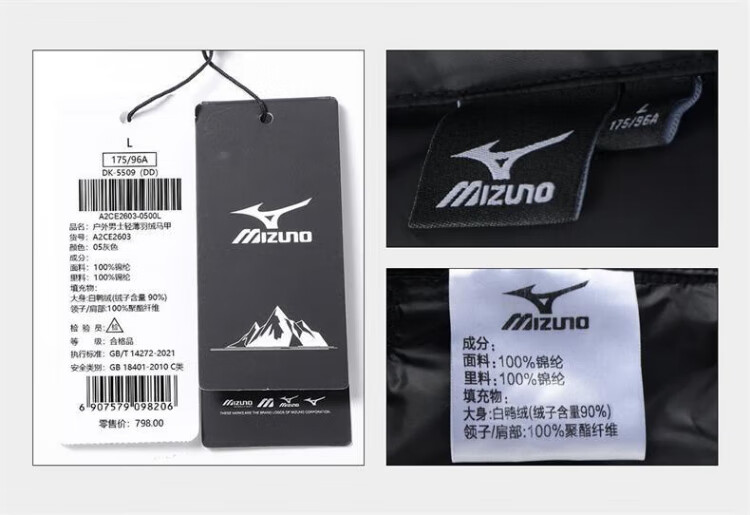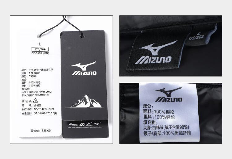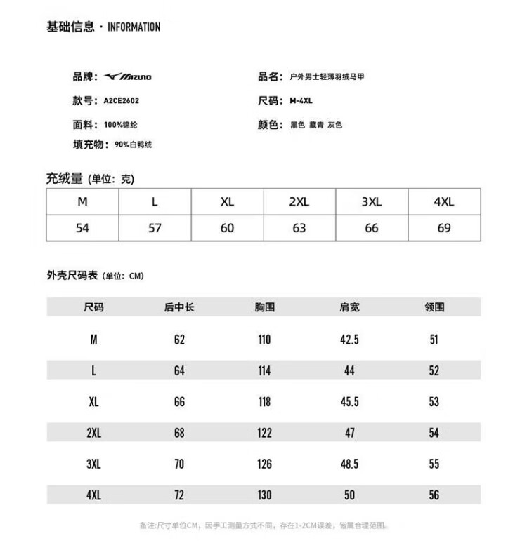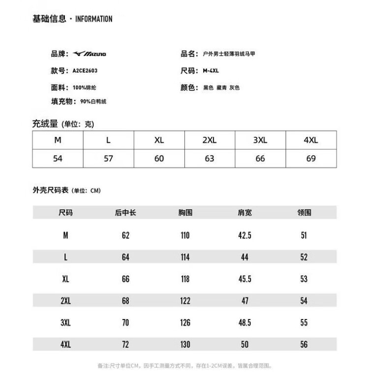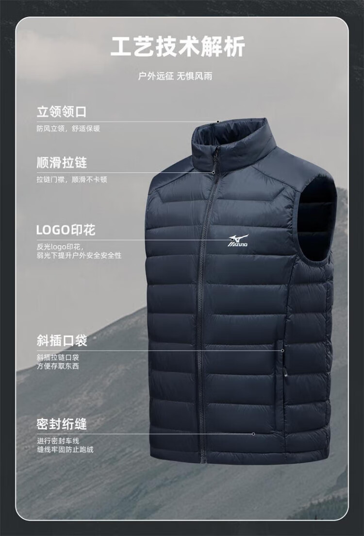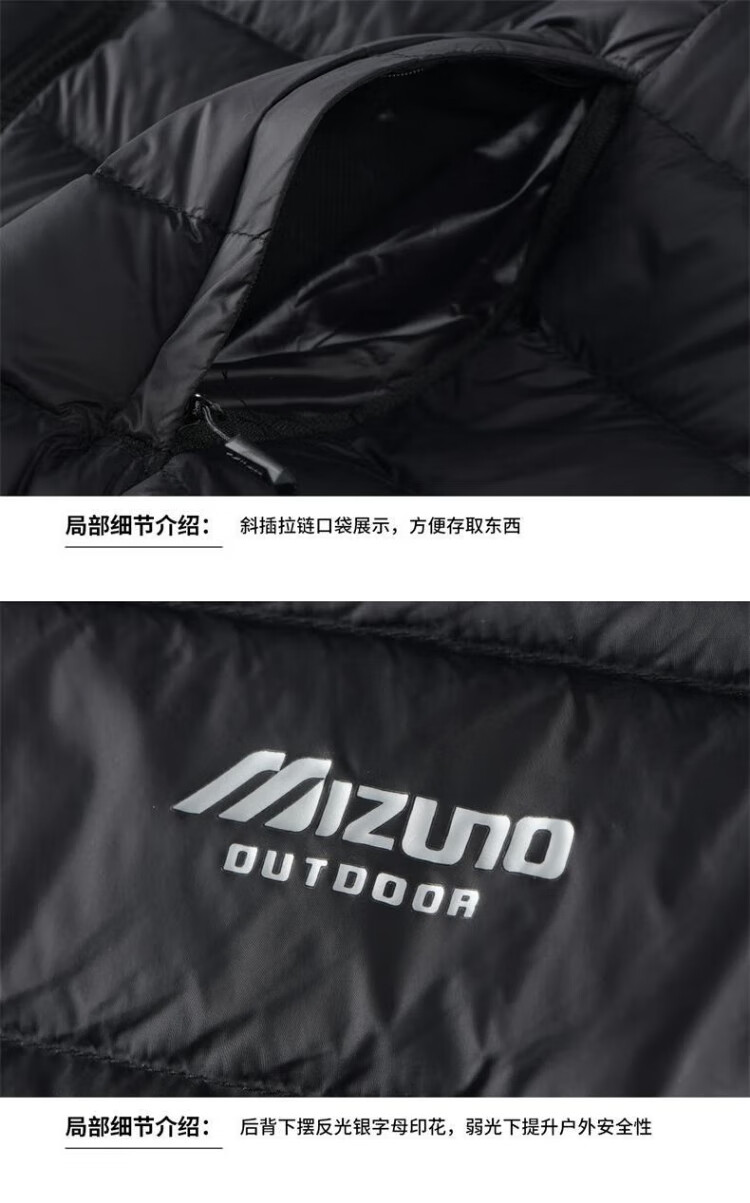 Mizuno (MIZUNO) outdoor lightweight down vest men's short autumn and winter inner and outer vest stand collar vest black 2XL