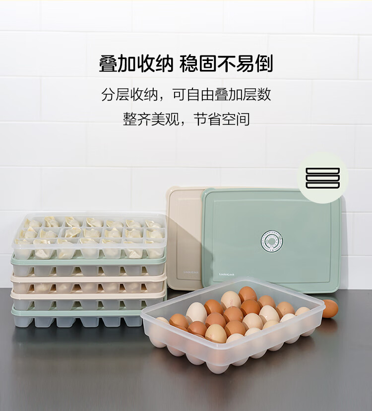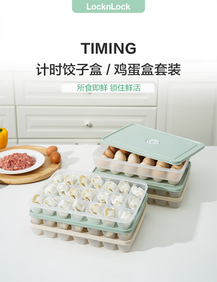 LOCK & LOCK timing dumpling box 21 compartments * 2 + egg box 24 compartments * 1 plastic storage box set mint green