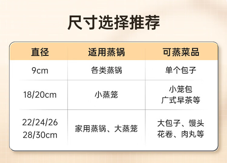 Cui Dahuang steamer paper bun pad paper steamed bun paper steamed bun paper disposable 110 pieces diameter 26cm