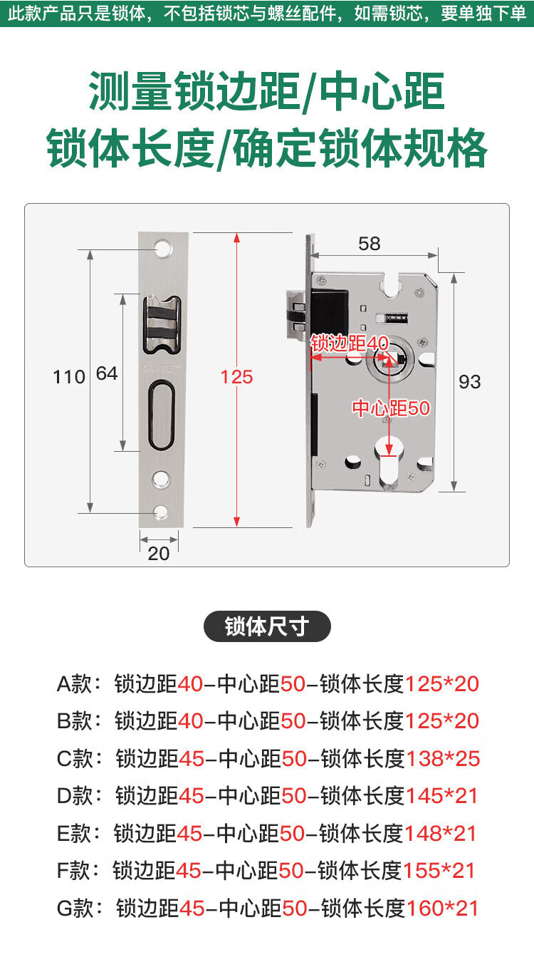 GUTE lock body indoor door home bedroom deadbolt door lock indoor lock body wooden door lock room door lock body accessories 125#