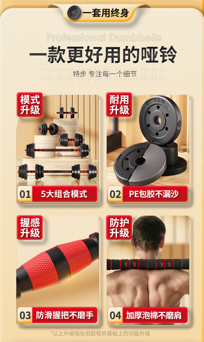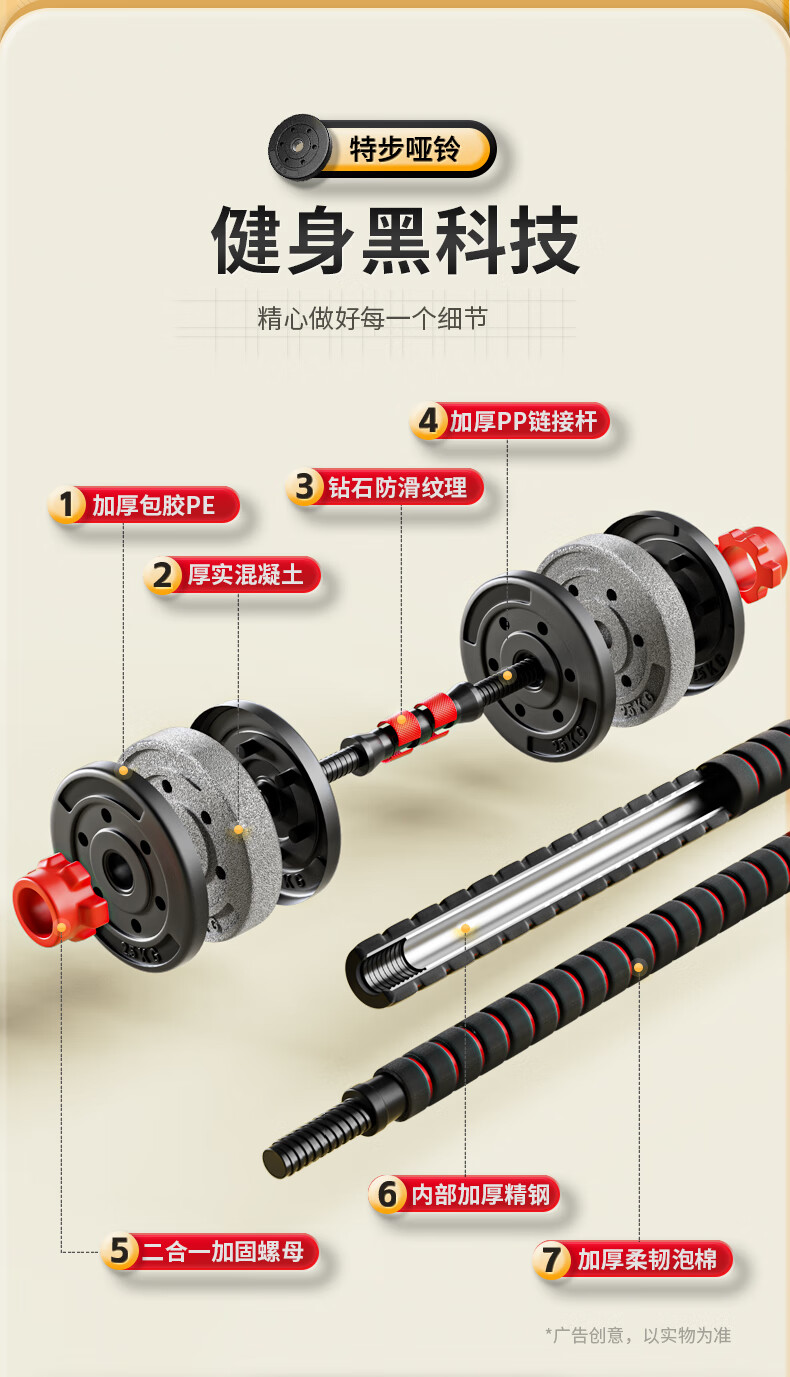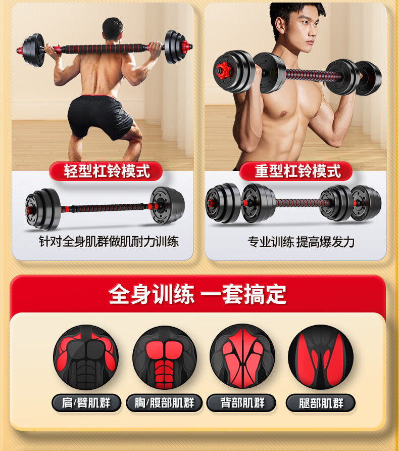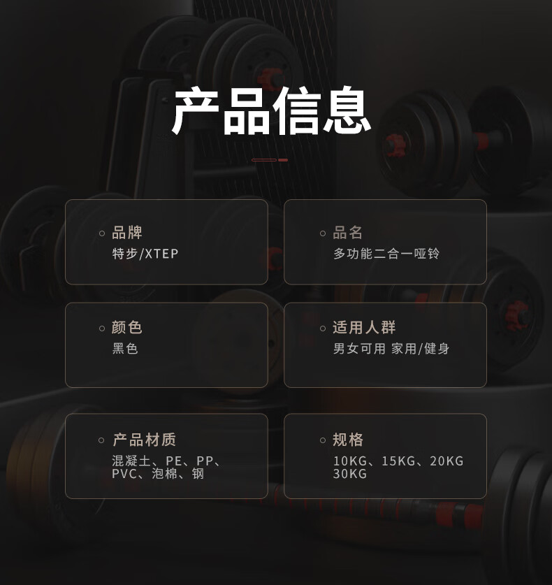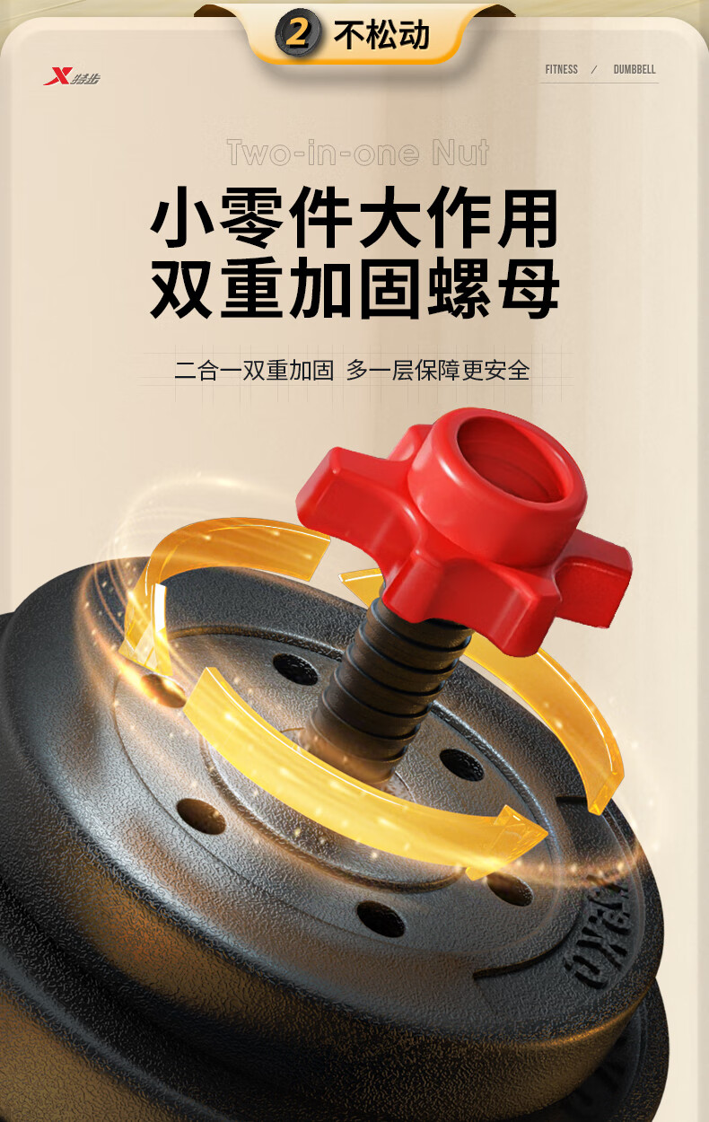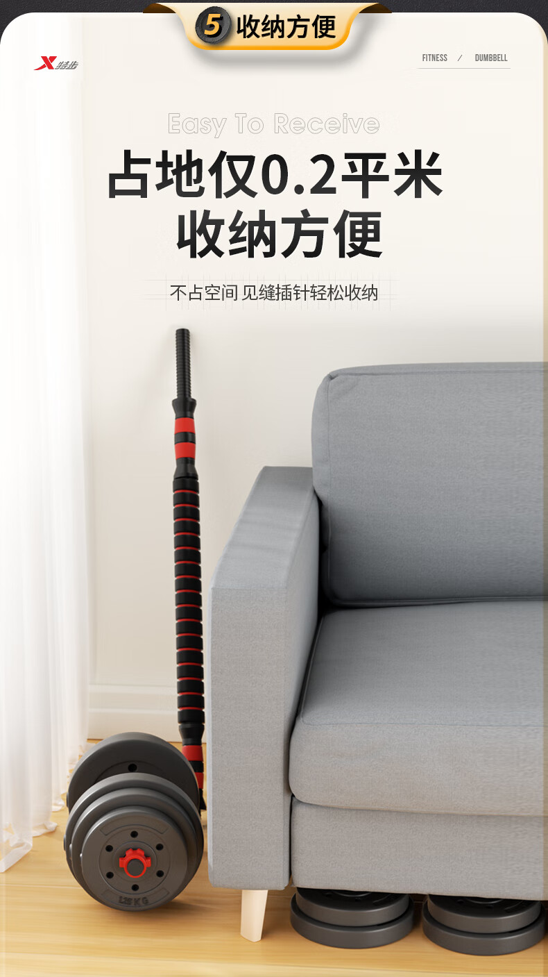 XTEP dumbbell men's and women's barbell fitness equipment combination adjustable and disassembly home weight training set Yaling 10KG*2