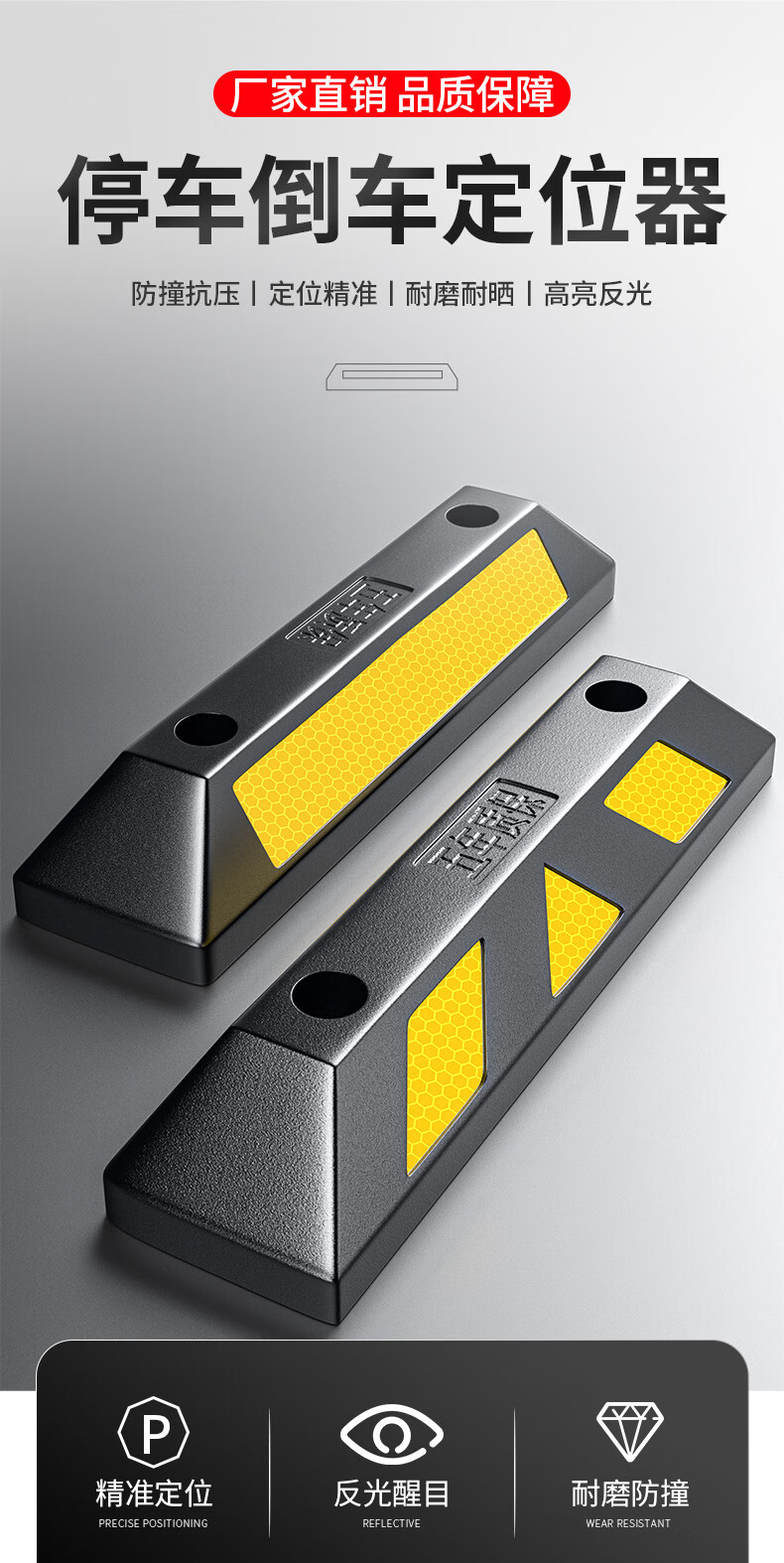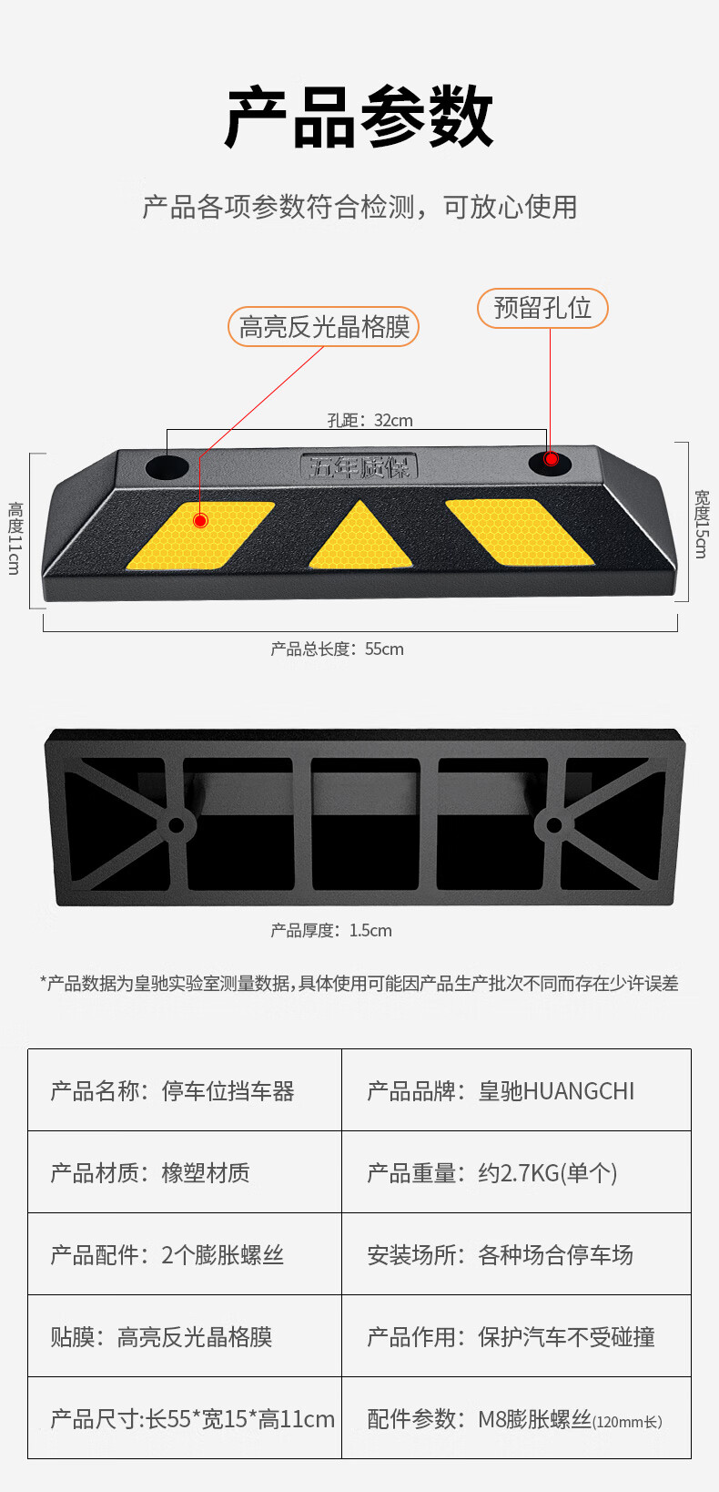 Huangchi parking space stopper rubber and plastic garage limiter wheel positioner HCDW56-rubber and plastic two pack