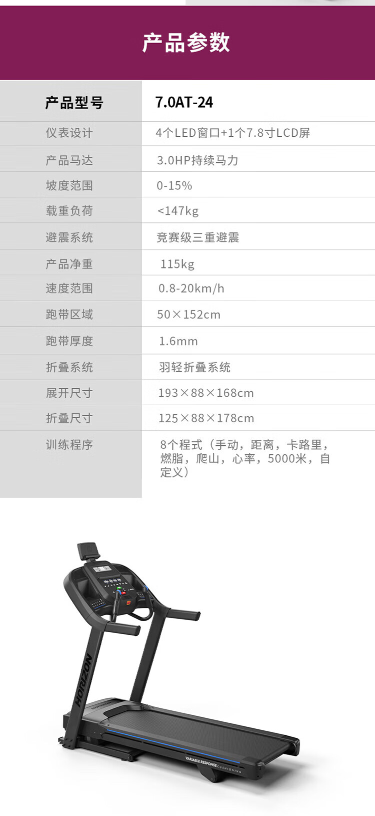 JOHNSON treadmill, foldable sports fitness equipment for smart home, smart climbing gym 7.0AT-24