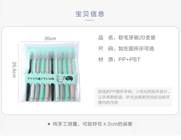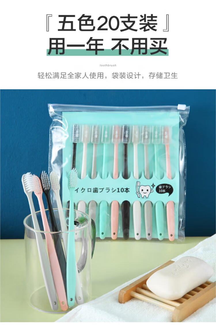 Meijia Life Toothbrush Set 20 Pieces Adult Family Pack Household Soft-bristled Disposable Hospitality Toothbrush