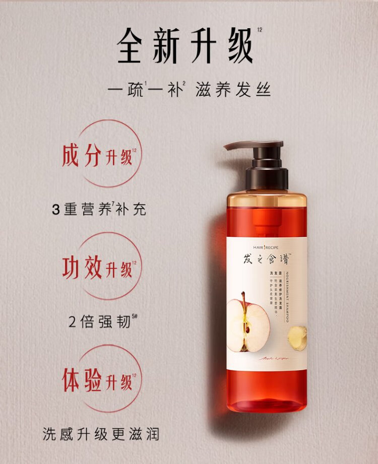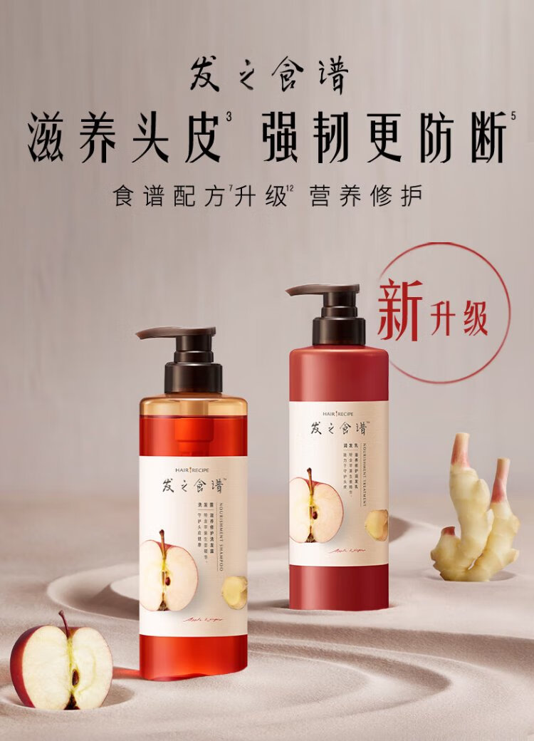 Hair Recipe Apple Ginger Shampoo for Men and Women 530ml Smooth, Moisturizing and Strong Silicone-Free Shampoo