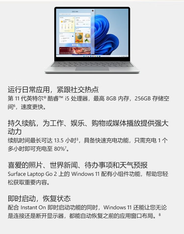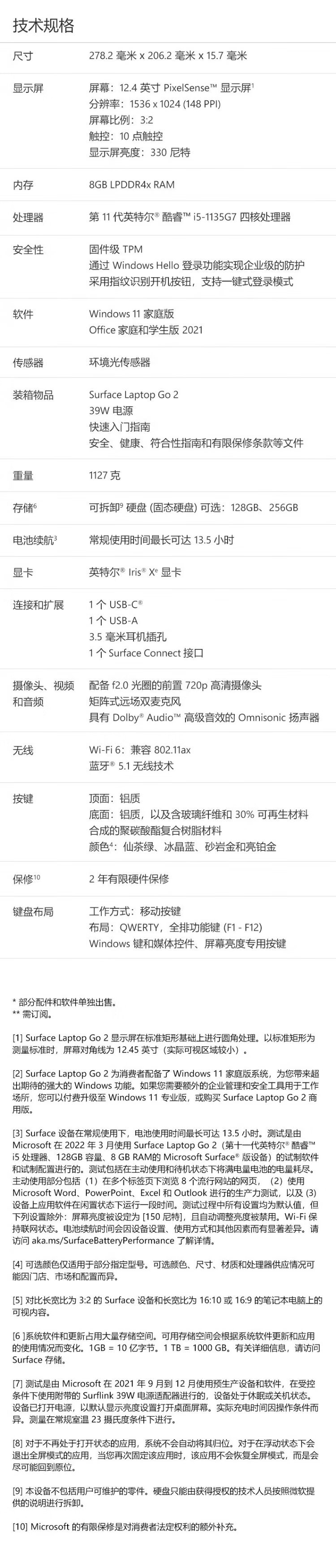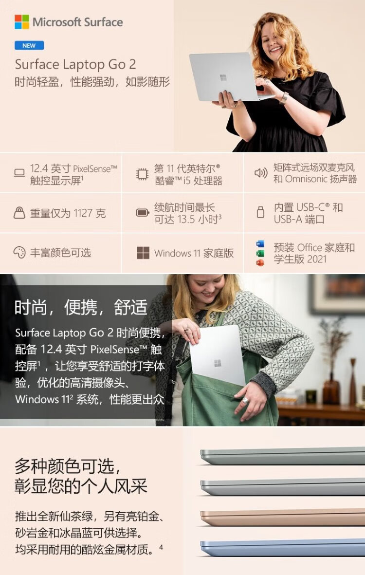 Microsoft Surface Laptop Go 2 laptop i5 16G+256G bright platinum 12.4-inch touch screen student notebook office notebook