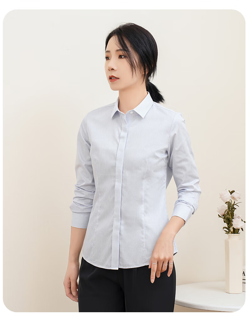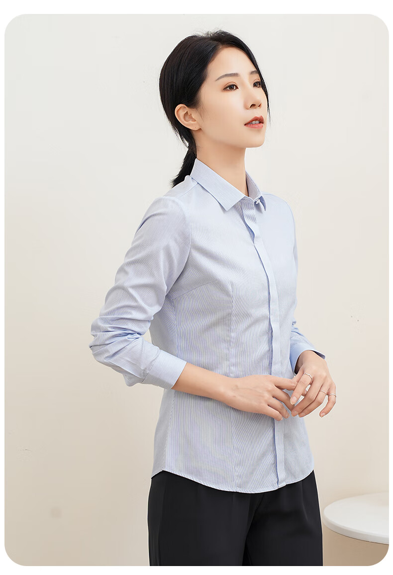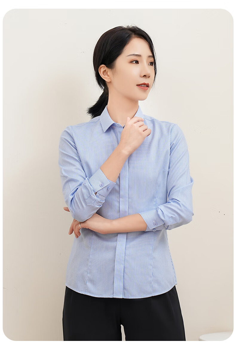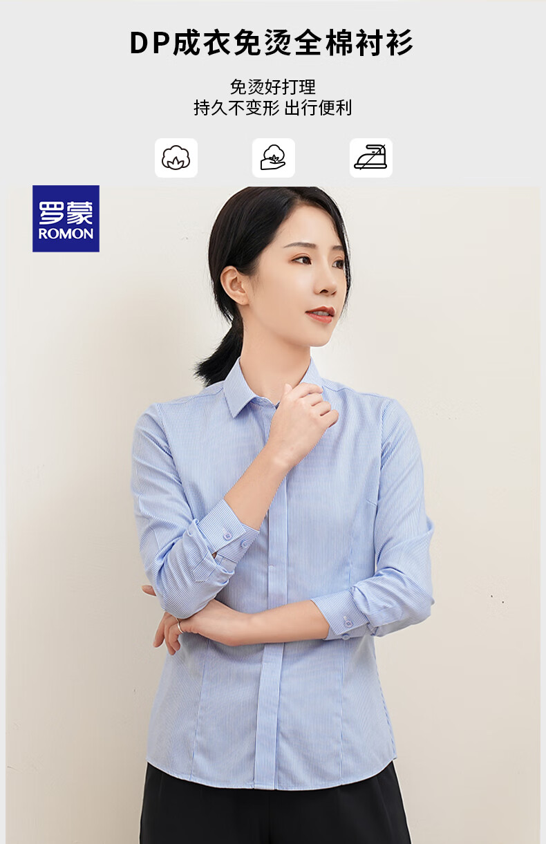 Romon DP no-iron 100% cotton anti-wrinkle long-sleeved shirt for women pure cotton no-iron slim business striped shirt for women