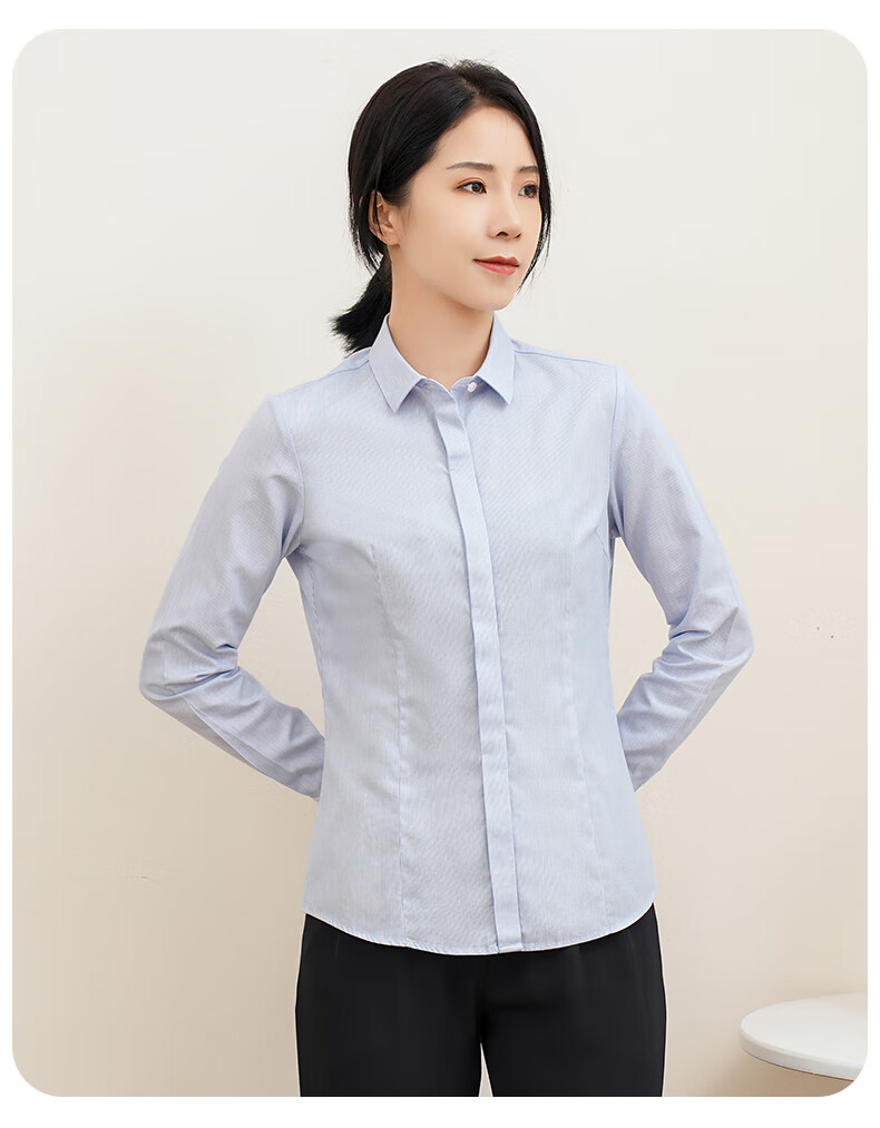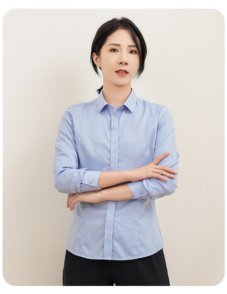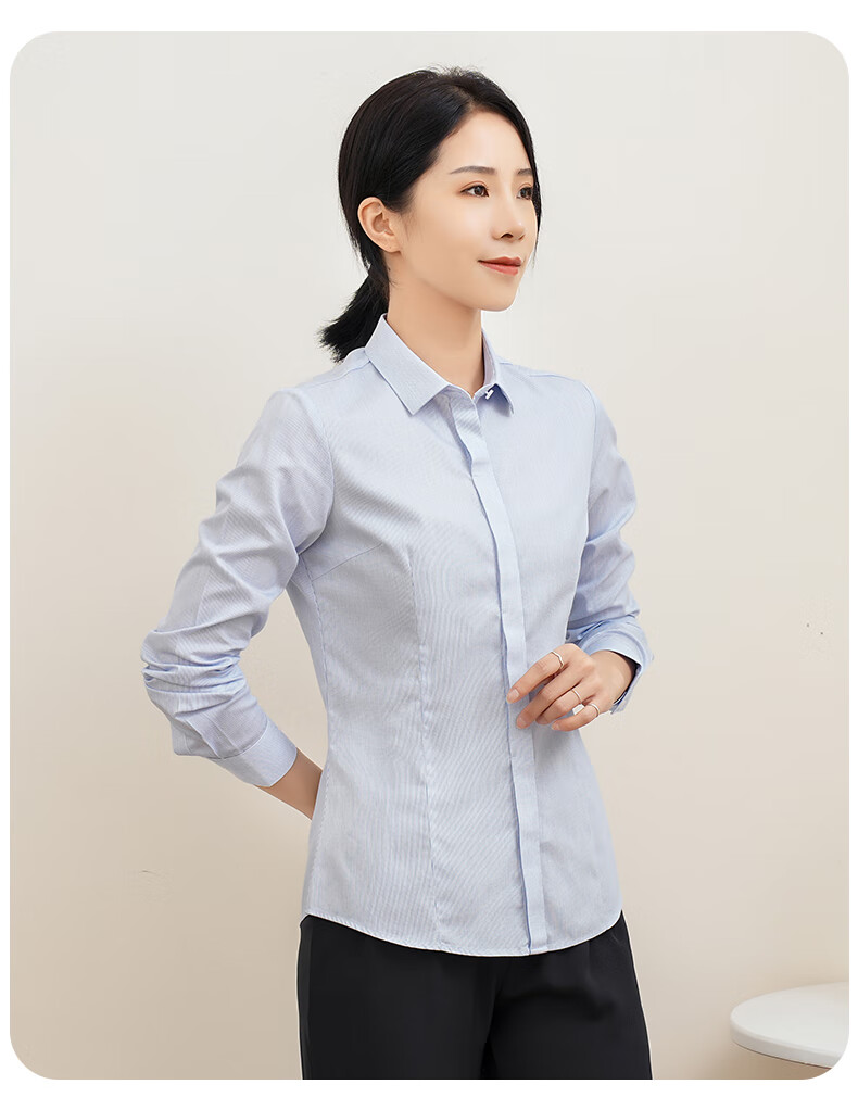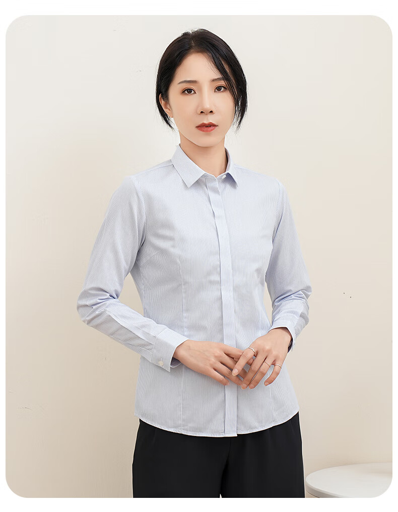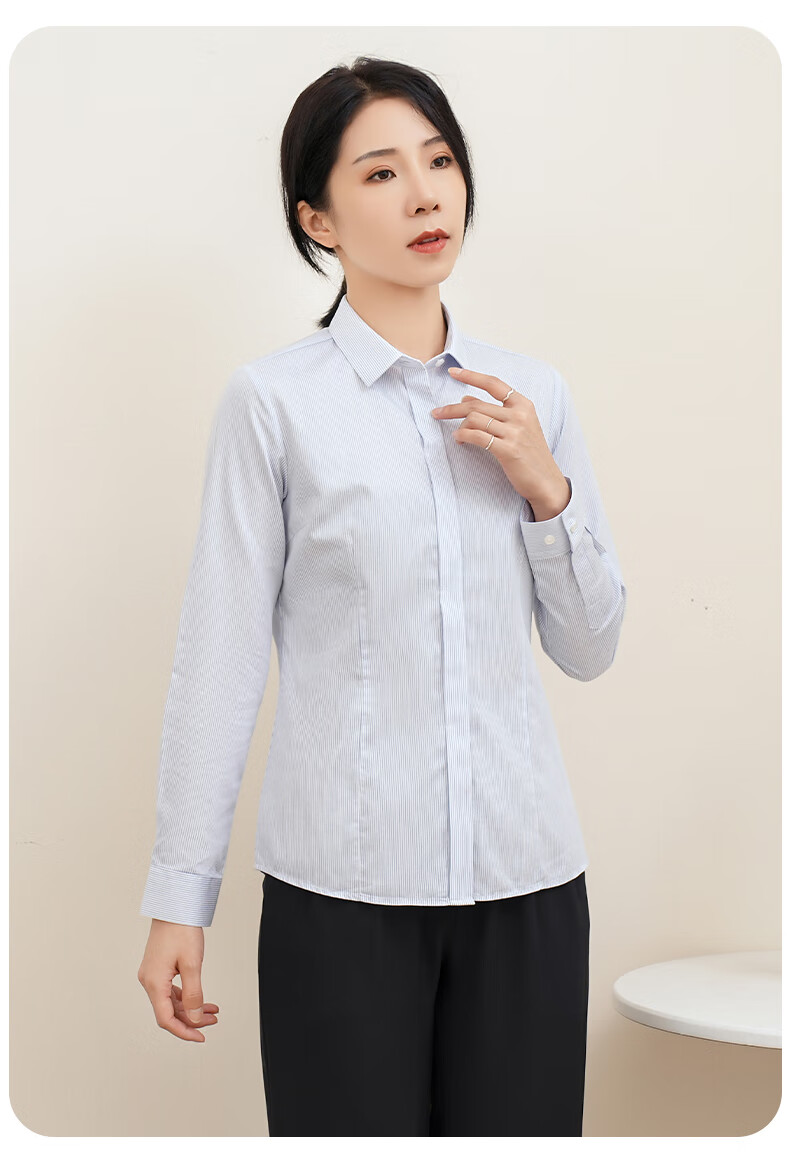 Romon DP no-iron 100% cotton anti-wrinkle long-sleeved shirt for women pure cotton no-iron slim business striped shirt for women