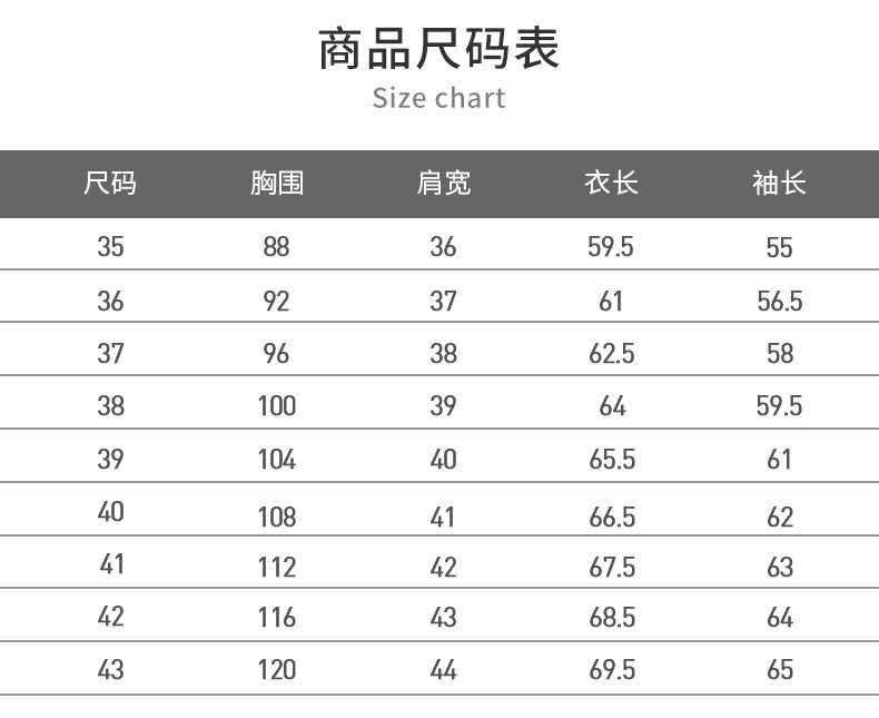 China (cm) 160-165/84-86 165-170 / 88-90 167-172 / 92-96 168-173 / 98-102 170-176 / 106-110