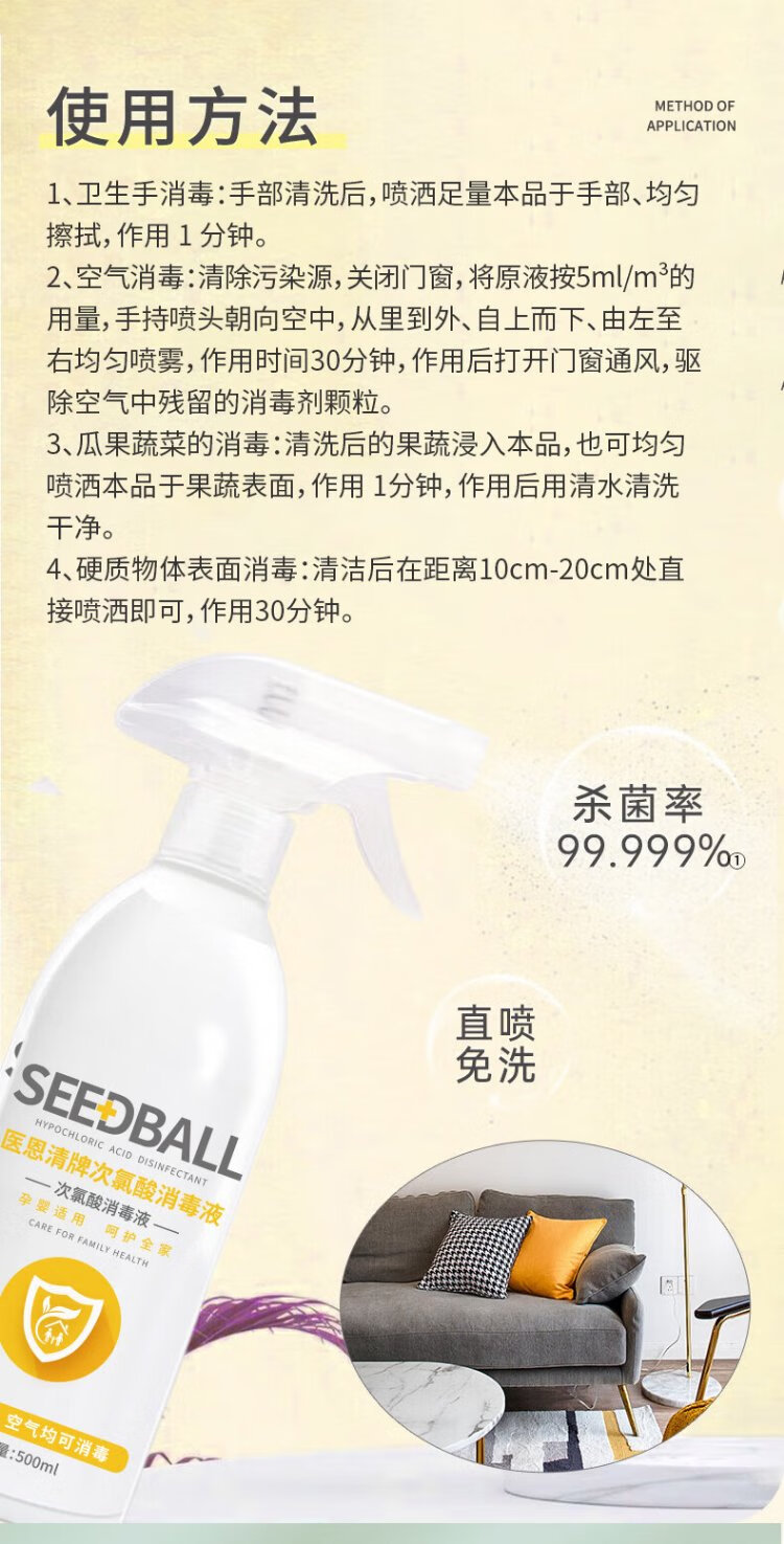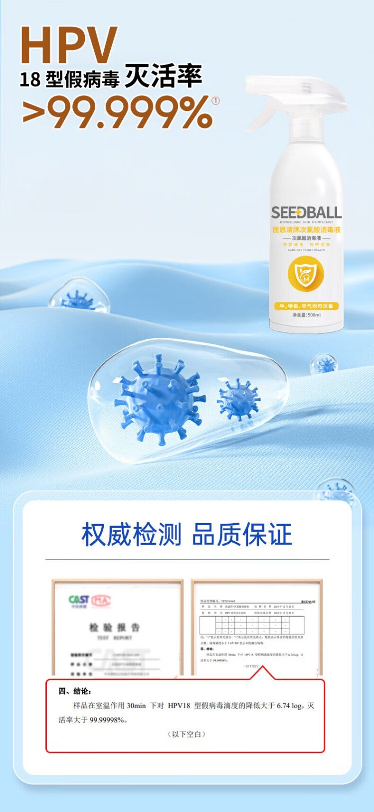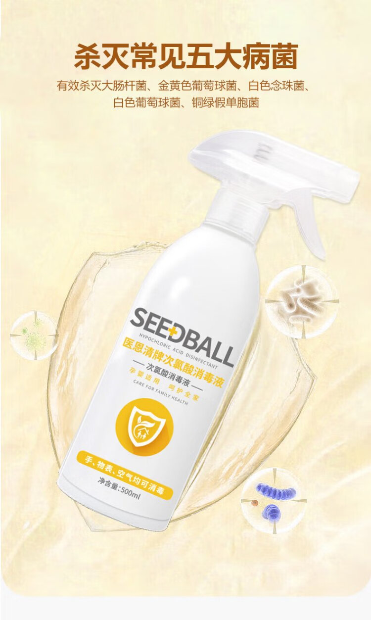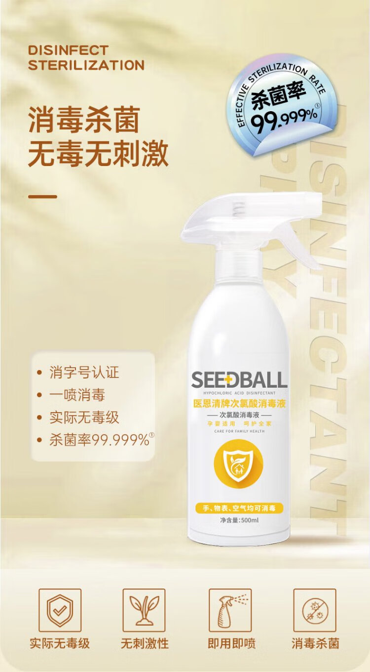 SEEDBALL hypochlorous acid disinfection spray HPV disinfectant 500ml room children's toys pet sterilization and disinfection spray