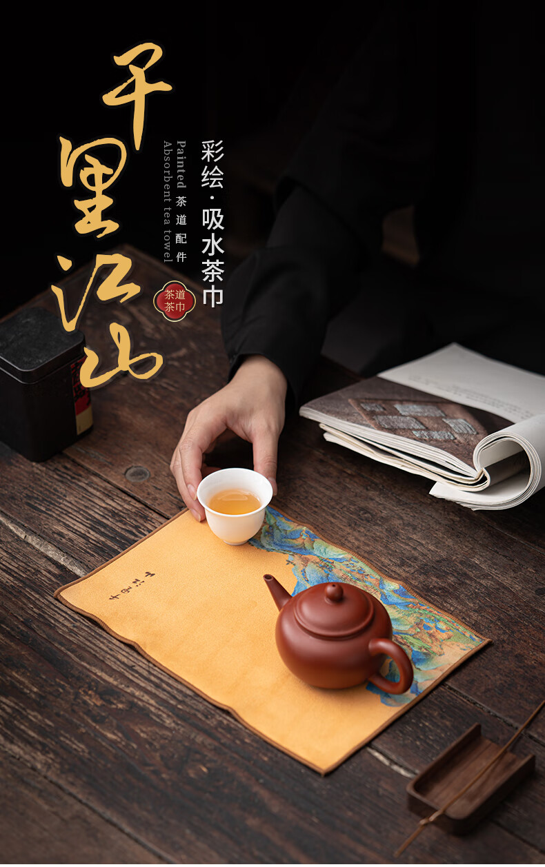 SUSHI CERAMICS tea towel Qianli Jiangshan country trend double absorbent Zen dry brew teapot mat