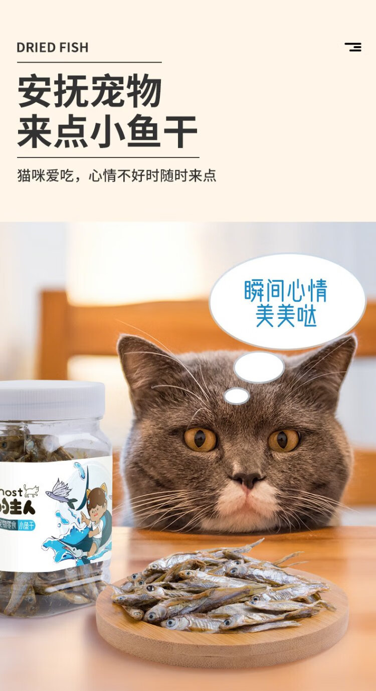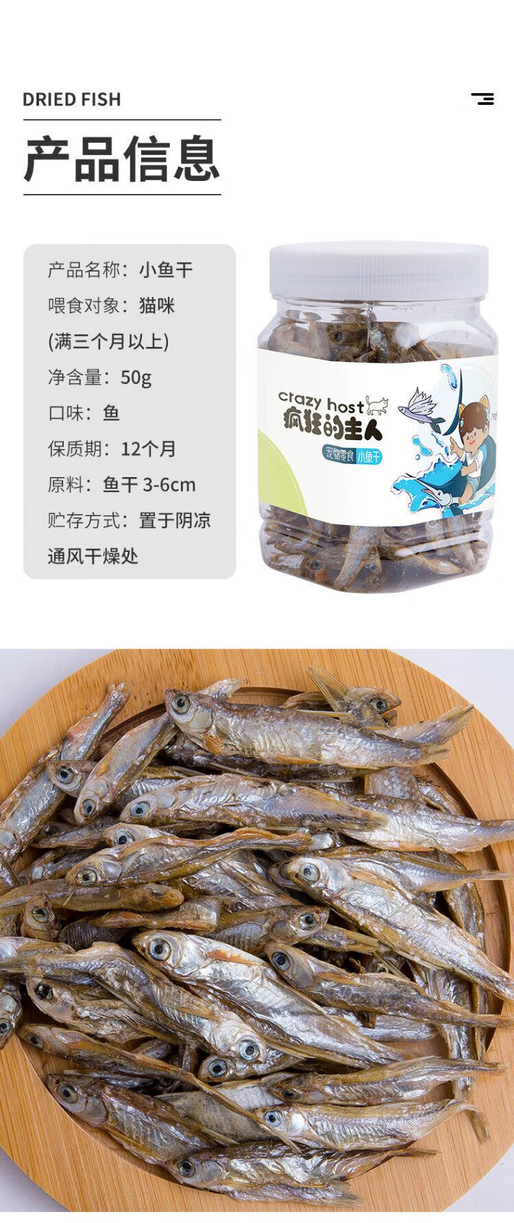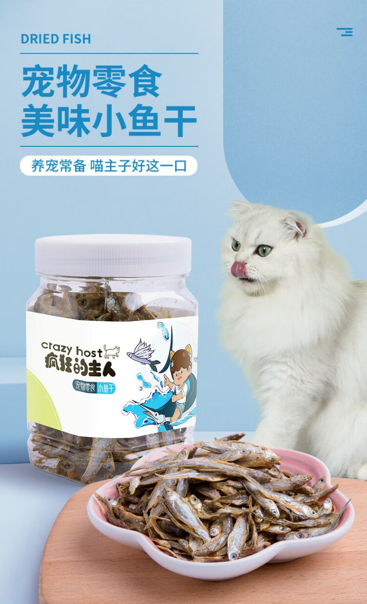 Crazy owner cat snacks small dried fish snacks for kittens and adult cats, duck and fish snacks 50g