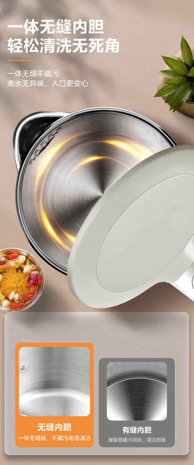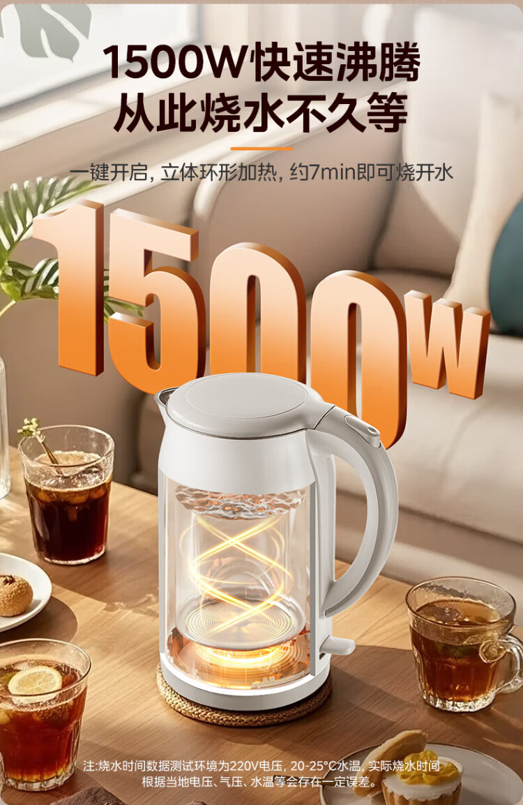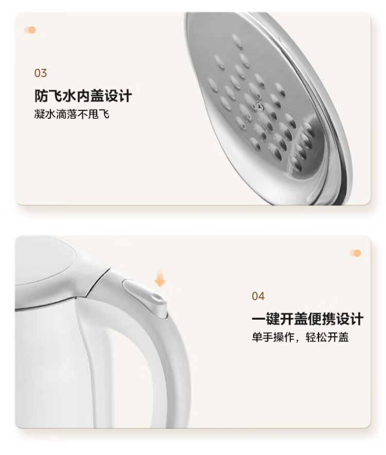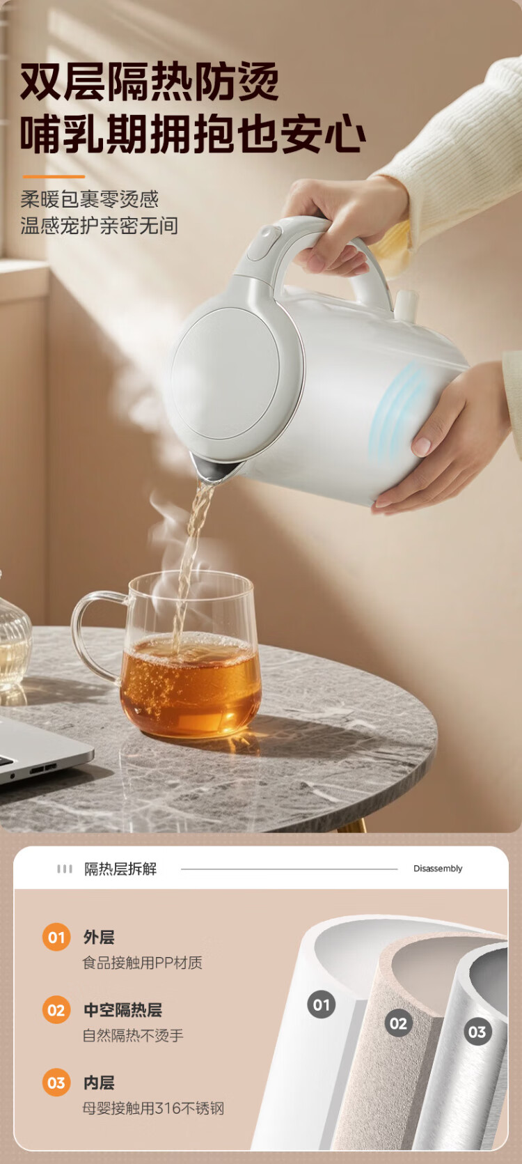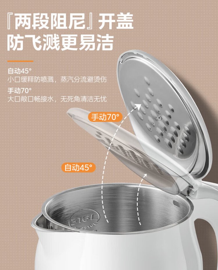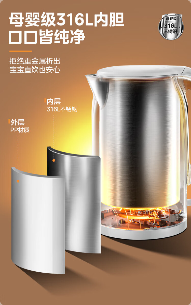 Midea electric kettle food-grade 316L stainless steel double-layer seamless integrated inner tank anti-scalding kettle price guarantee 11.11 1.7L automatic smart power off SH17M301PRO
