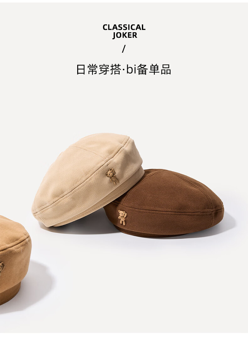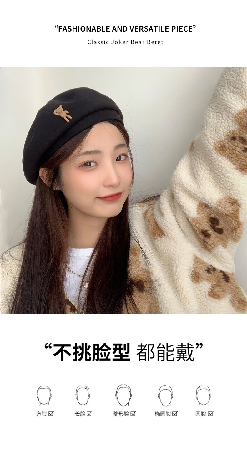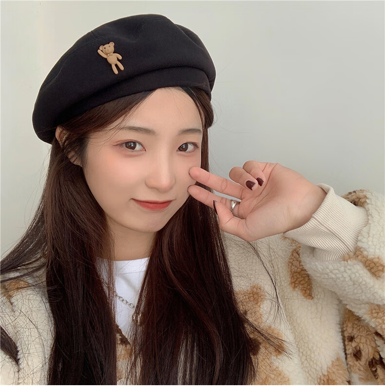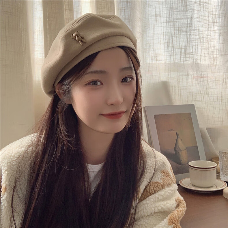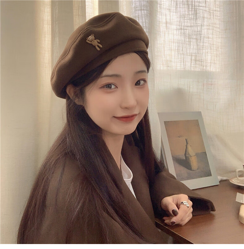 XUEXIMAN (XUEXIMAN) Japanese retro cartoon bear brown woolen beret for women with fashionable temperament painter hat for women