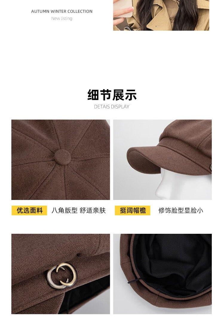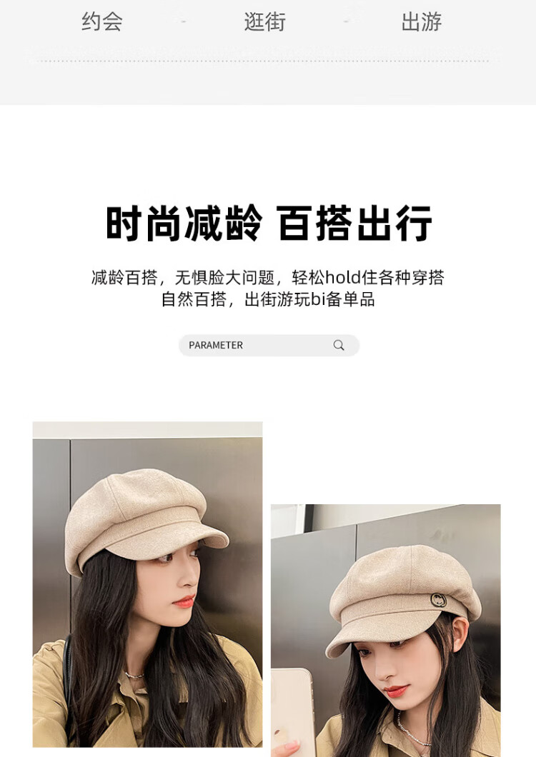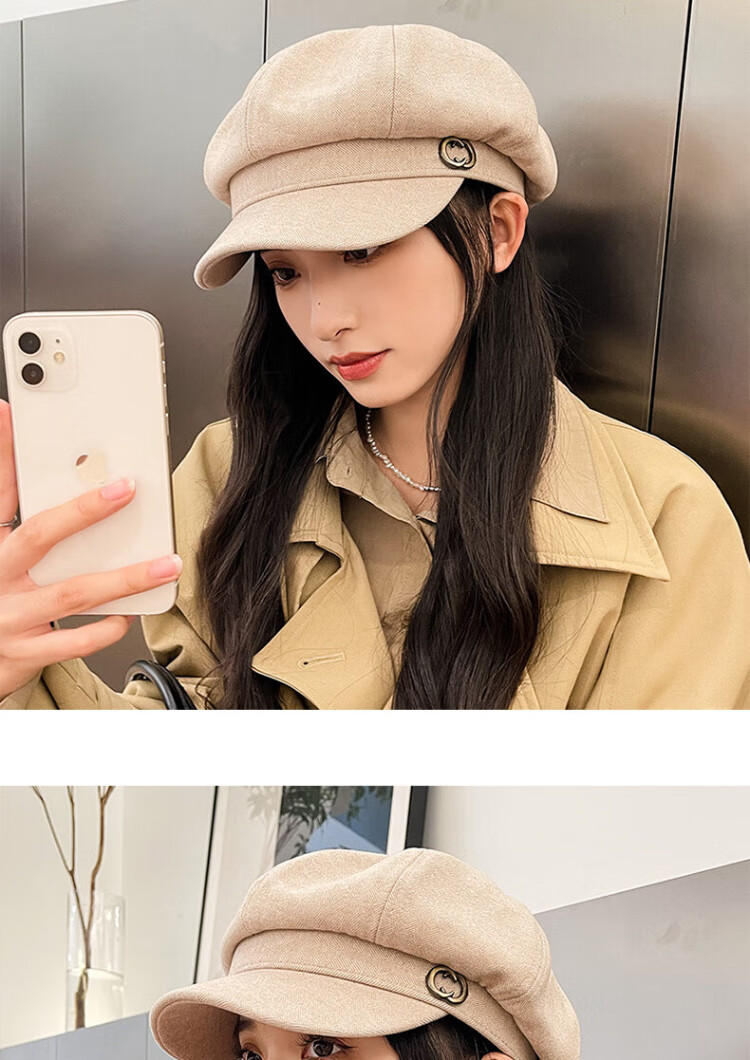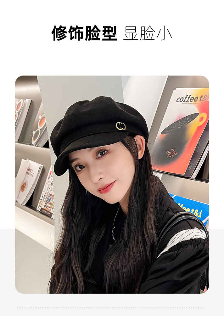 XUEXIMAN beret women's Korean style British retro all-match face-showing small octagonal hat painter's peaked hat