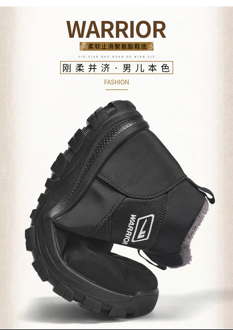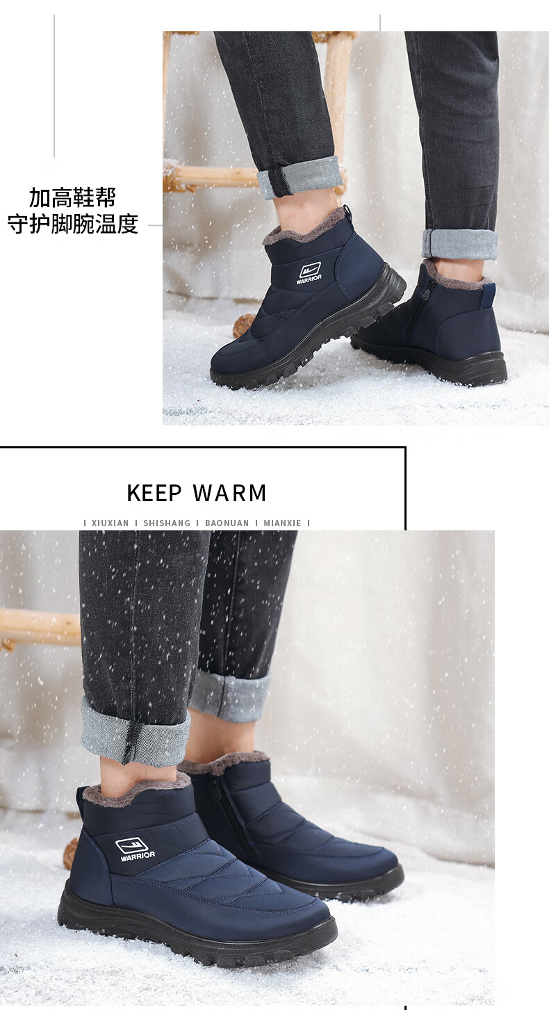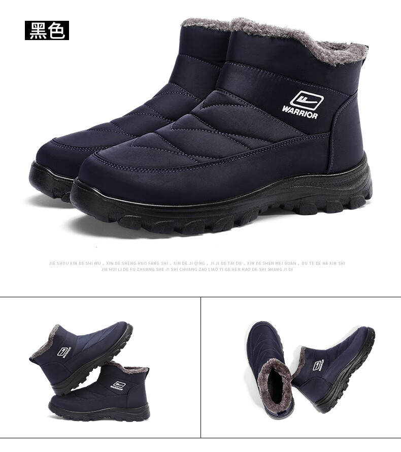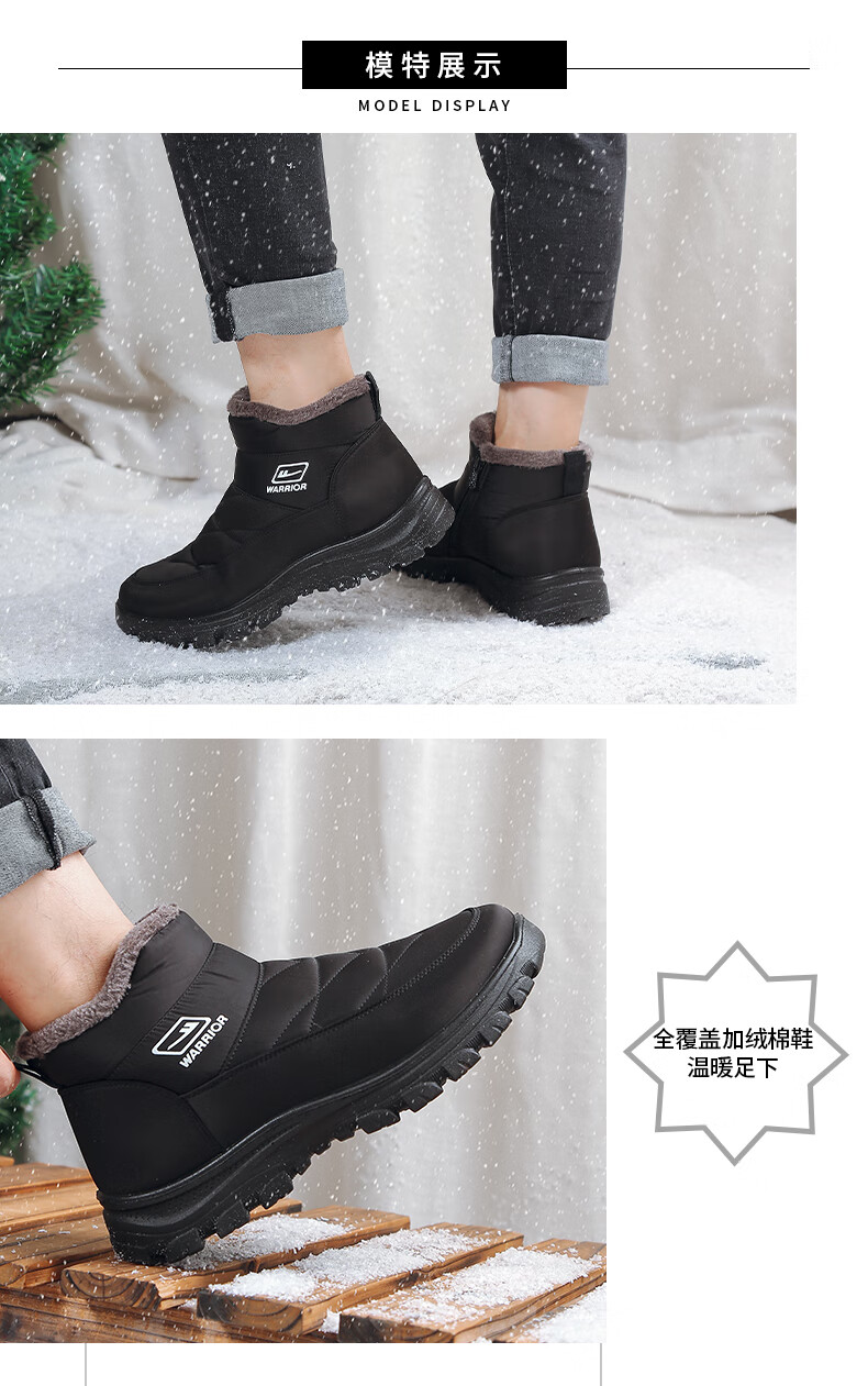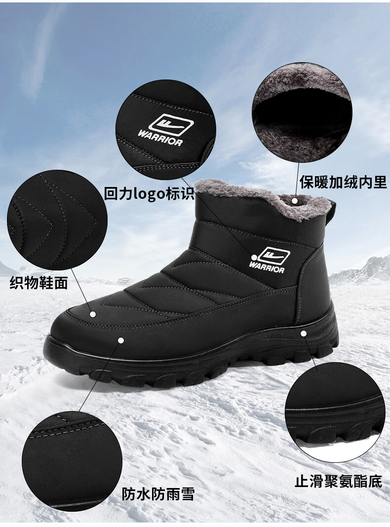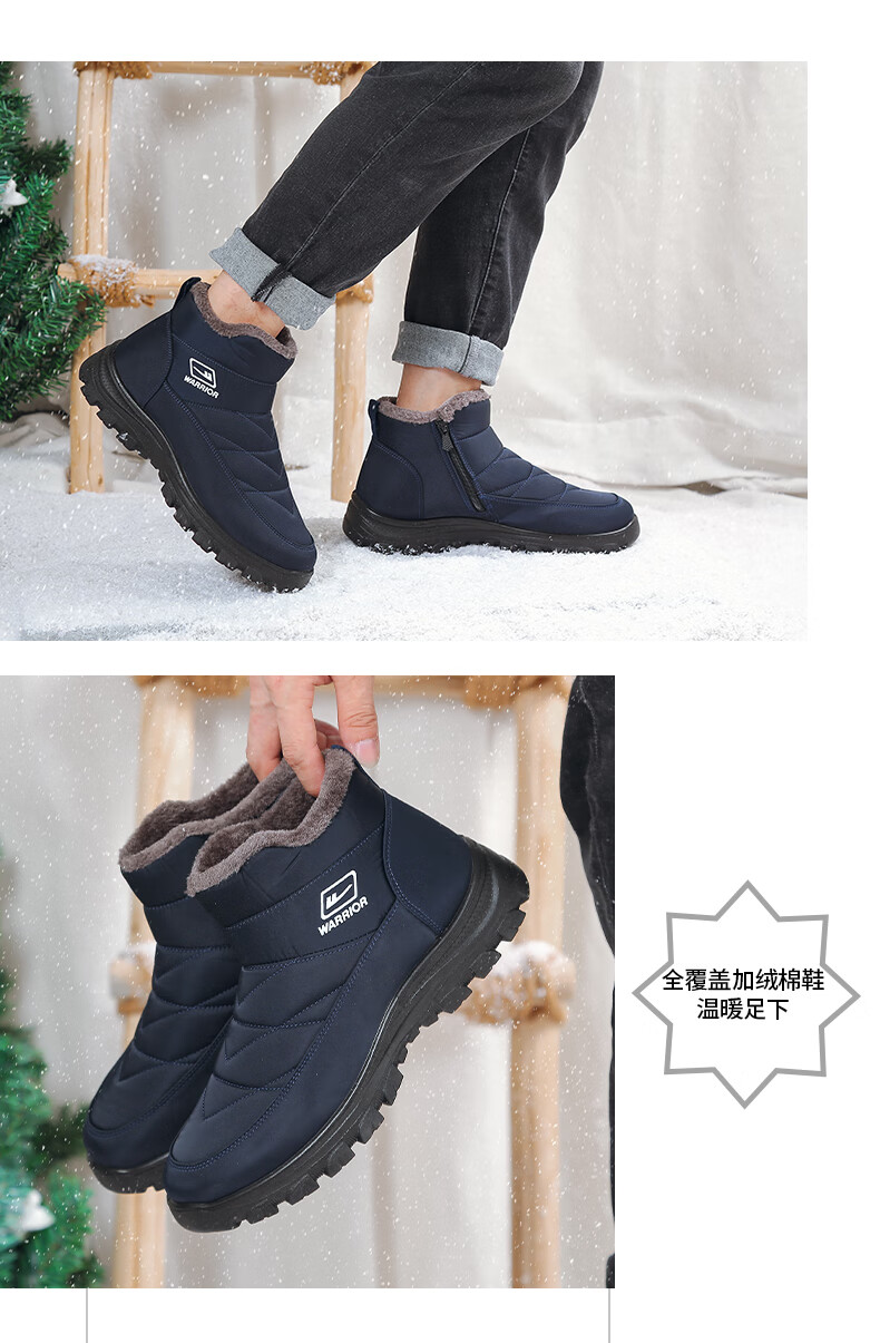 Warrior Cotton Shoes Men's Winter Velvet Thickened Snow Boots Men's Middle-aged and Elderly Warm Shoes Martin Boots Atmospheric Black 41