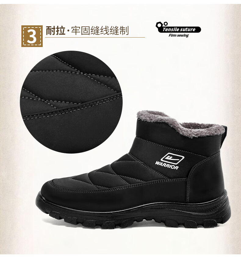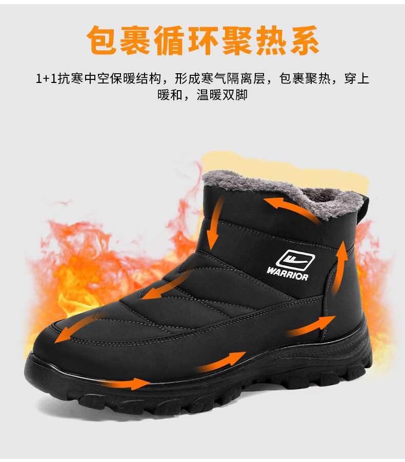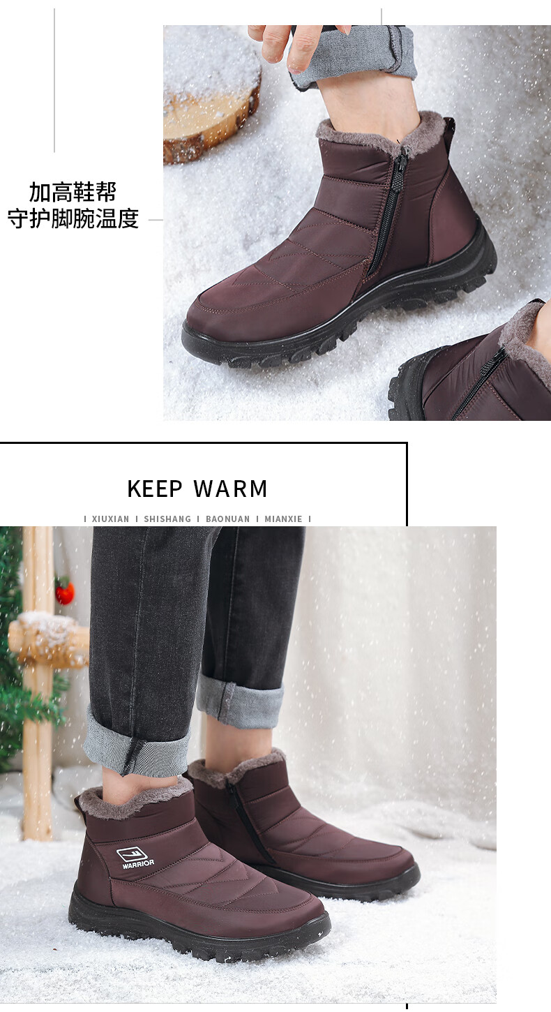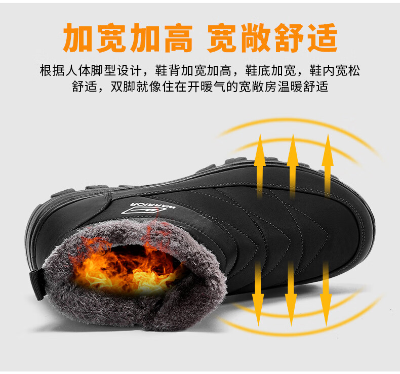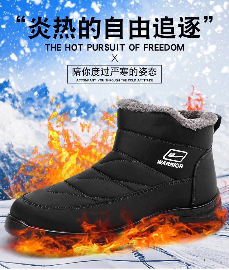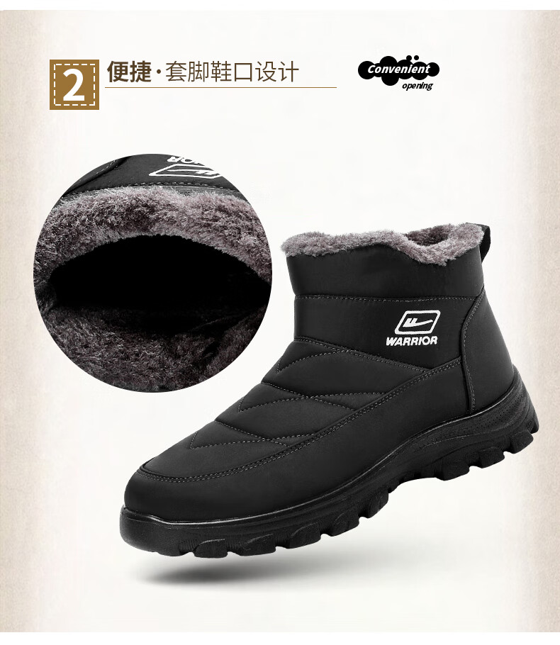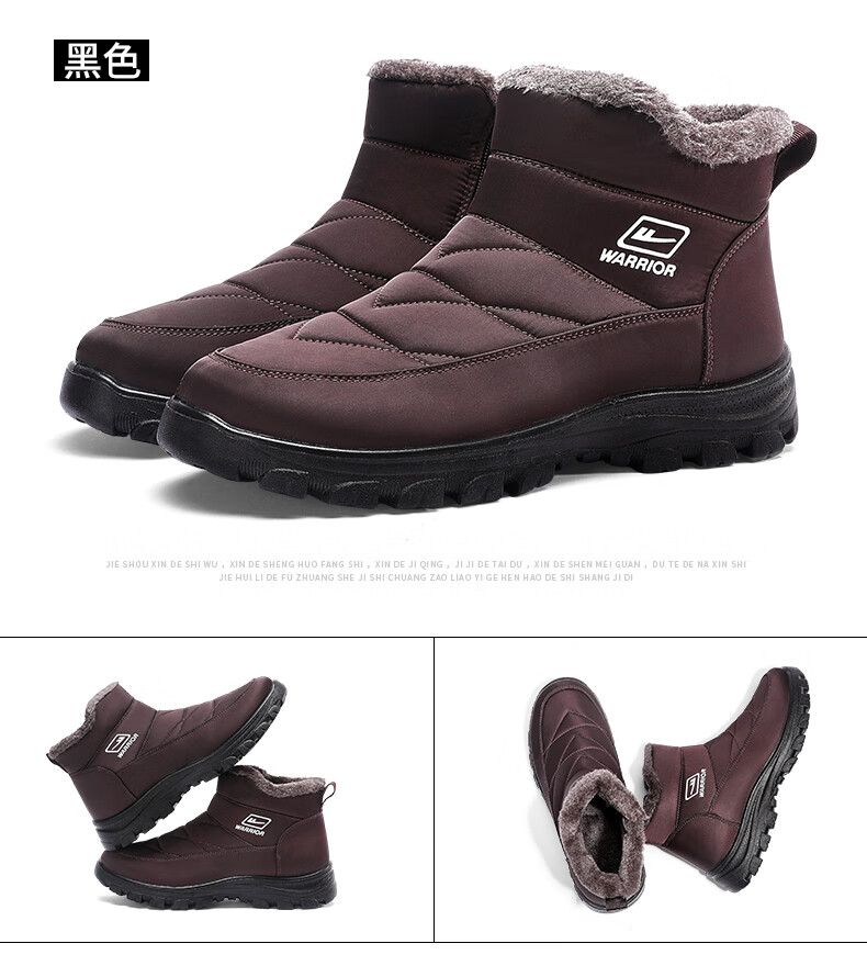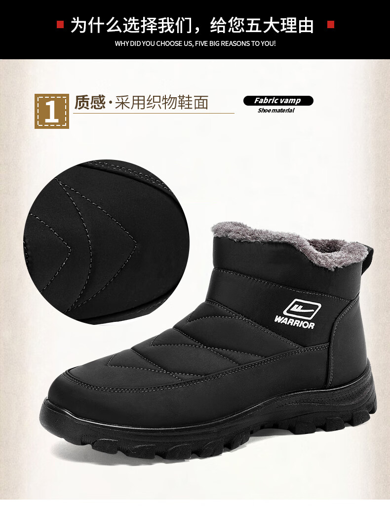 Warrior Cotton Shoes Men's Winter Velvet Thickened Snow Boots Men's Middle-aged and Elderly Warm Shoes Martin Boots Atmospheric Black 41