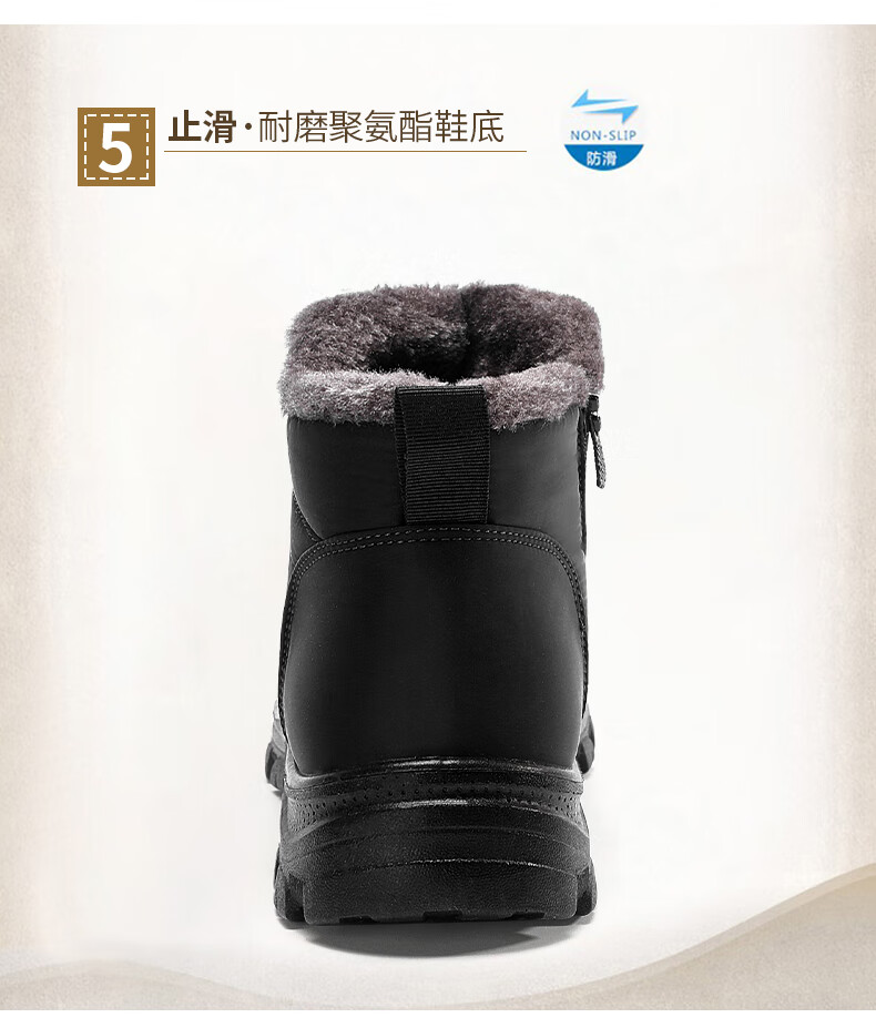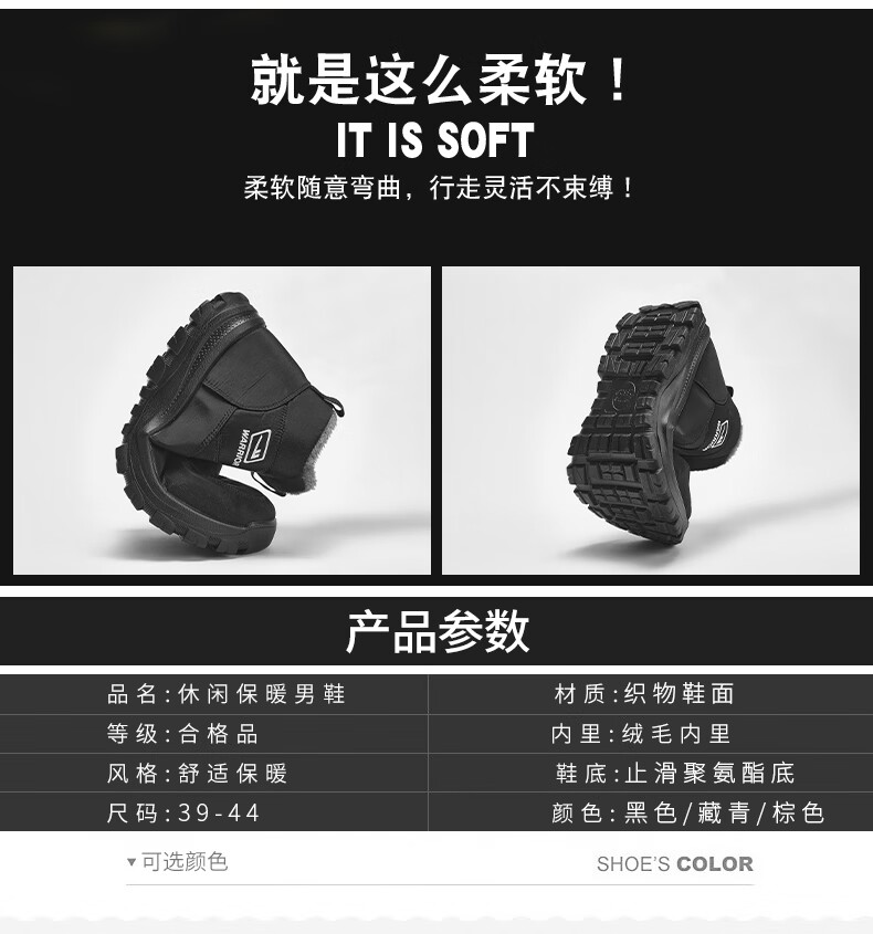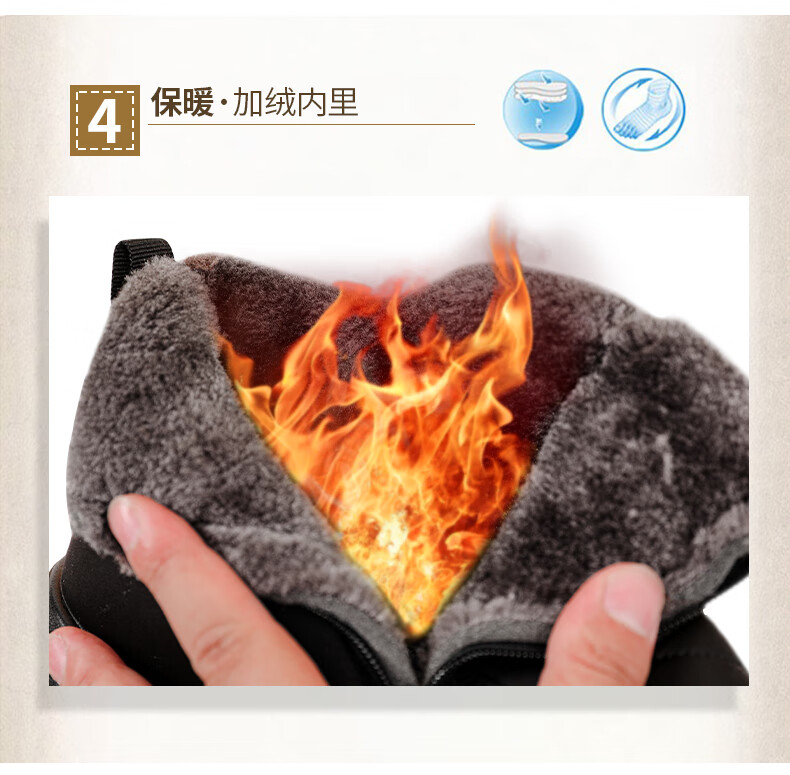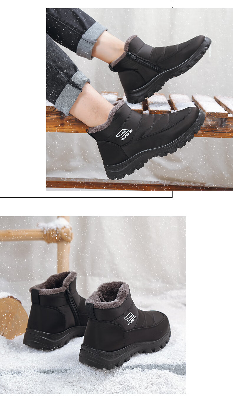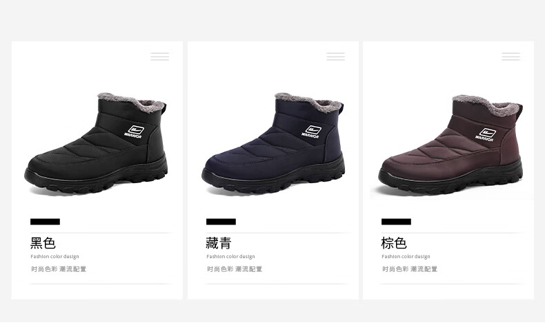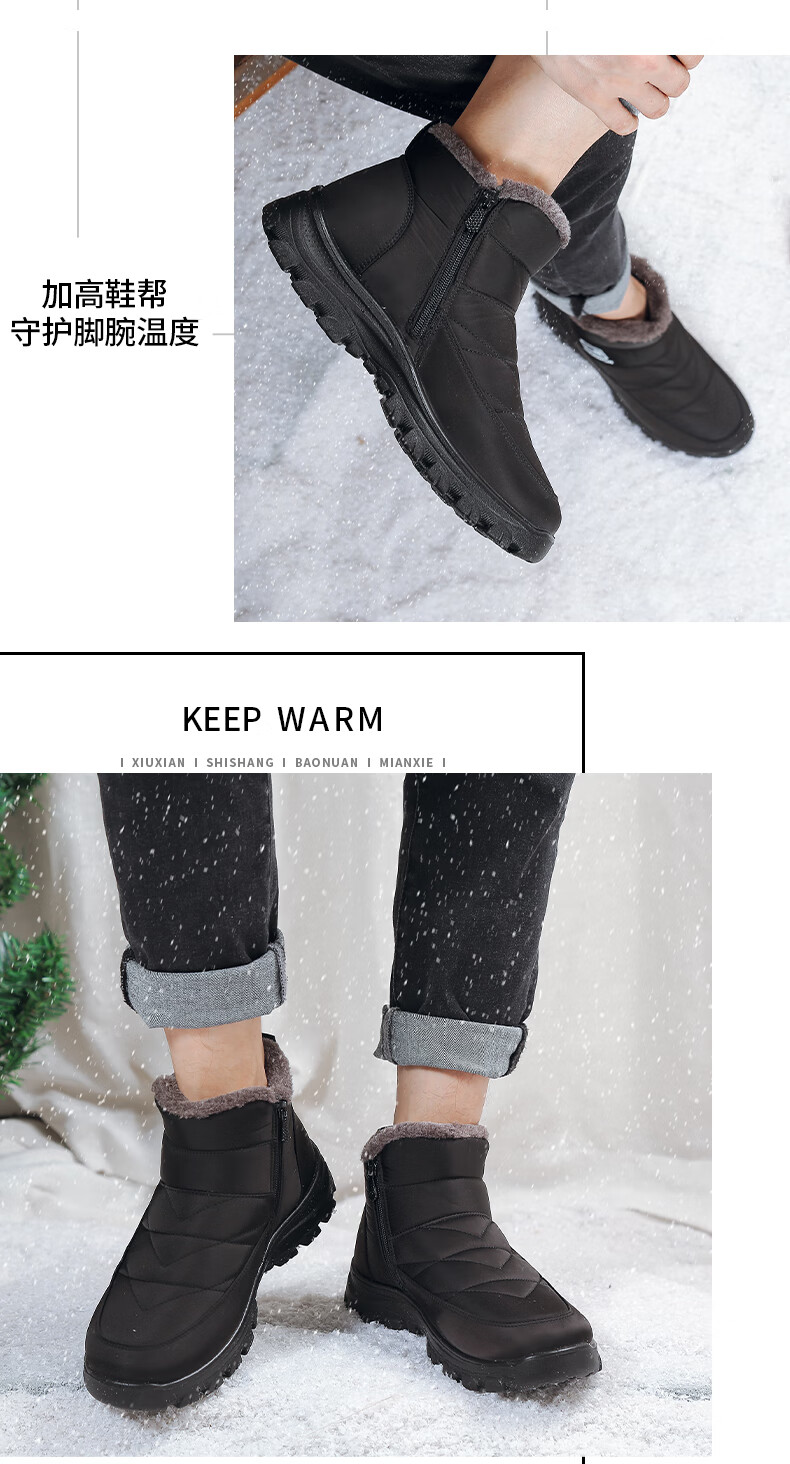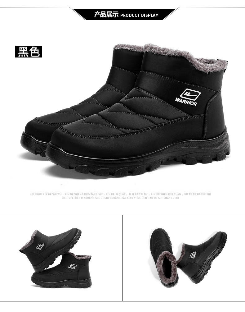 Warrior Cotton Shoes Men's Winter Velvet Thickened Snow Boots Men's Middle-aged and Elderly Warm Shoes Martin Boots Atmospheric Black 41