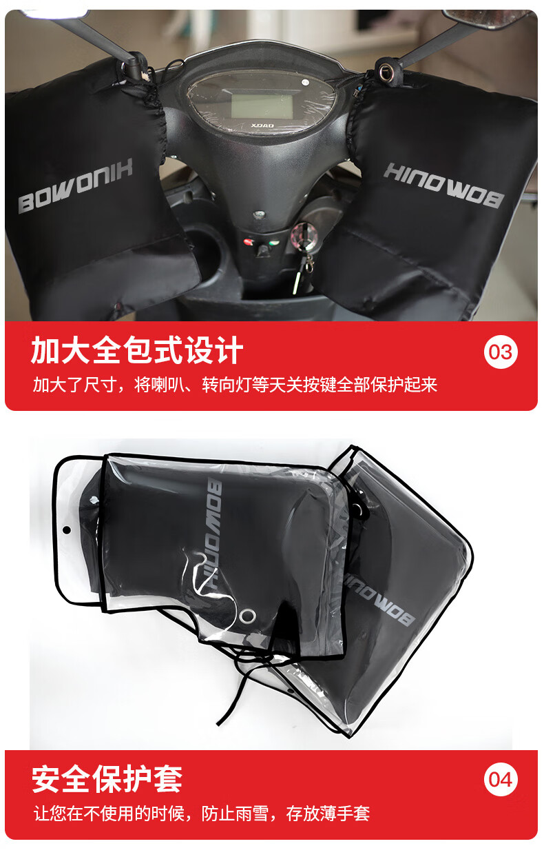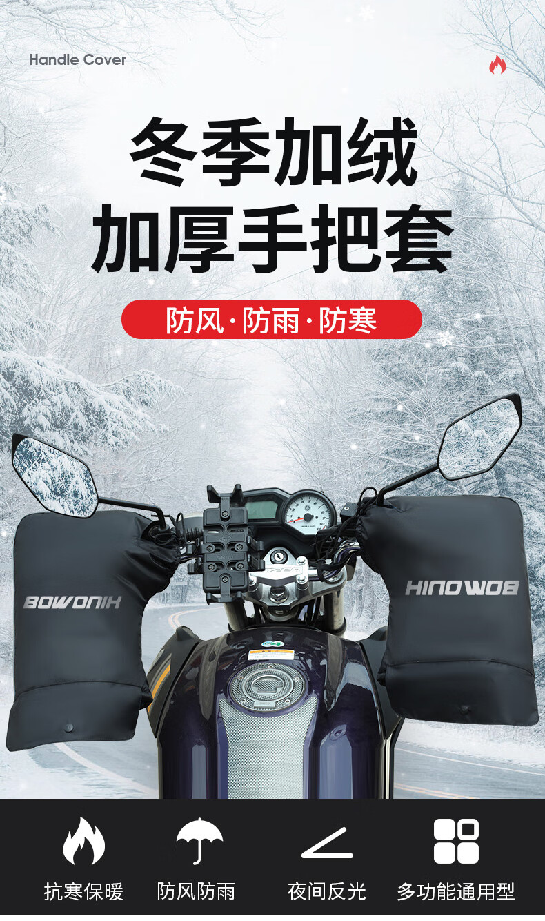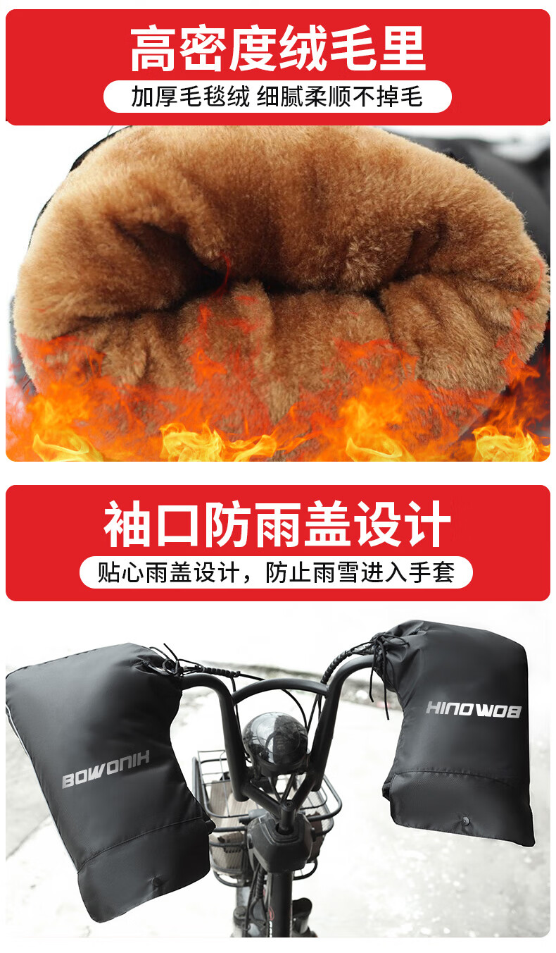 Bovonik electric vehicle gloves, motorcycle handlebar covers, winter warm pedals, thickened velvet windshield, large mouth model for riders
