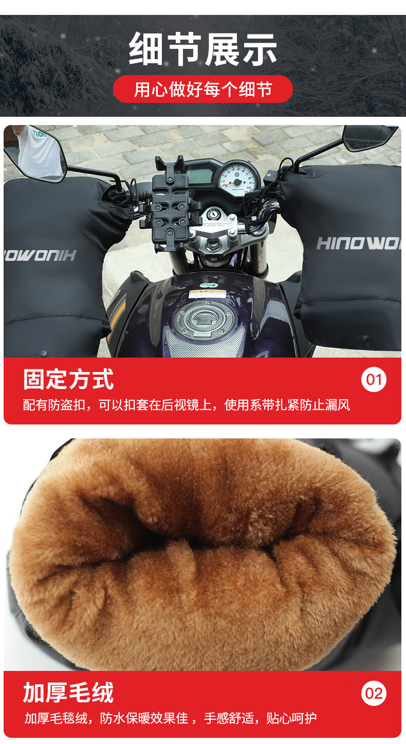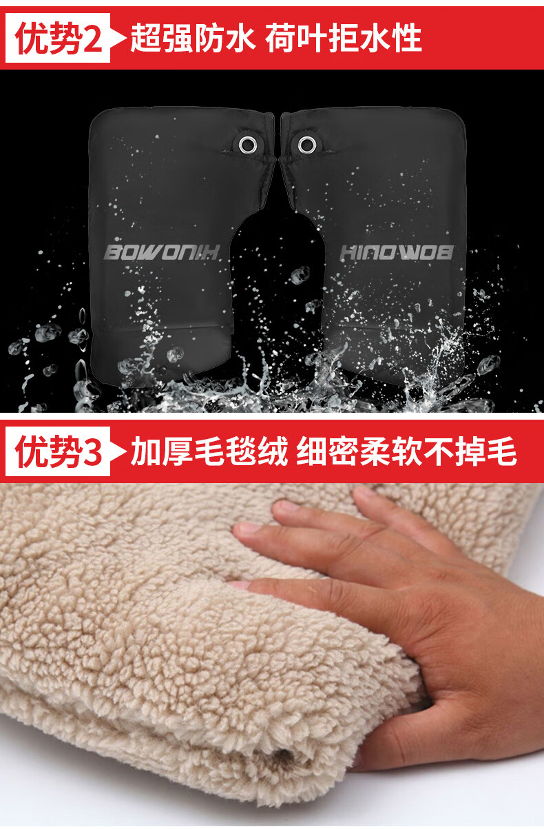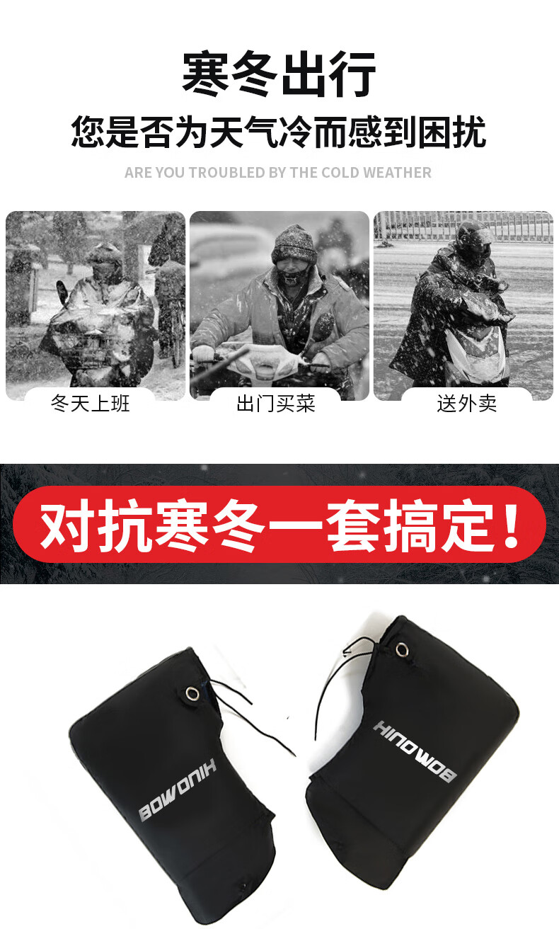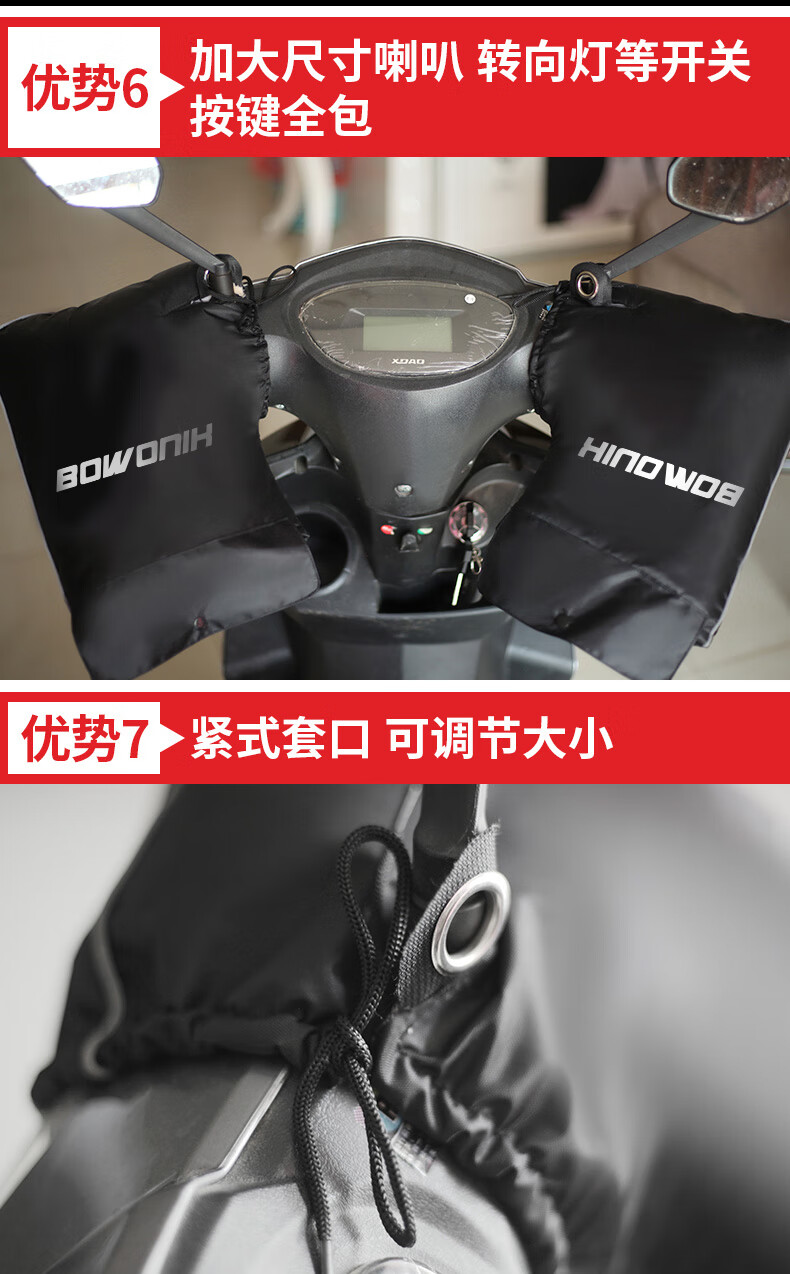 Bovonik electric vehicle gloves, motorcycle handlebar covers, winter warm pedals, thickened velvet windshield, large mouth model for riders