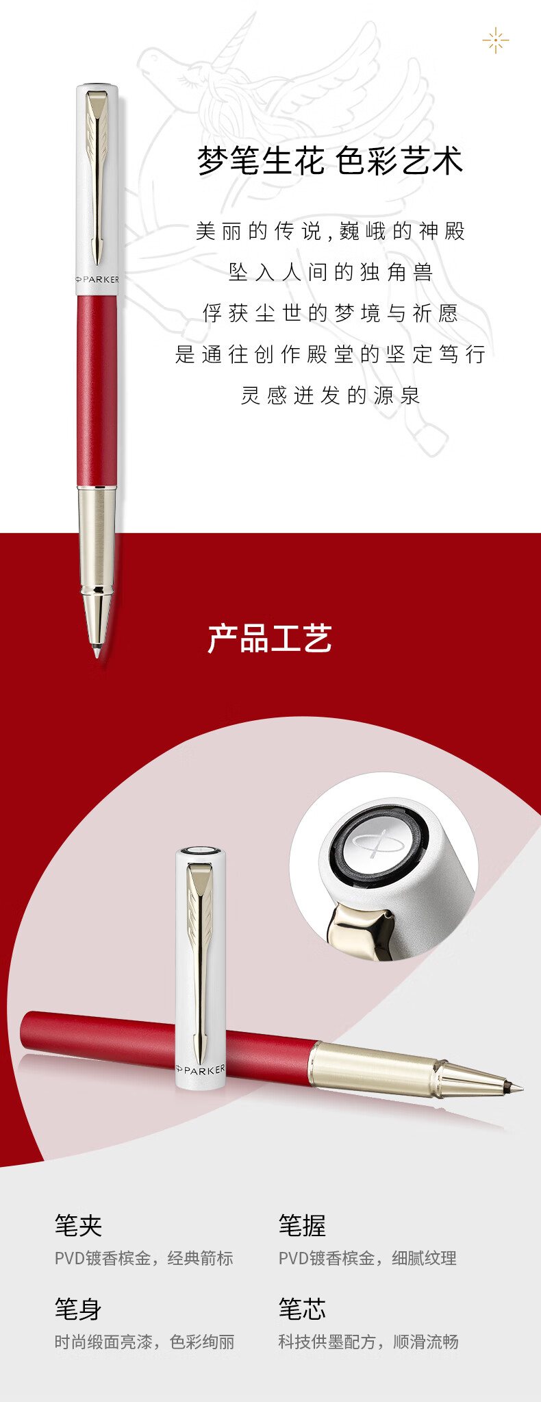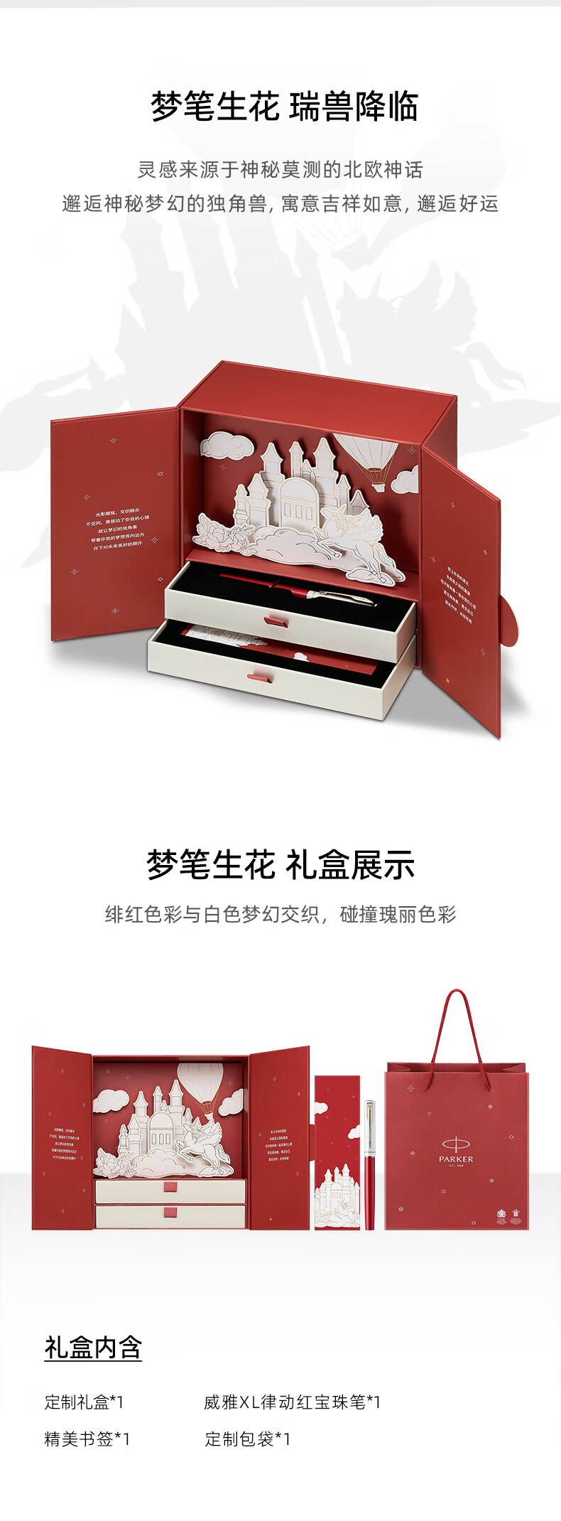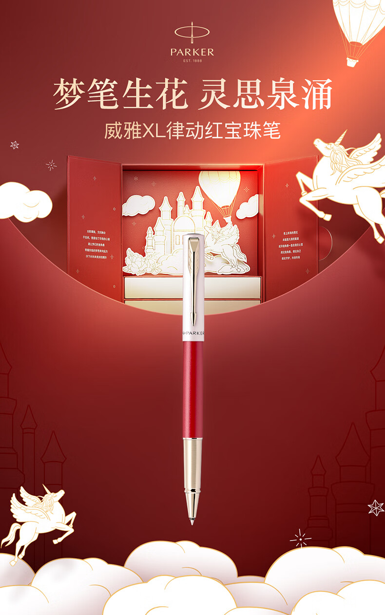 PARKER Signature Pen, juego de caja de regalo de escritura clásica para regalos especiales de oficina de negocios, a través de bolígrafo rojo rítmico XL + caja de regalo de flores Dream Pen