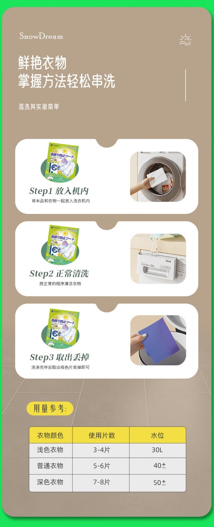 SnowDream Japanese anti-color laundry tablets 300 pieces color-absorbing sheets anti-cross-dying paper color master sheets bubble paper clothing anti-dying towels