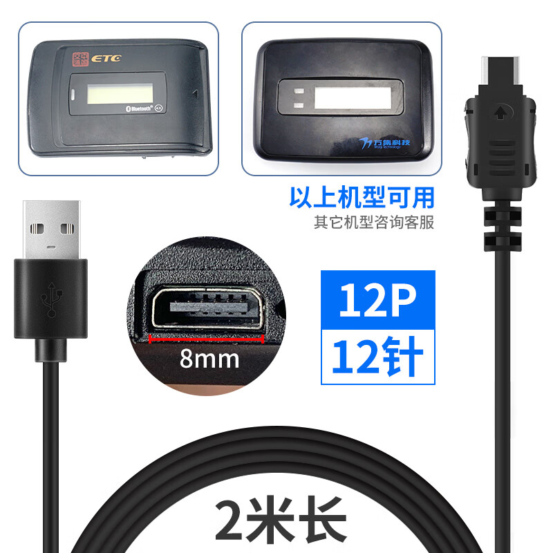 Degalen ETC equipment charging cable, vehicle-mounted high-speed etc emergency charging cable, car-specific data cable, 12-pin, 2 meters long