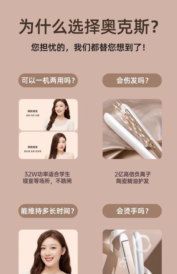 AUX curling iron, straightening splint, dual-purpose curling iron, negative ion electric splint, large curling hair clip, bangs, small ironing board, men's short hair salon, travel essentials