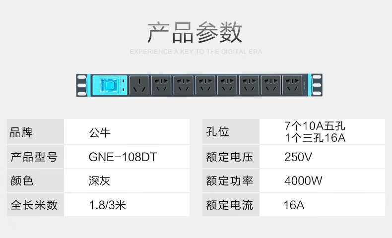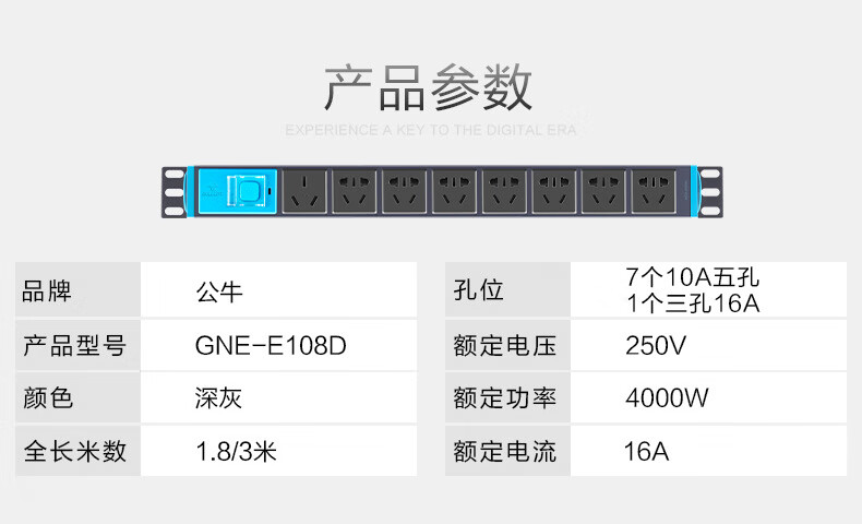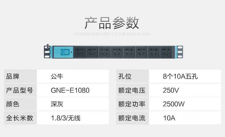 Bull BULL cabinet socket PDU aluminum alloy special power supply black cabinet socket lightning protection strip GN-E108DW/wireless cabinet socket