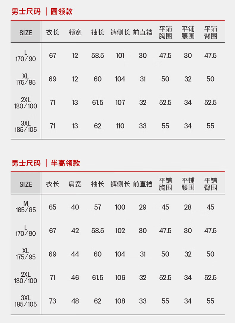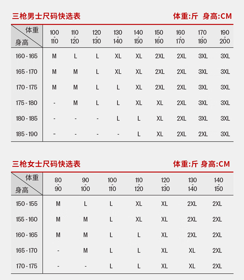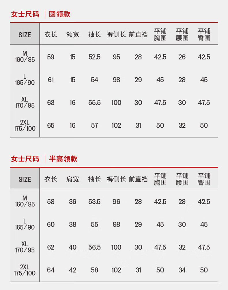 China (cm) 160-165/84-86 165-170 / 88-90 167-172 / 92-96 168-173 / 98-102 170-176 / 106-110