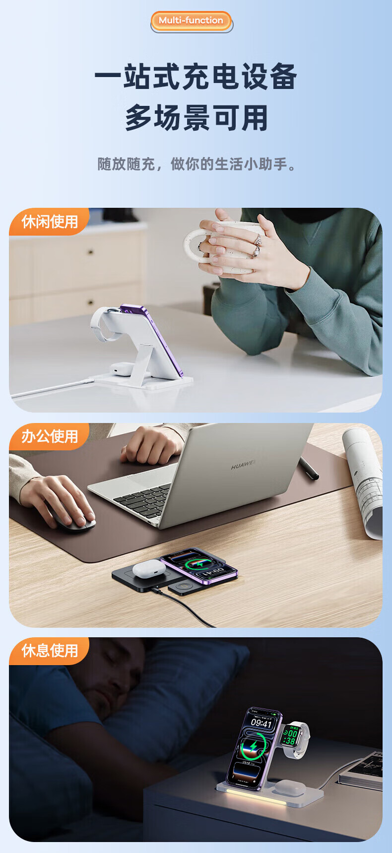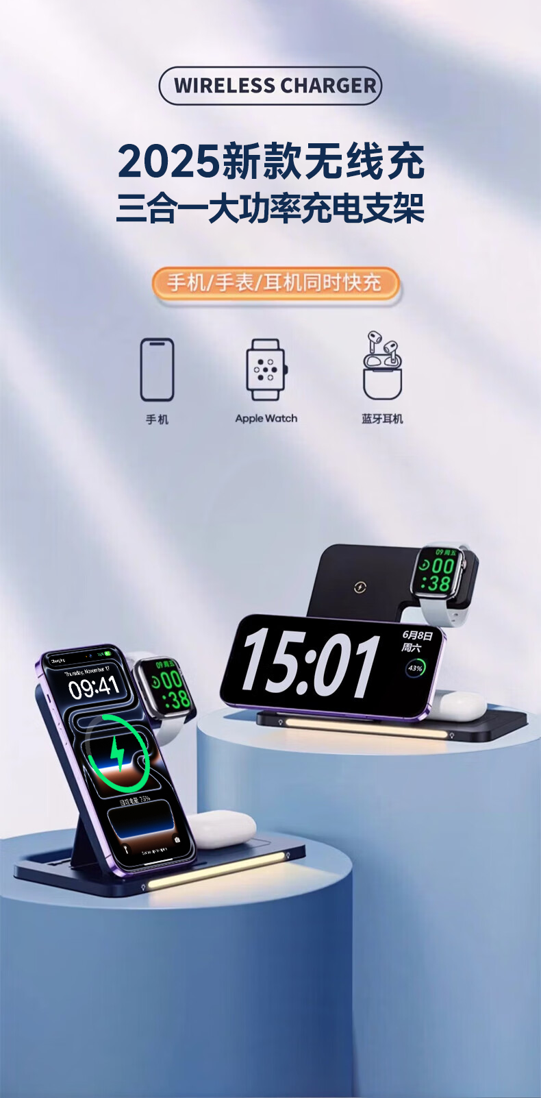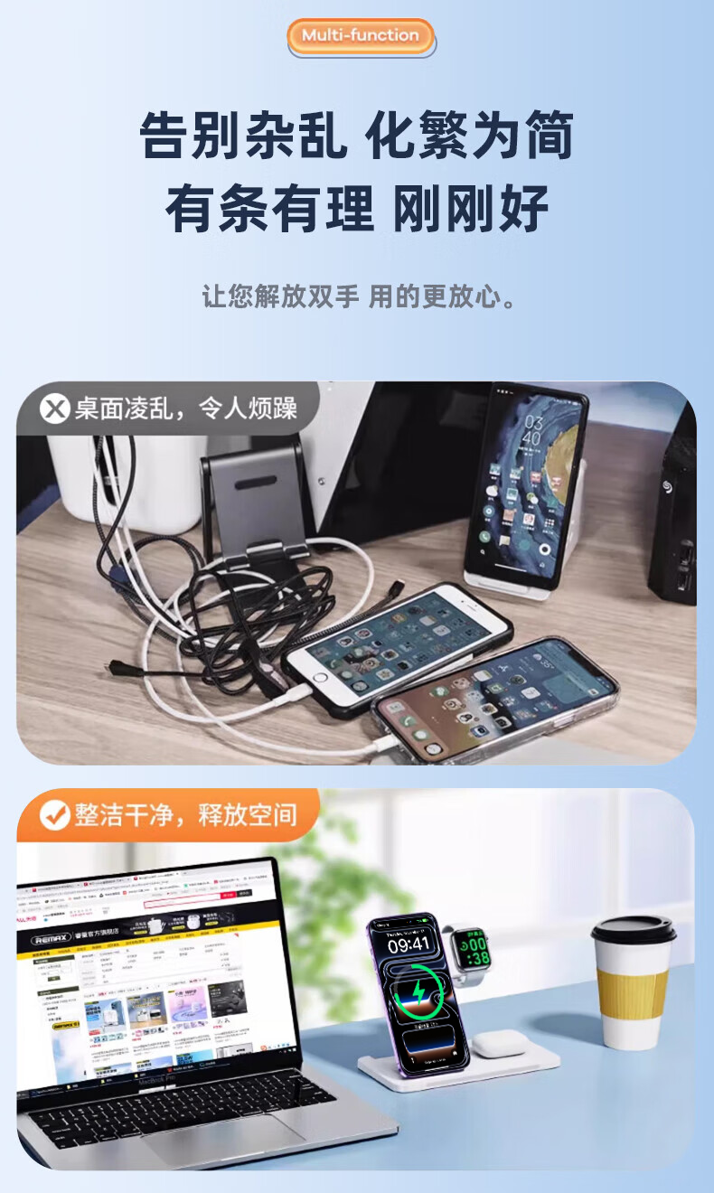 Remax Apple cargador inalámbrico tres en uno soporte vertical para teléfono móvil magsafe succión magnética adecuado para iPhone17 promax Xiaomi 17 Huawei mateP80/iwatch watch