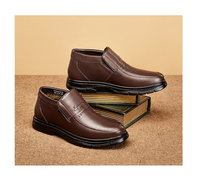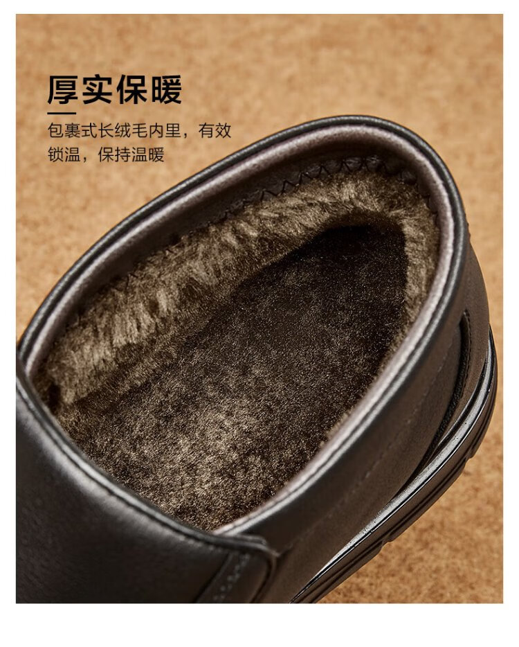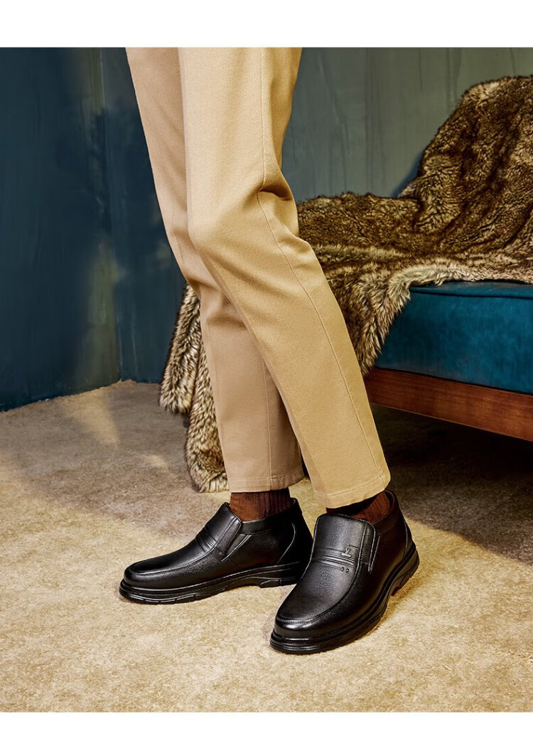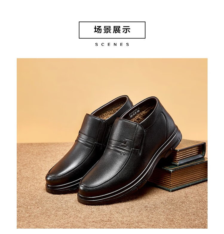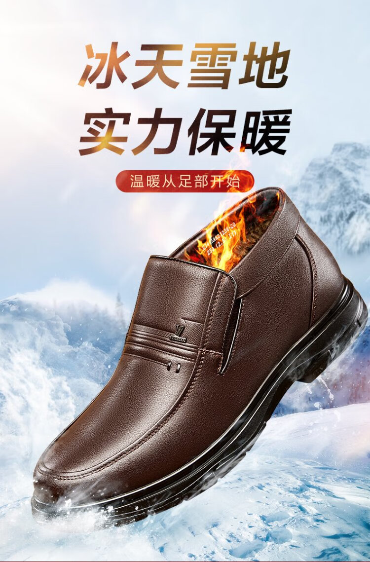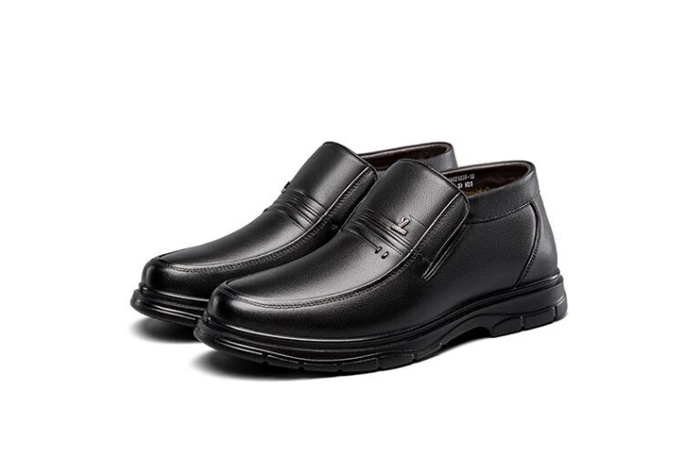 Yierkan men's shoes business casual shoes plus velvet warm dad shoes high-top cotton shoes leather shoes for men 59783W black 42