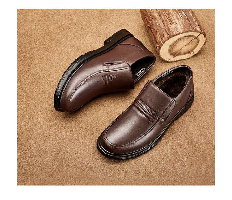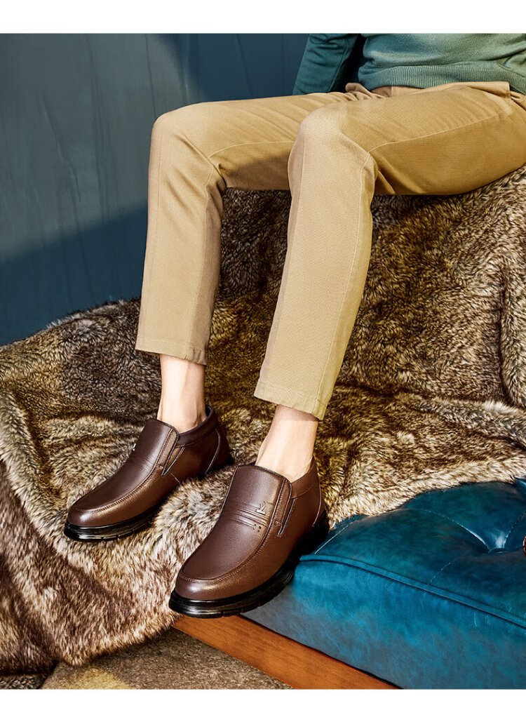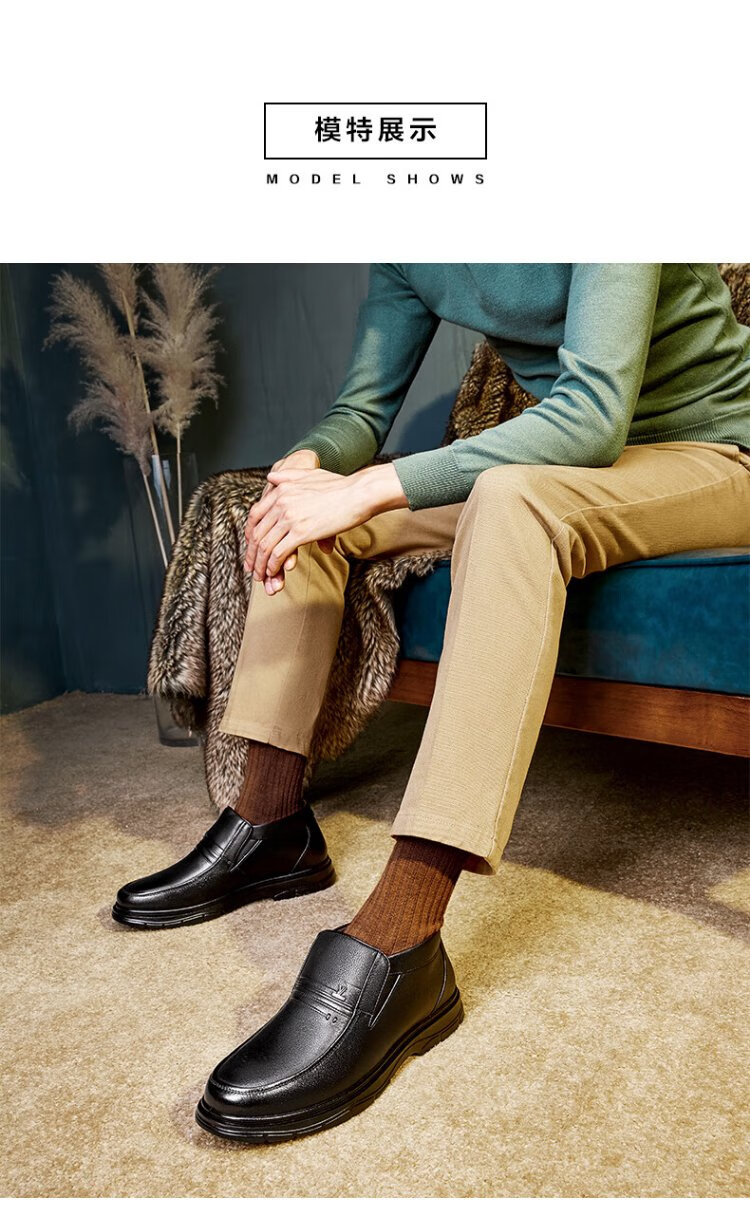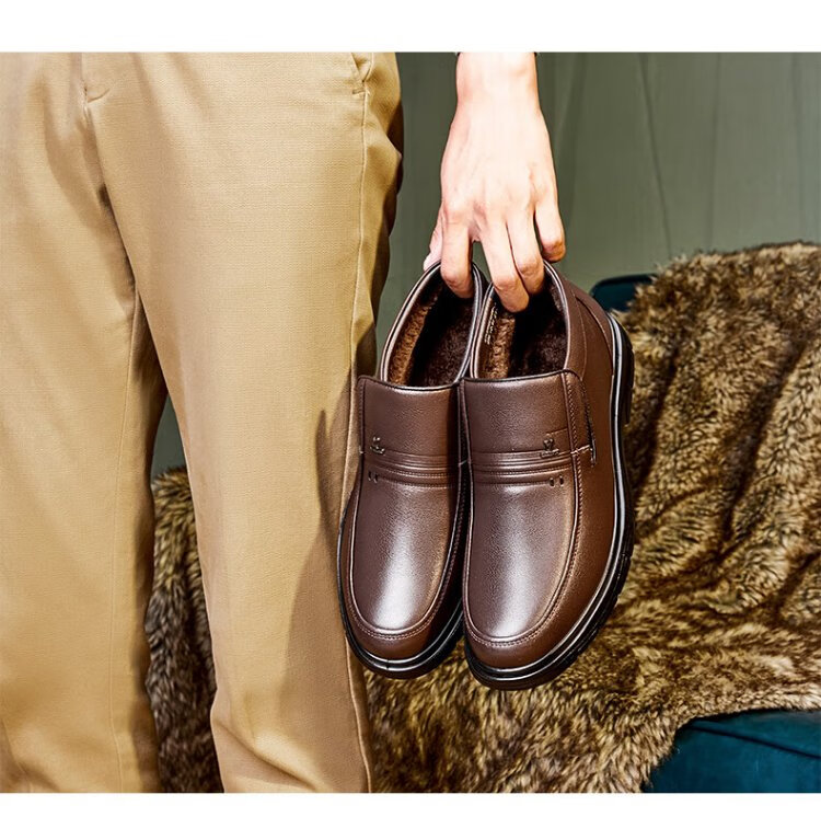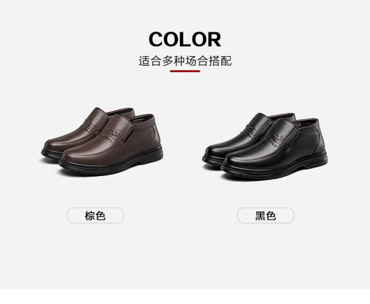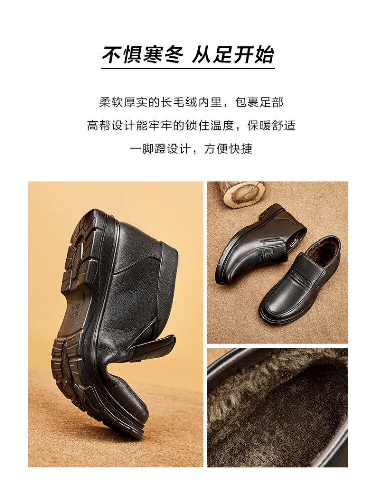 Yierkan men's shoes business casual shoes plus velvet warm dad shoes high-top cotton shoes leather shoes for men 59783W black 42