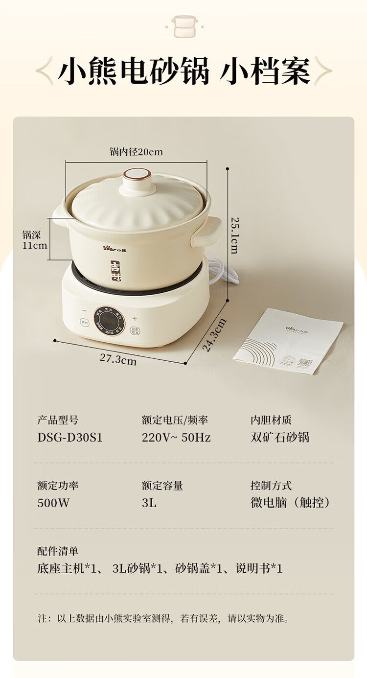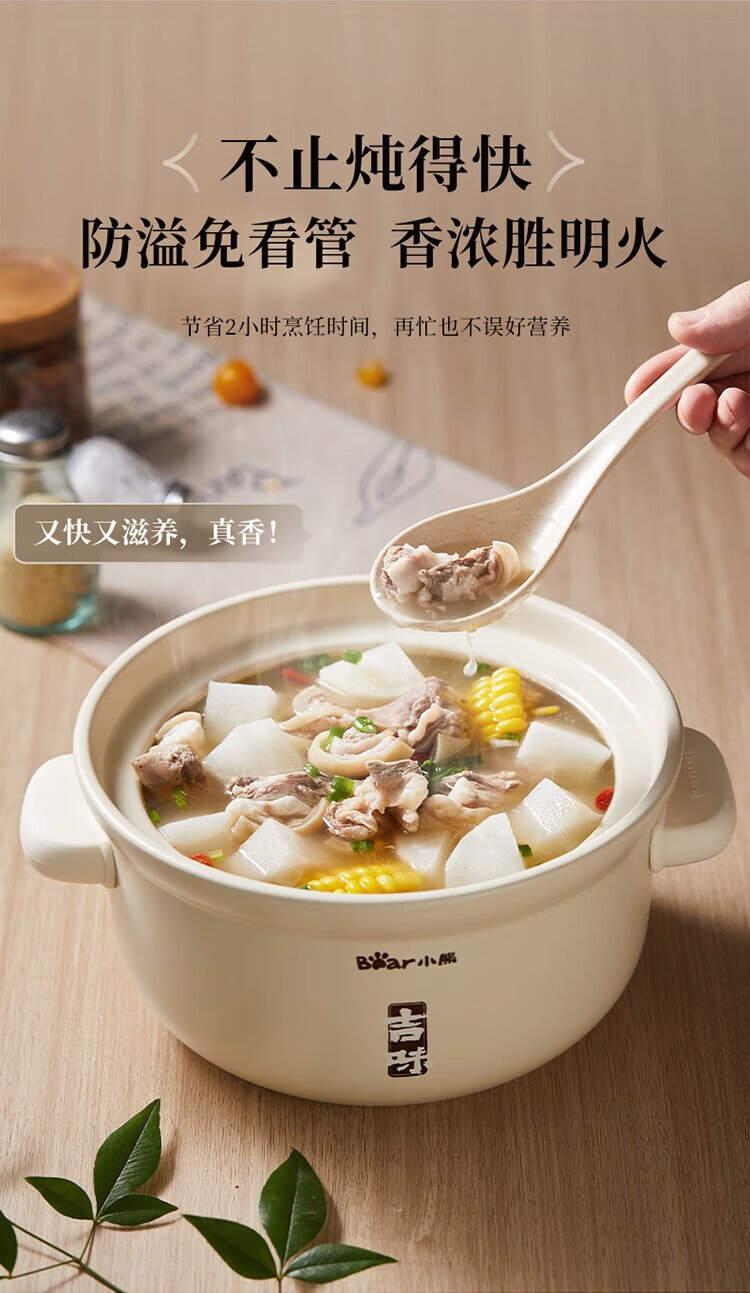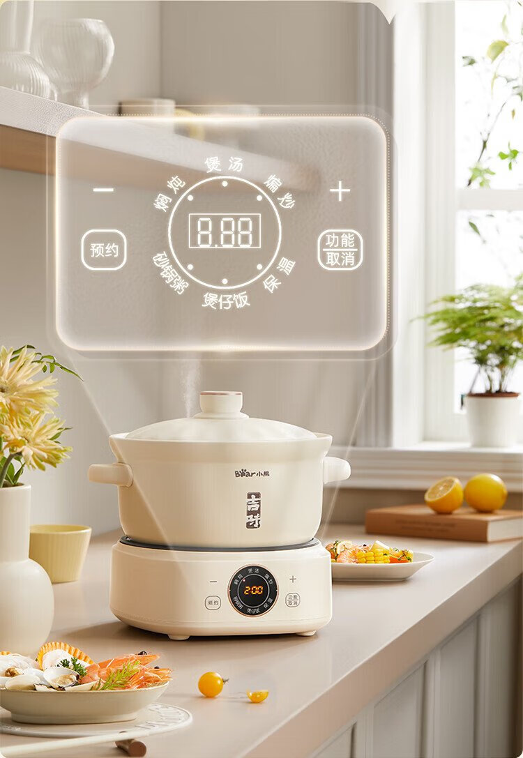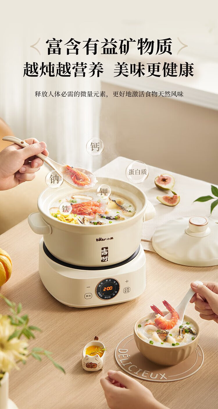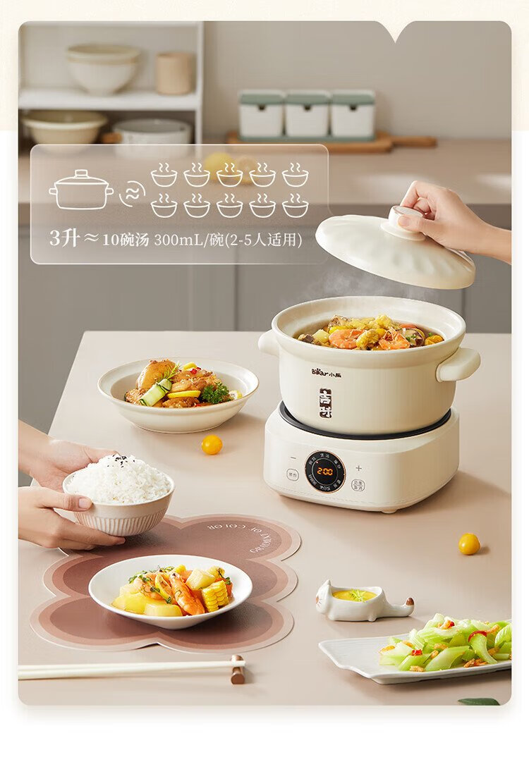 Bear Electric Casserole, Electric Stew Pot, Soup Pot, Stew Pot, Electric Stew Cup, Stew Pot, Healthy Porridge Pot for 3-4 People, Claypot Rice Split Electric Casserole DSG-D30S1 3L