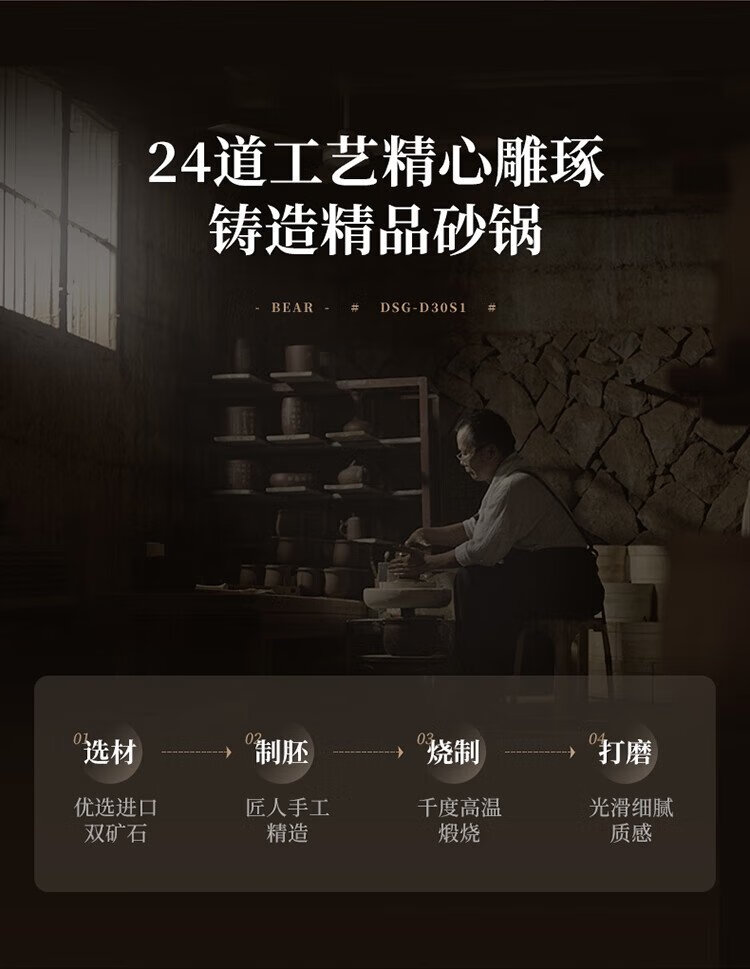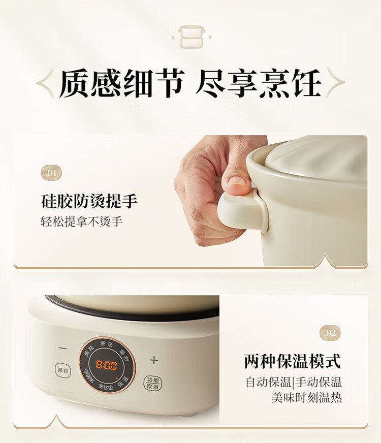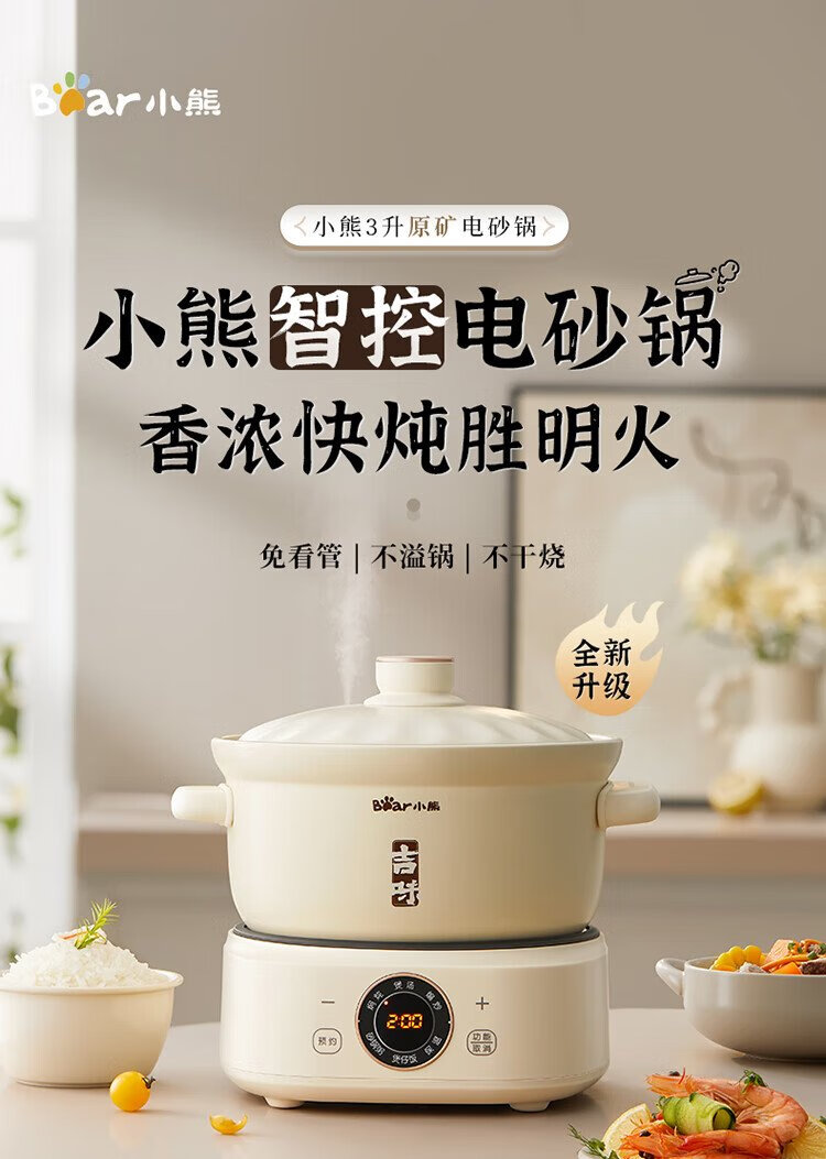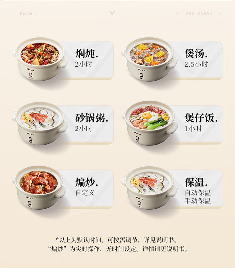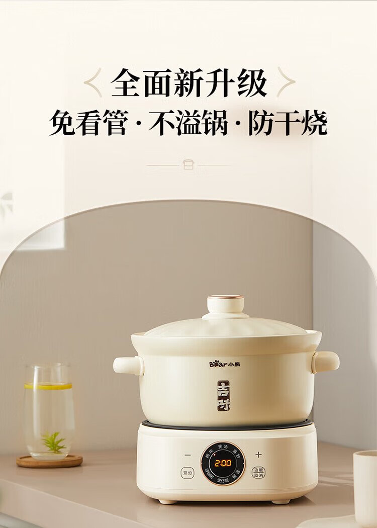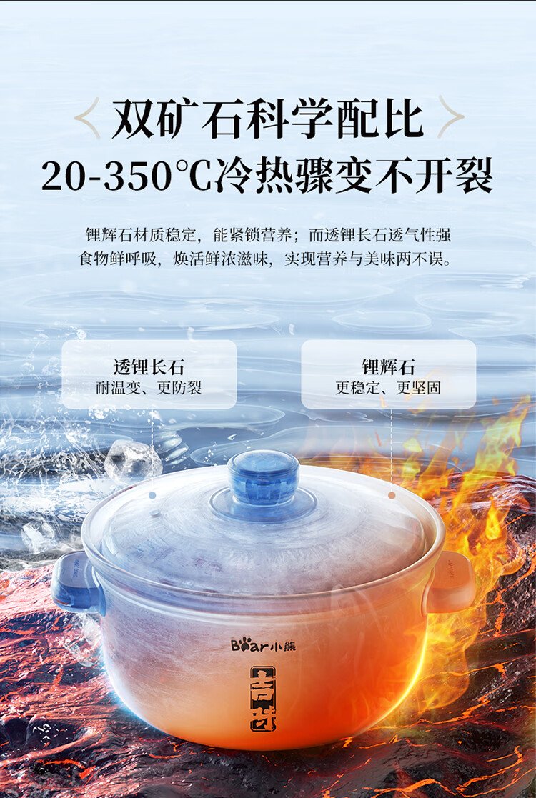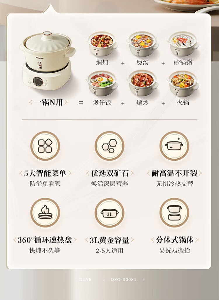 Bear Electric Casserole, Electric Stew Pot, Soup Pot, Stew Pot, Electric Stew Cup, Stew Pot, Healthy Porridge Pot for 3-4 People, Claypot Rice Split Electric Casserole DSG-D30S1 3L