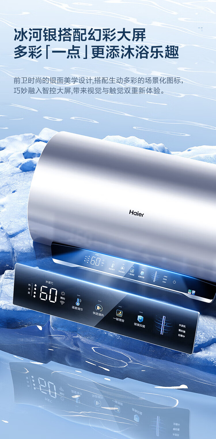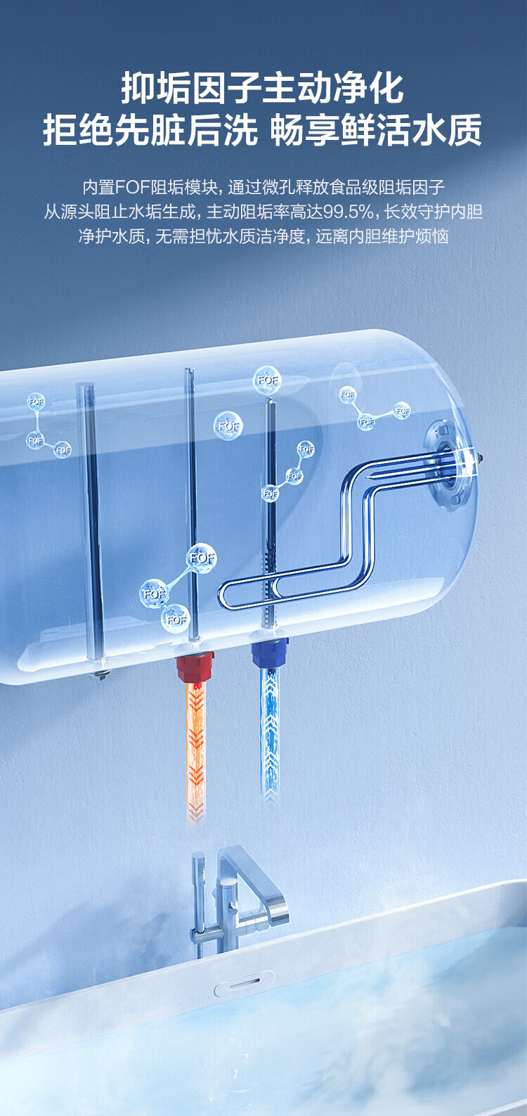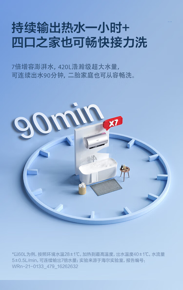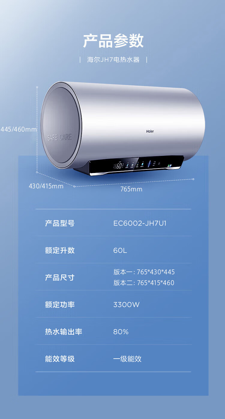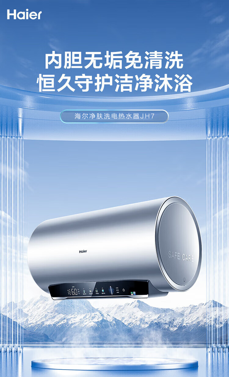Haier (Haier) national subsidy 20% electric water heater 60 liters Xiaohonghua JH7 scale-free fresh water cleansing cleansing 3300W variable frequency fast heating first-class energy efficiency household water storage type