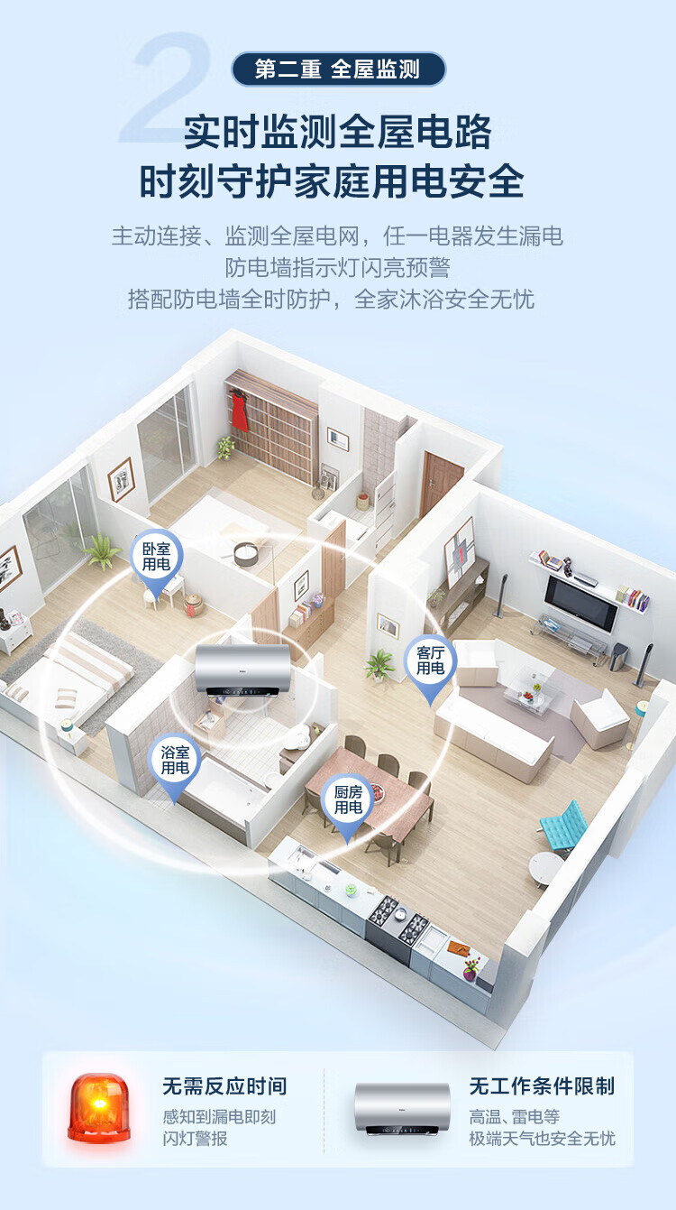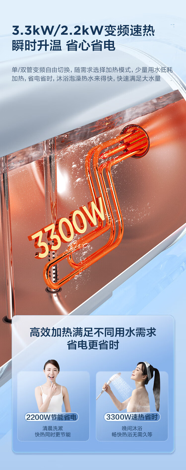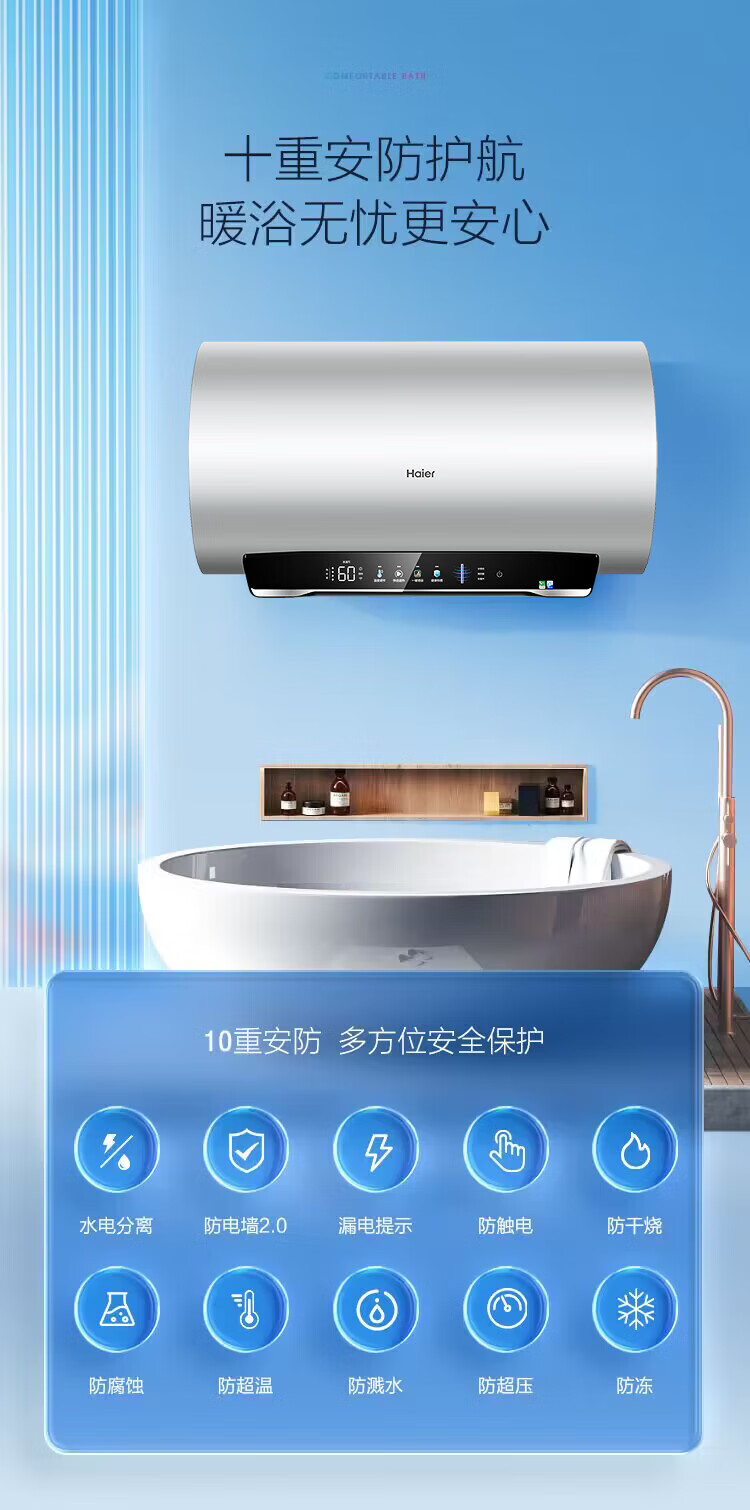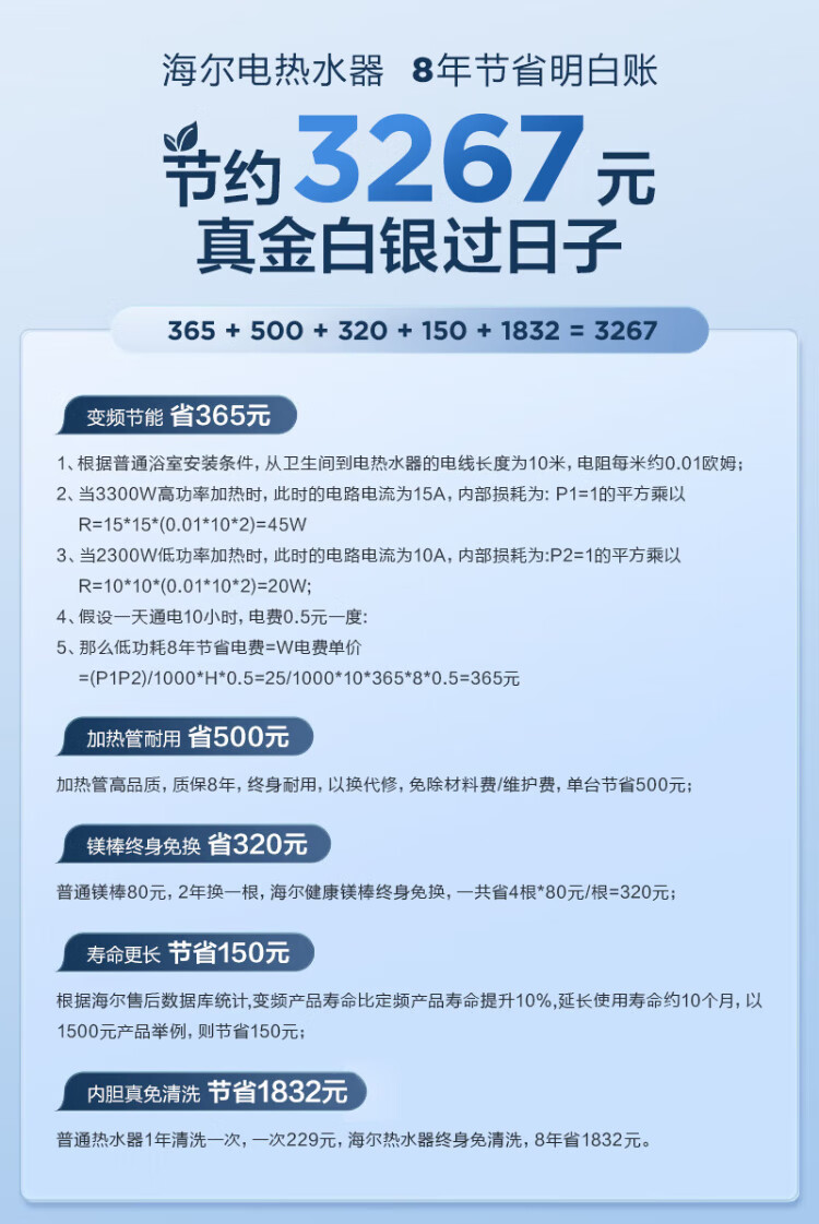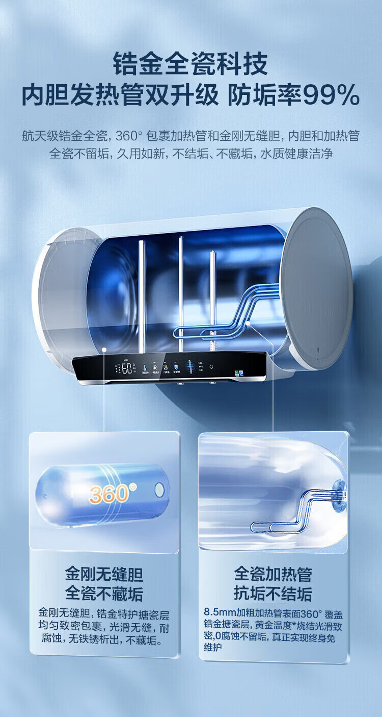 Haier (Haier) national subsidy 20% electric water heater 60 liters Xiaohonghua JH7 scale-free fresh water cleansing cleansing 3300W variable frequency fast heating first-class energy efficiency household water storage type