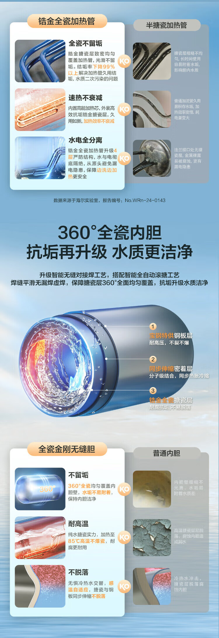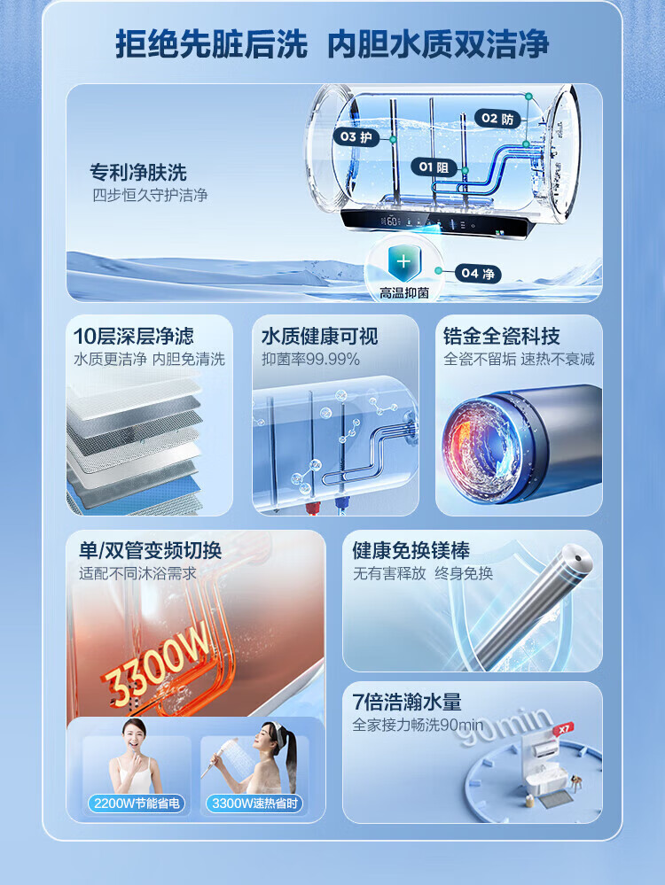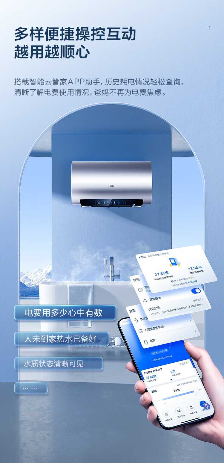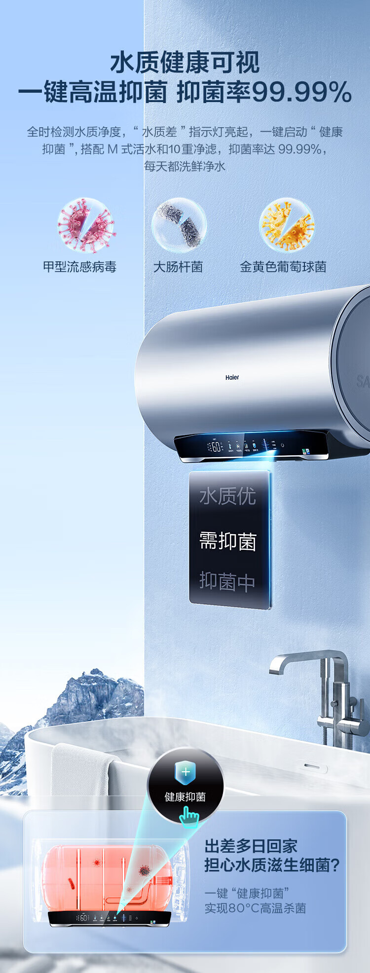 Haier (Haier) national subsidy 20% electric water heater 60 liters Xiaohonghua JH7 scale-free fresh water cleansing cleansing 3300W variable frequency fast heating first-class energy efficiency household water storage type